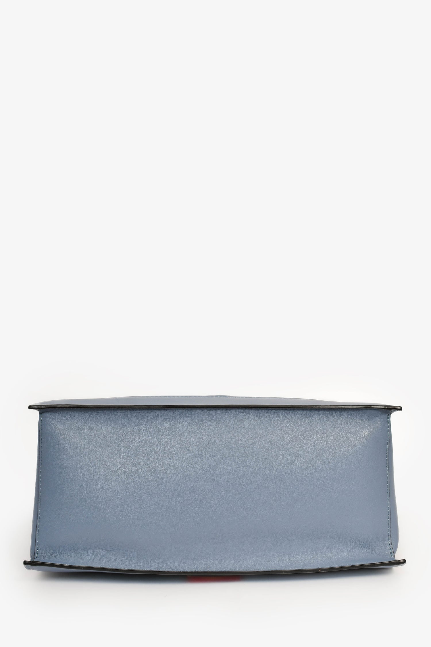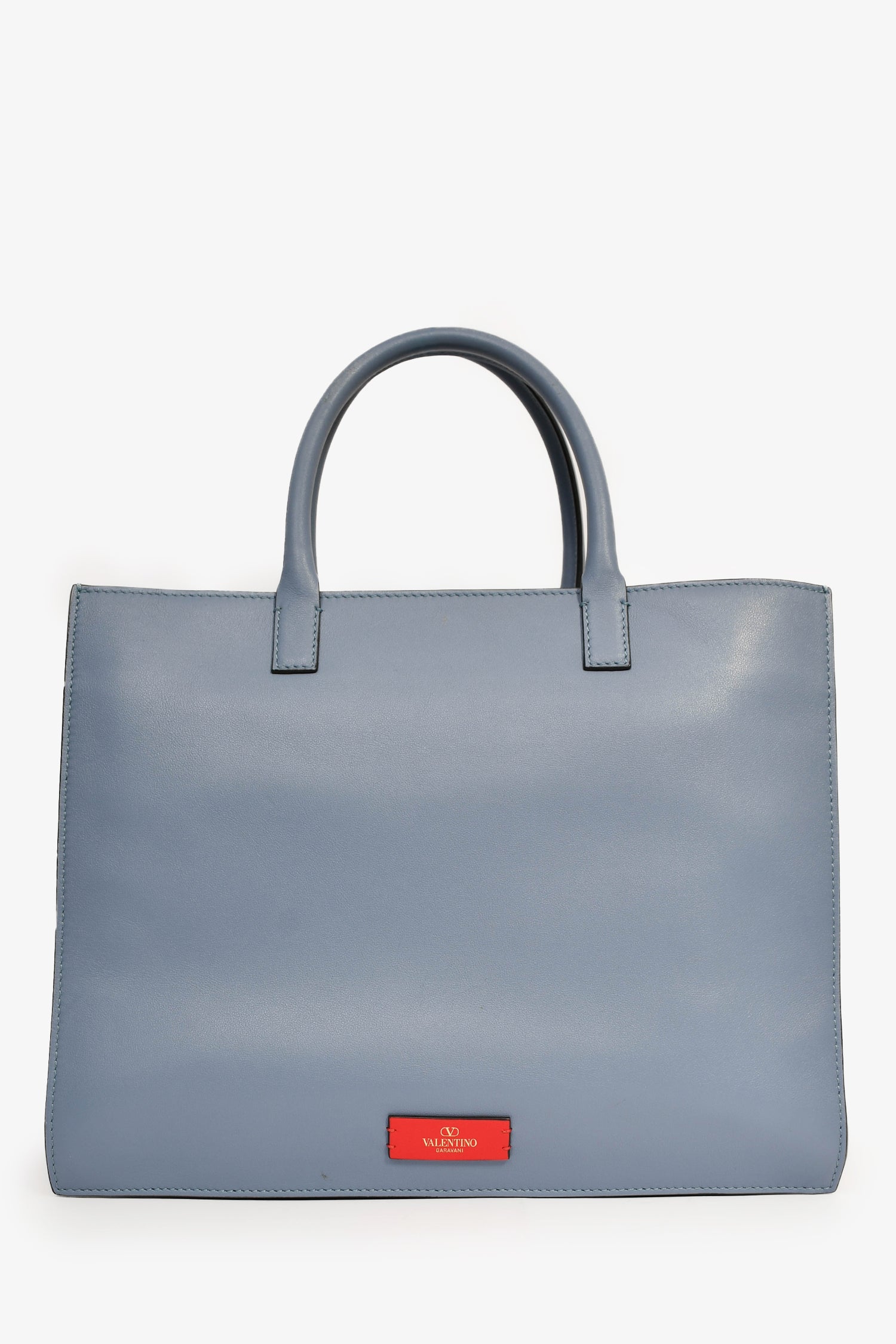 Valentino Blue Smooth Leather 'V' Logo Tote