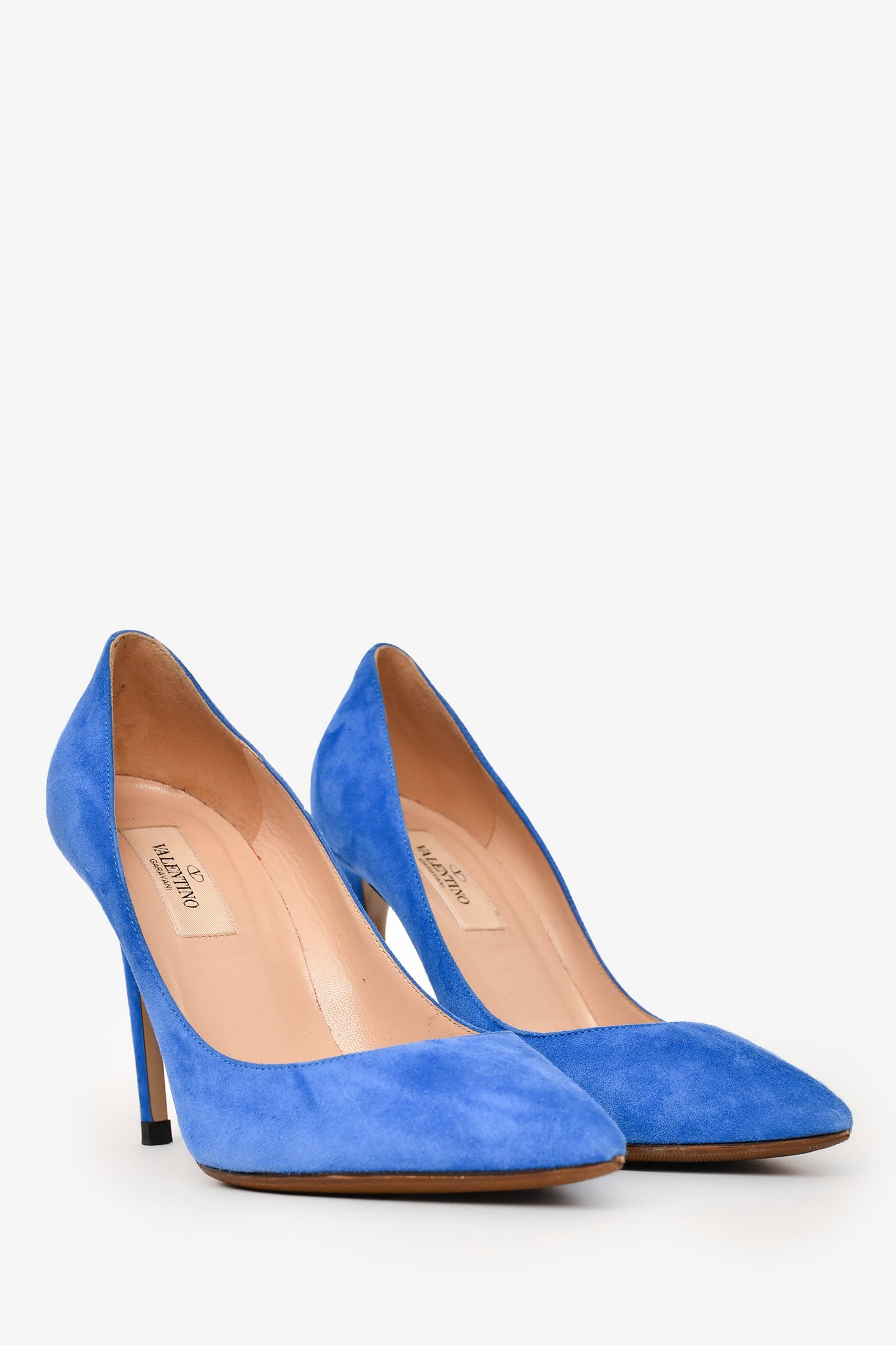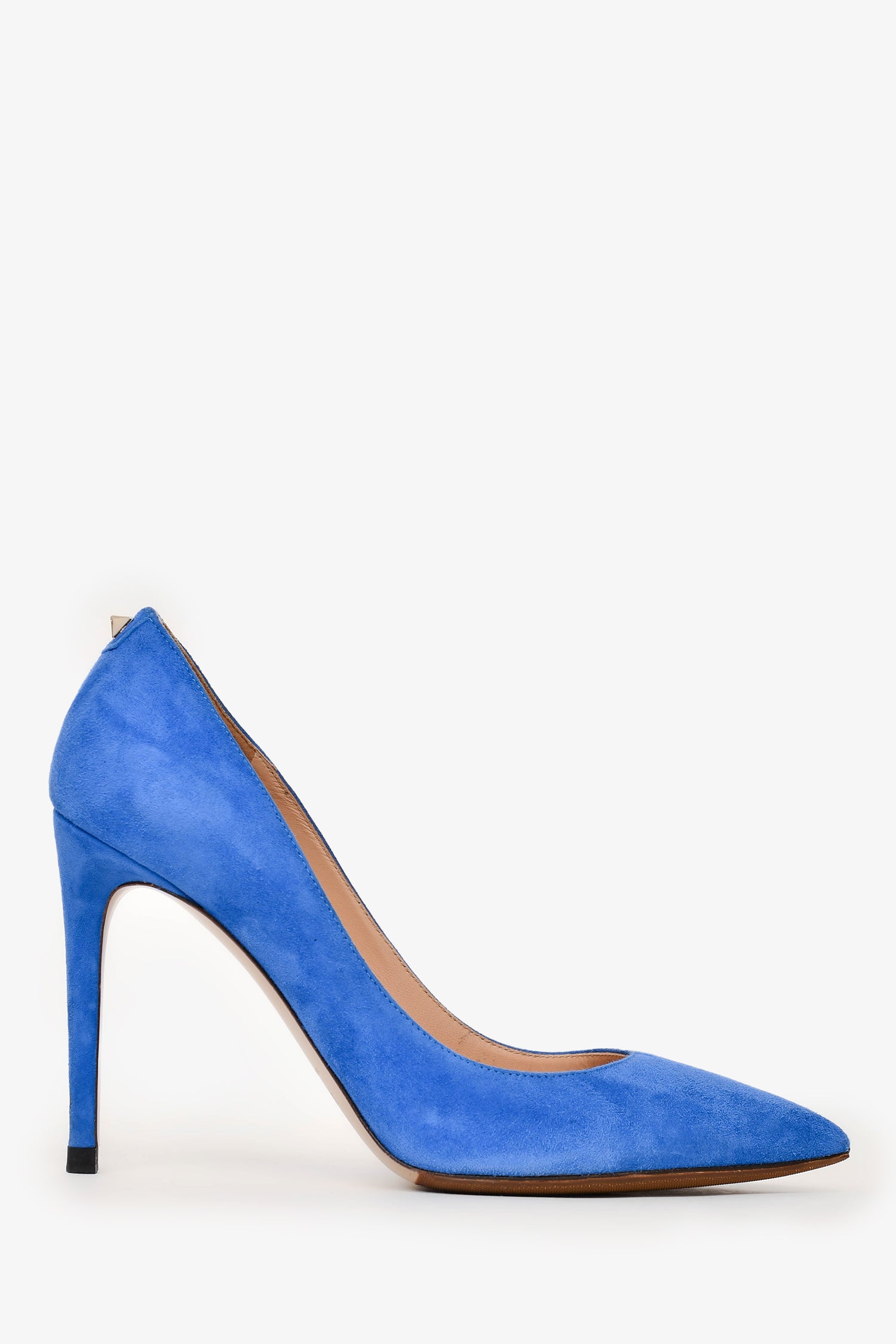 Refresh availabilityValentino Blue Suede Leather Studded Heels. Tonal stitching.
