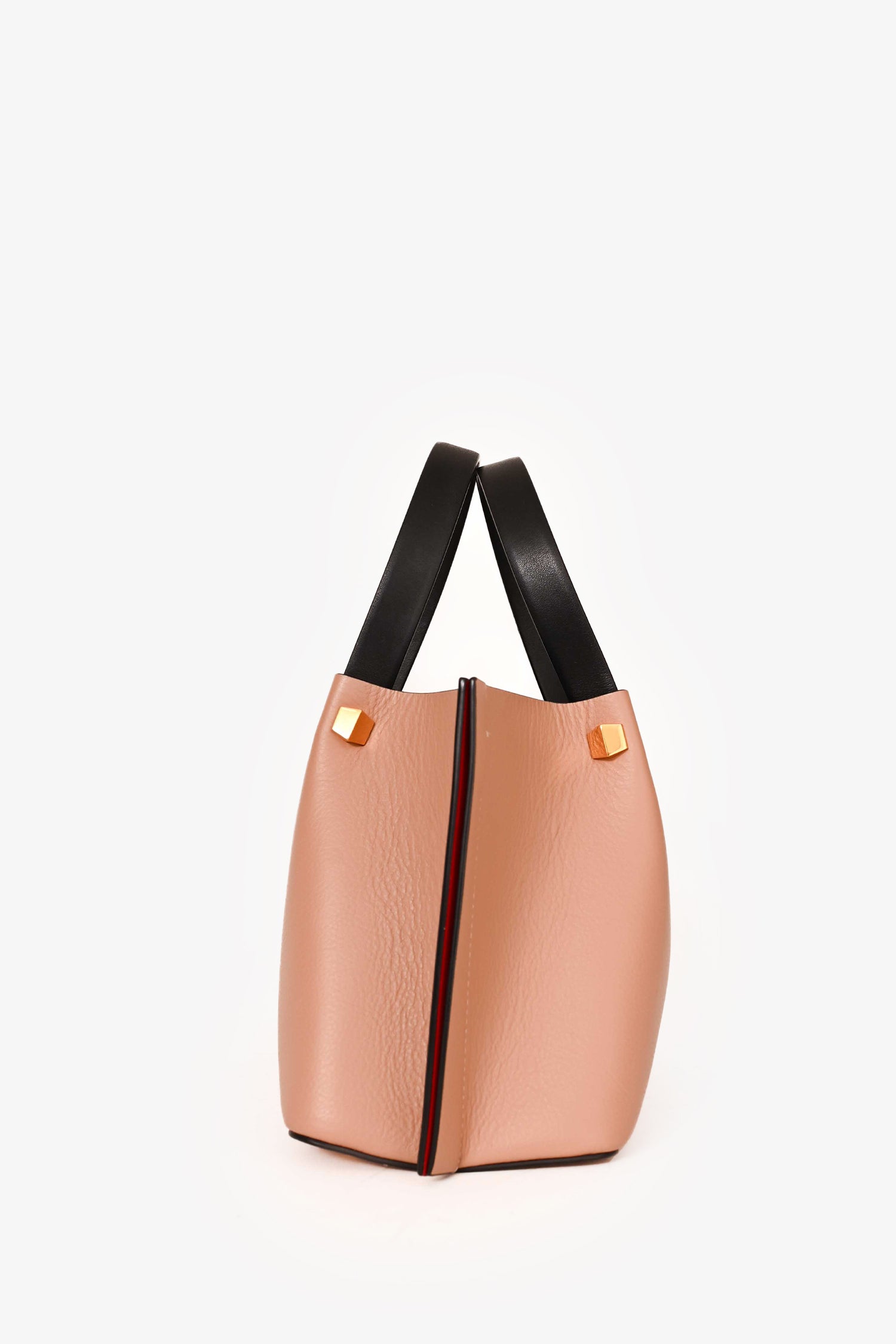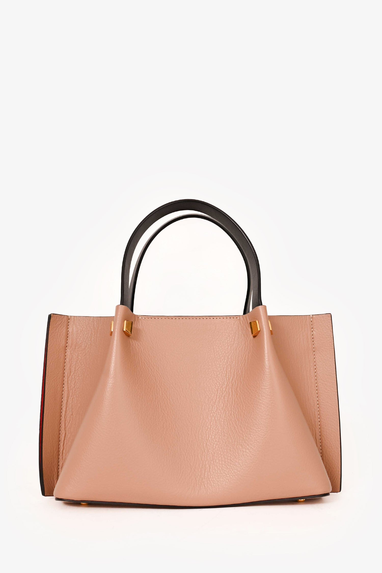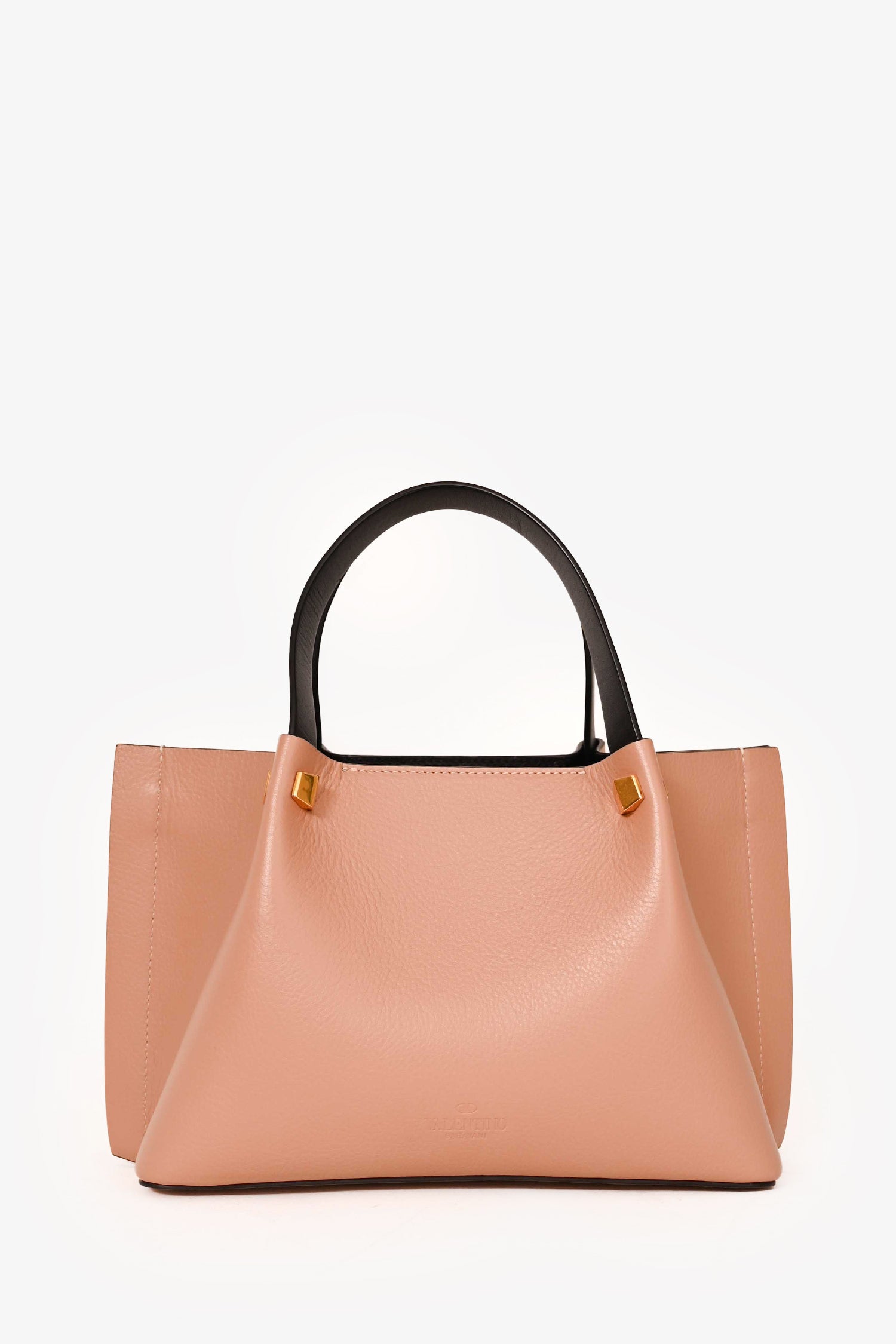 Refresh availabilityValentino Blush Leather Small Vlogo Escape Tote With Strap. Top flap closure. Removable strap. Gold-tone hardware. Stud detailing. Tonal stitching.