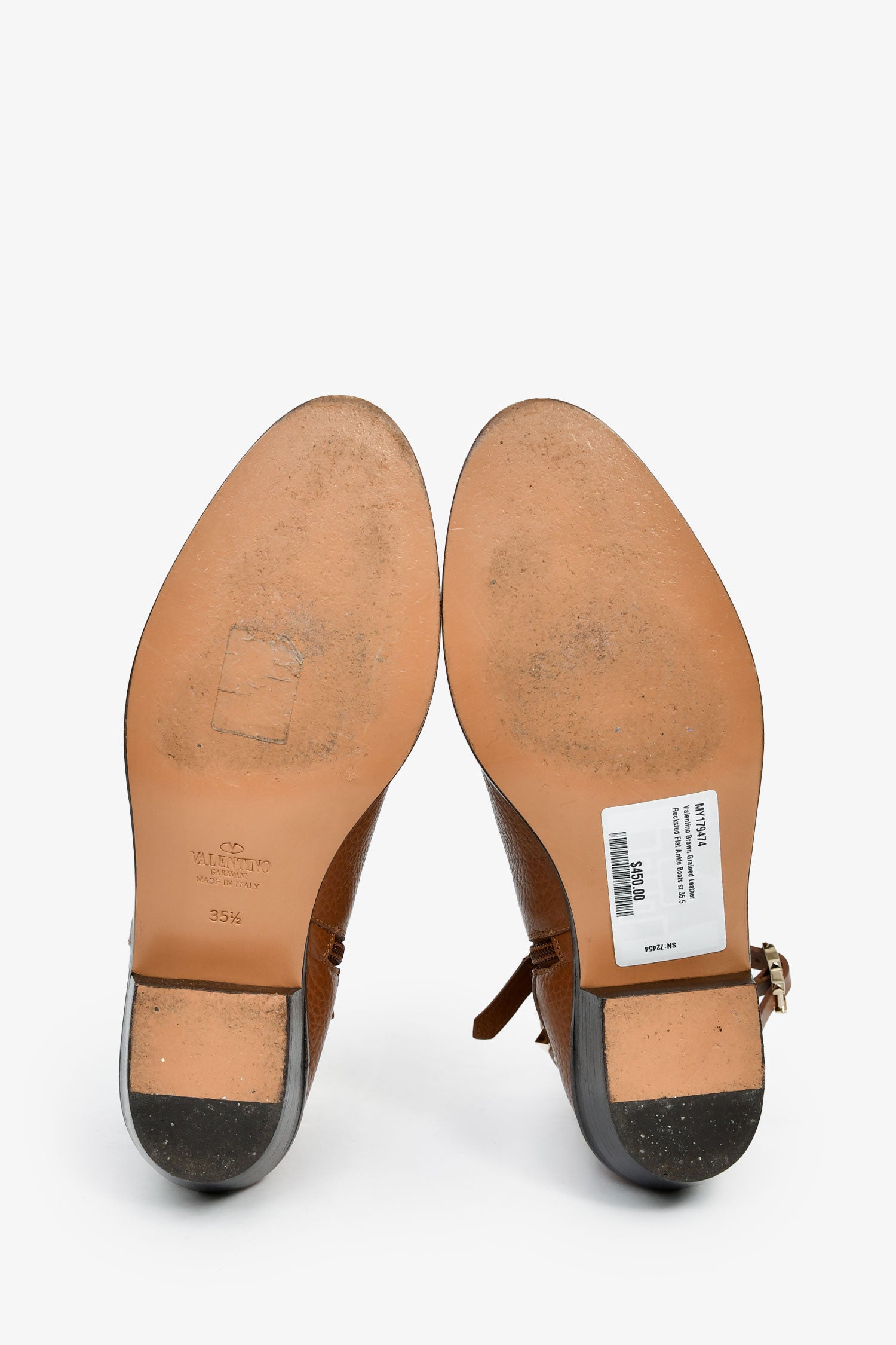 Valentino Brown Grained Leather Rockstud Flat Ankle Boots Size 35.5
