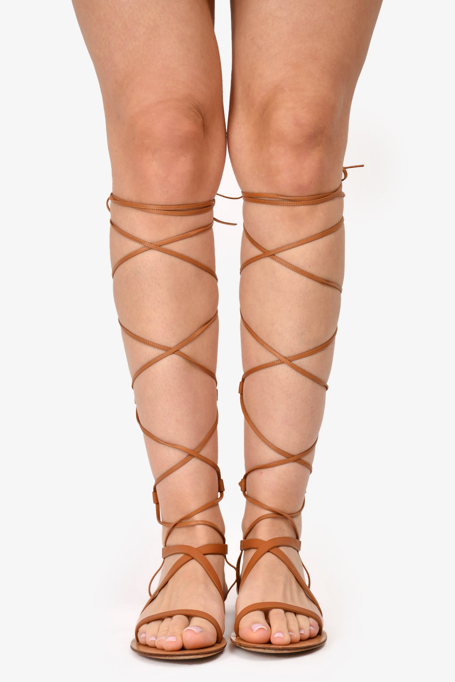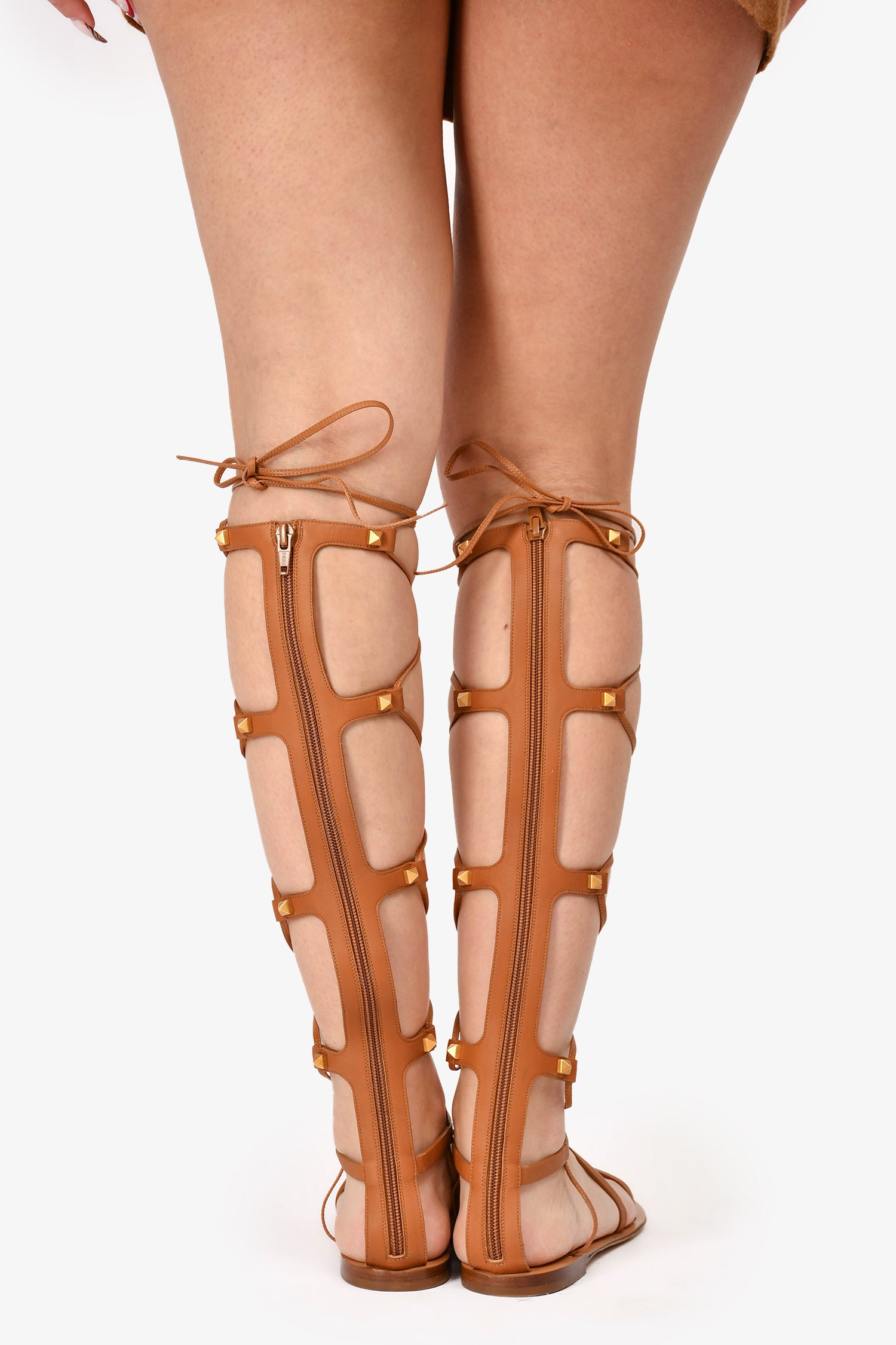Refresh availabilityValentino Brown Leather Roman Stud Gladiator Sandals. Open toe. Rear zip closure.