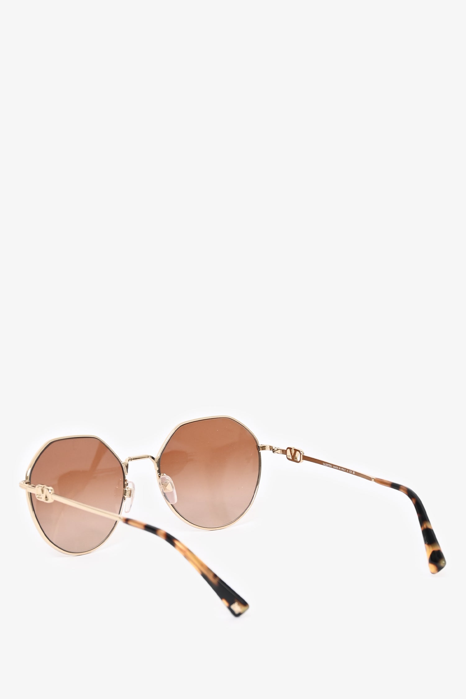 Refresh availabilityValentino Brown Tortoise Shell Octangular Framed Sunglasses. Adjustable nose pads. Gradient lens.