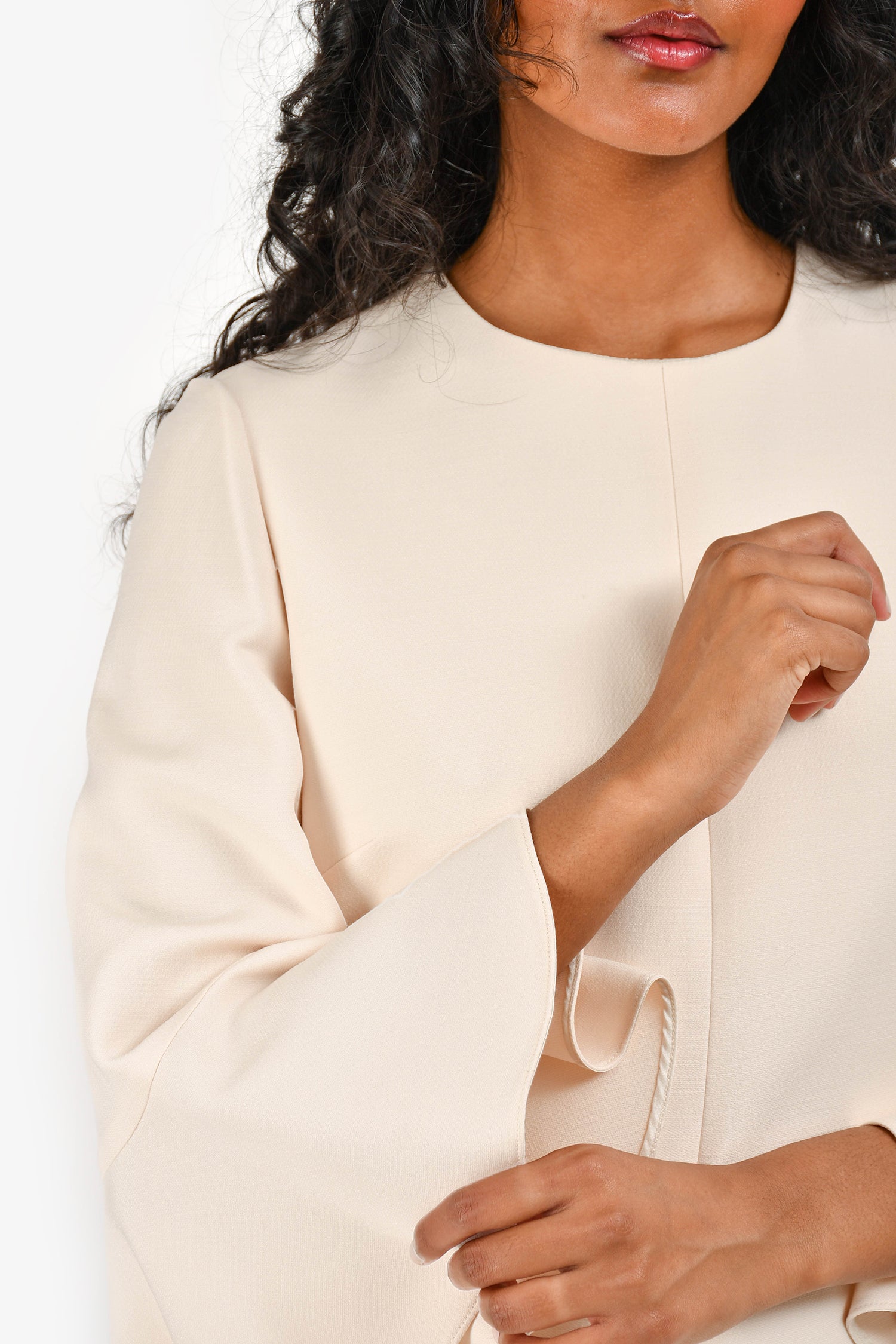 Valentino Cream Wool/Silk Crepe Long Sleeve Ruffled Dress Size 6