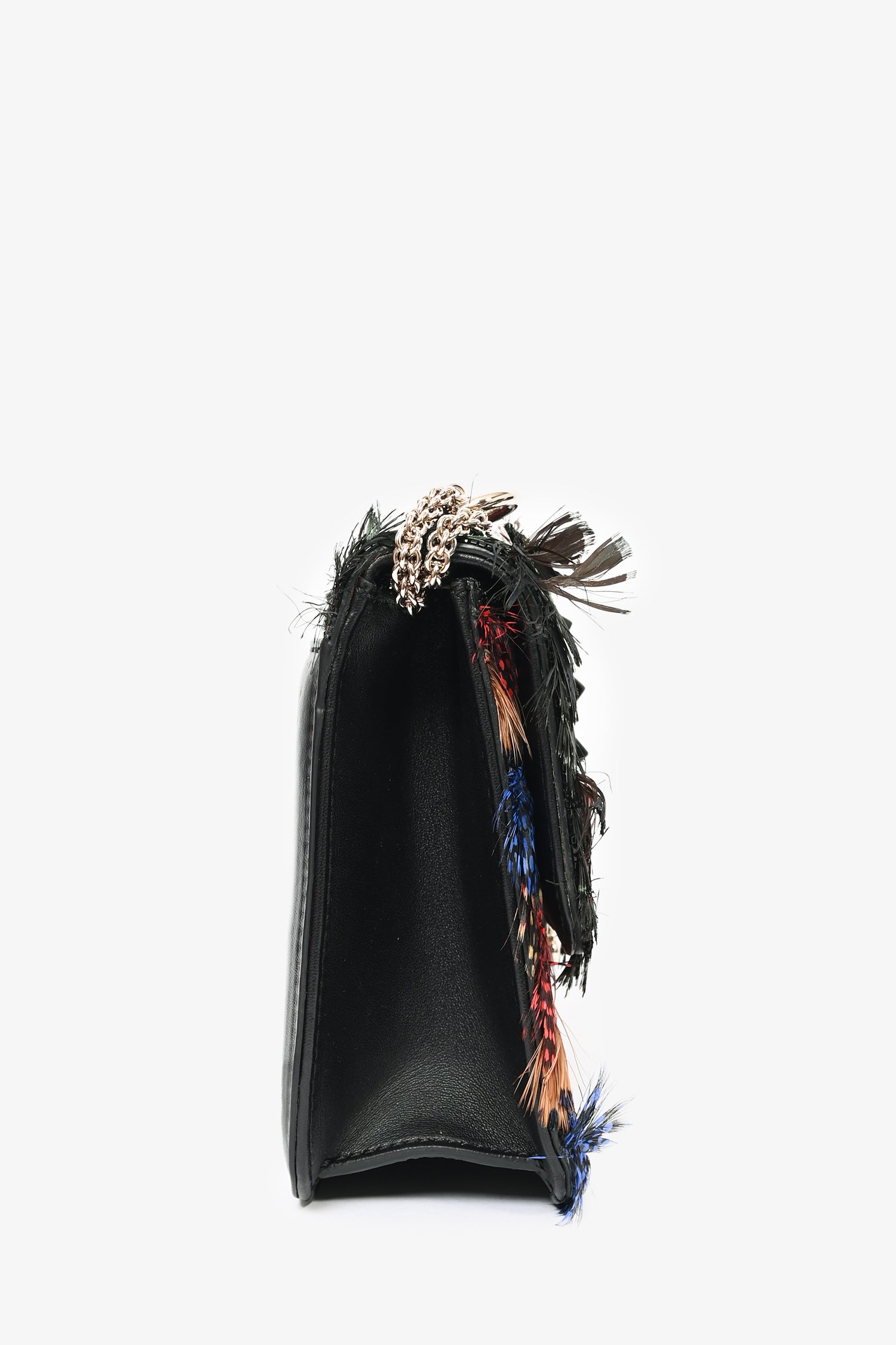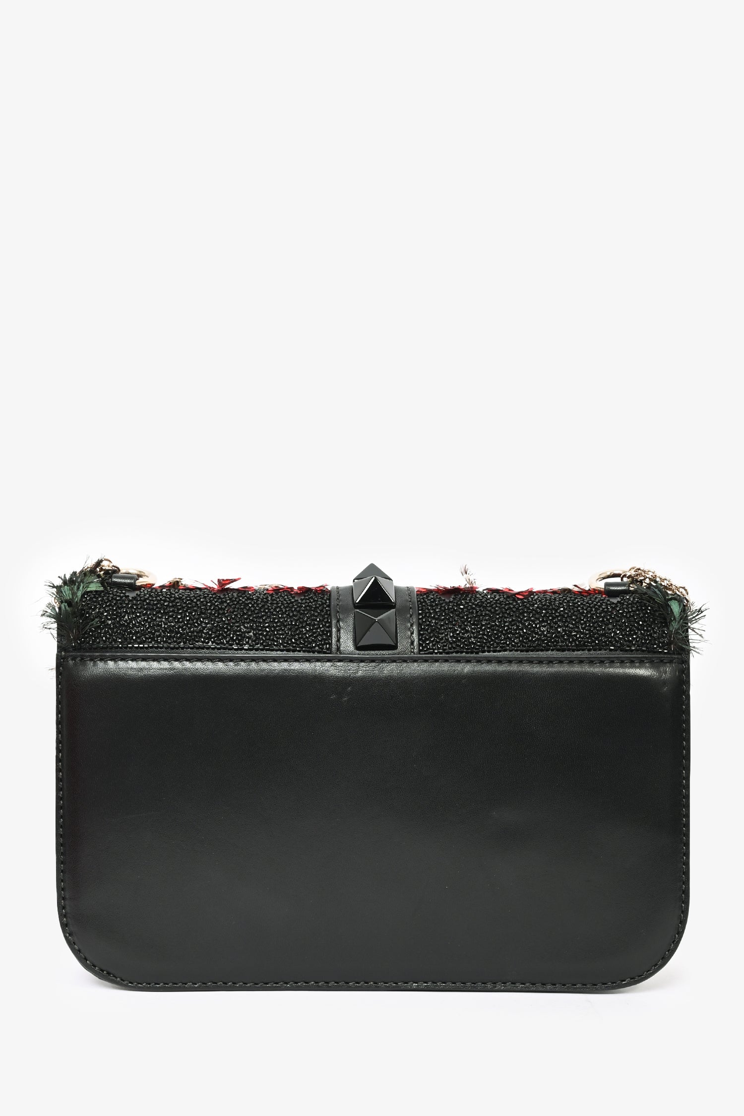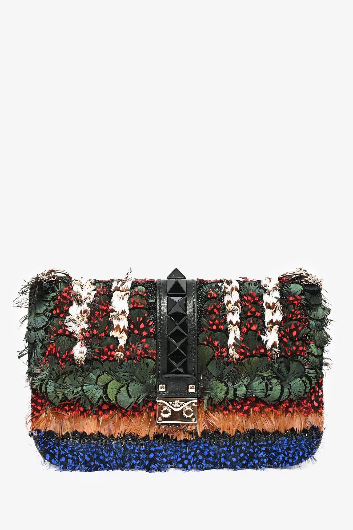 Refresh availabilityValentino Feather Glam Rockstud Chain Shoulder Bag. Tonal stitching. Chain-link shoulder strap. Multicoloured and patterned feathers. 1 zippered pocket. 2 interior pouches. Black Rockstud embellishment.