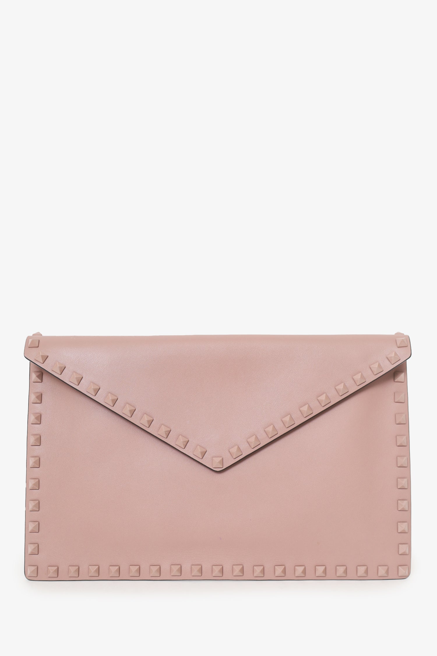 Refresh availabilityValentino Garavani Nude Rockstud Leather Large Envelope Clutch. Front fold-over flap with snap button closure. Interior card pocket with 4 slip compartments. Satin-lined interior. Gold-tone hardware. Tonal stitching.