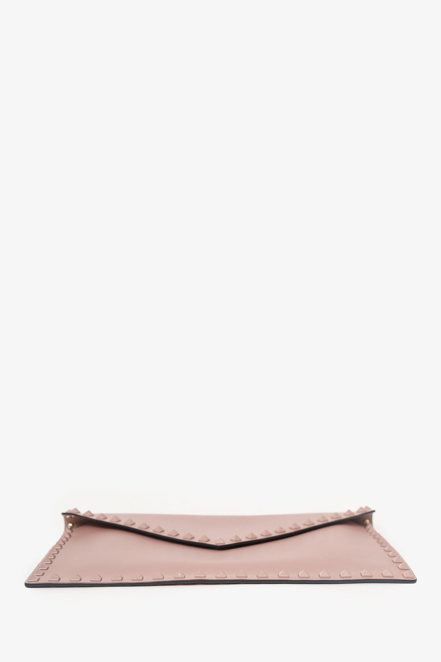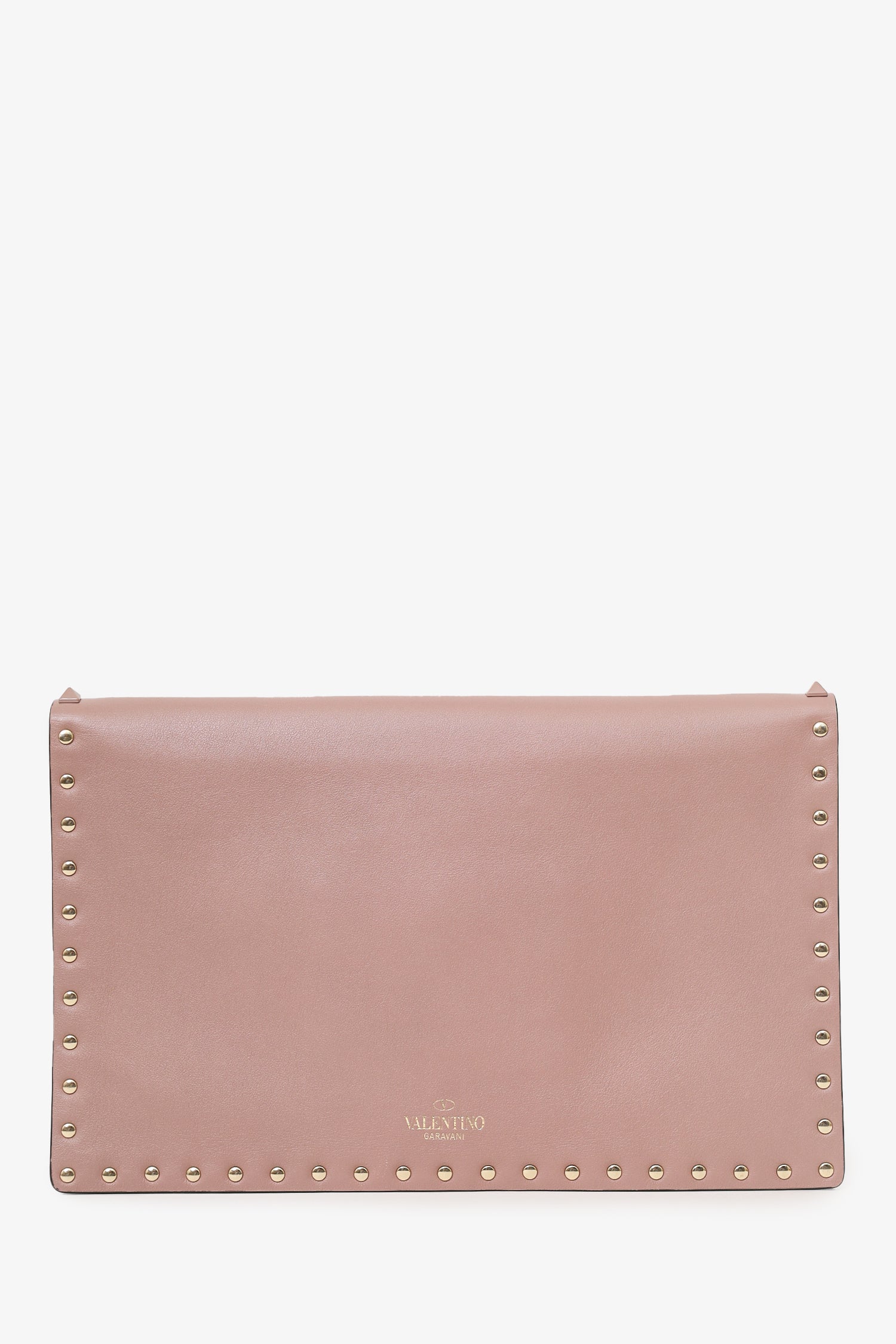 Valentino Garavani Nude Rockstud Leather Large Envelope Clutch