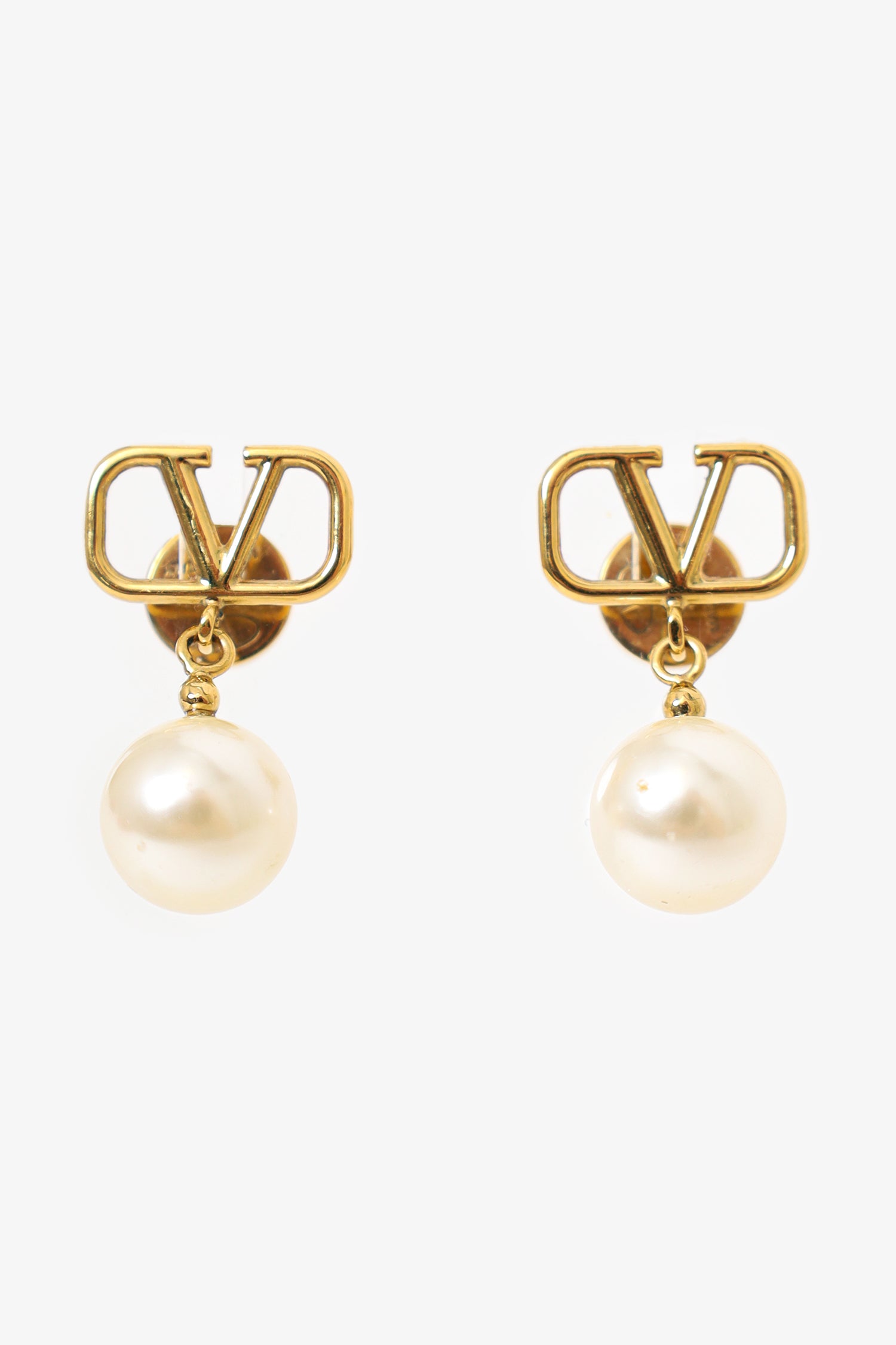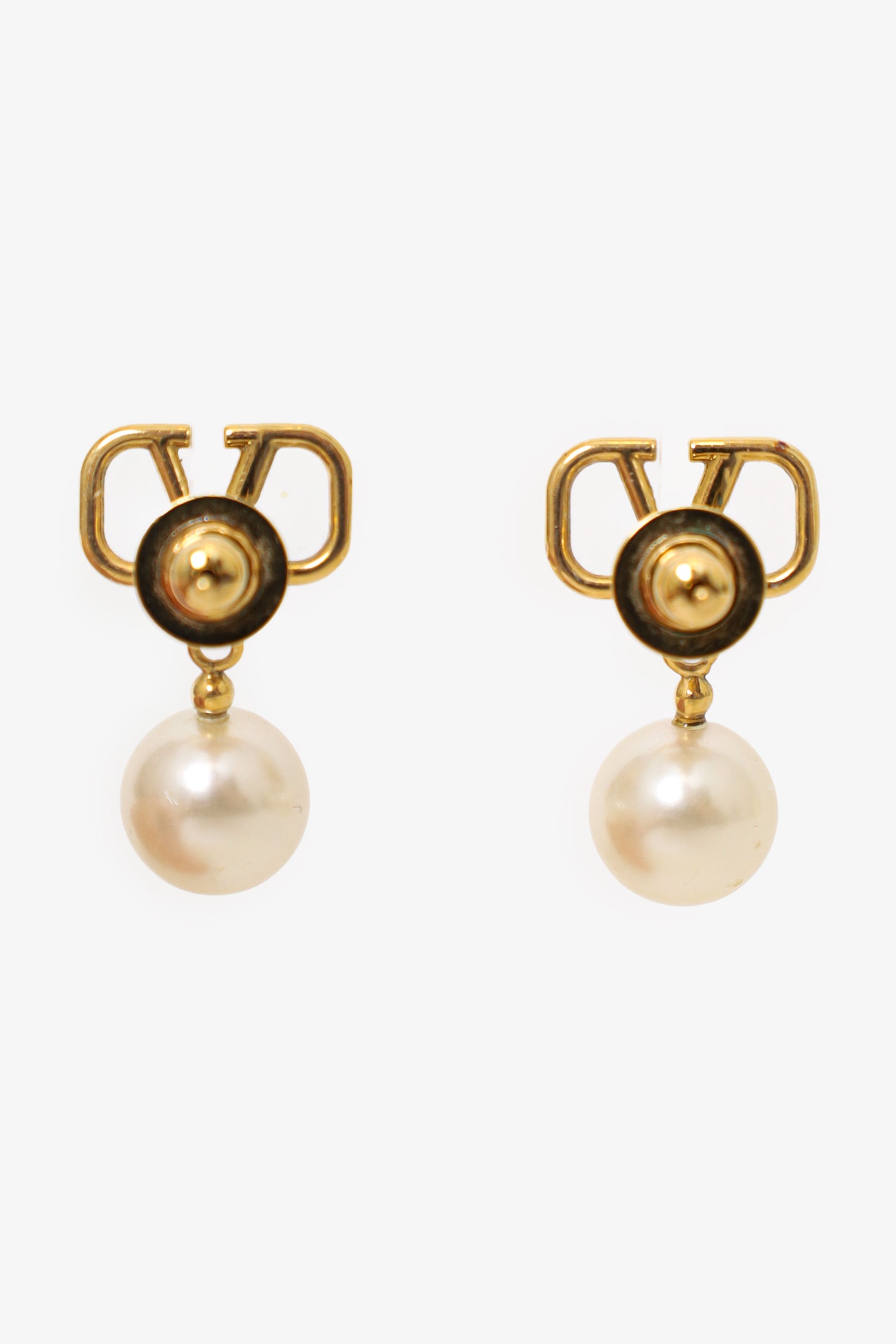 Refresh availabilityValentino Gold Tone VLogo Signature Earrings With Swarovski Pearl Drop. Rear push-pin closure. Gold-tone hardware.