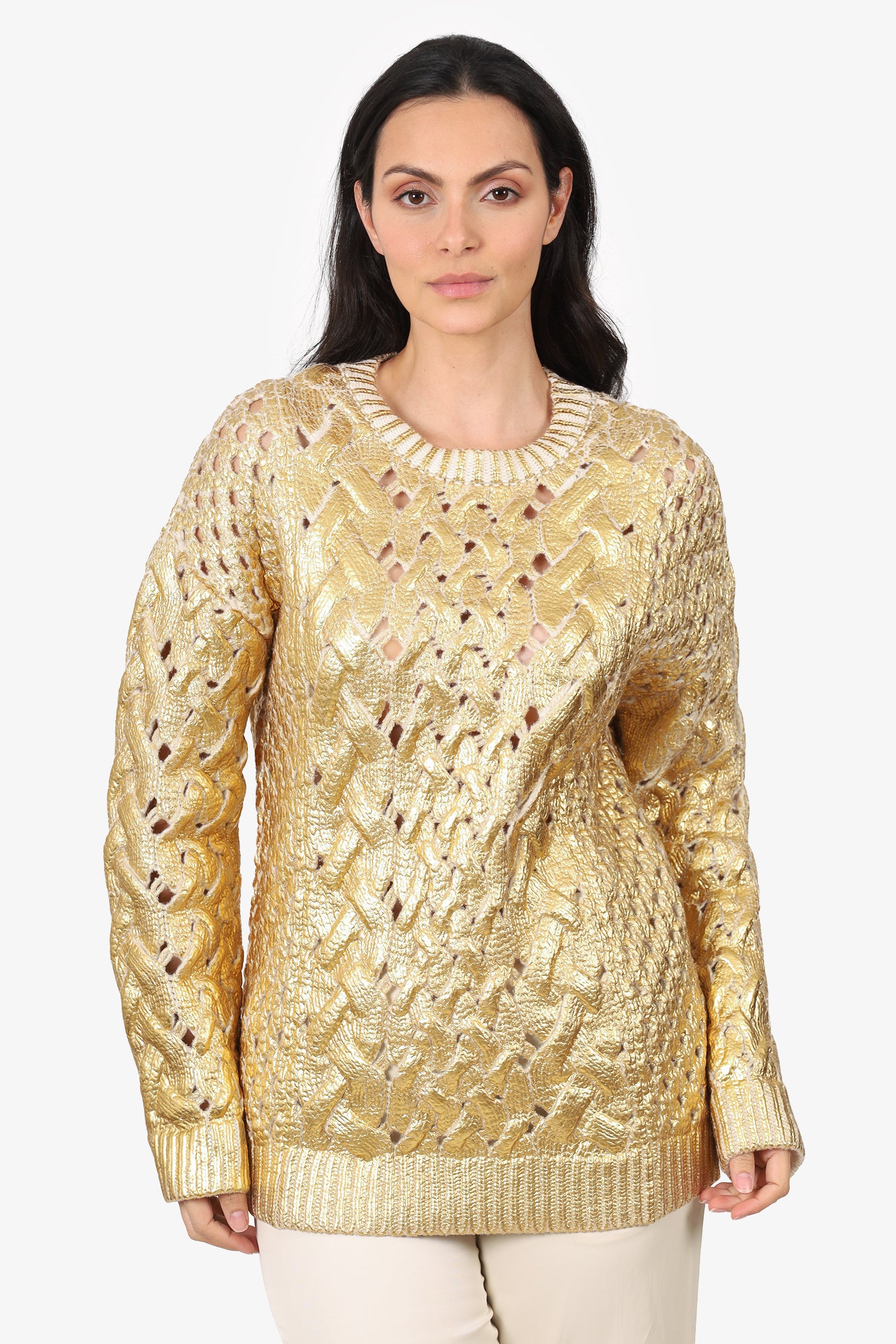 Valentino Gold/Cream Wool Cable Knit Painted Sweater Size XS