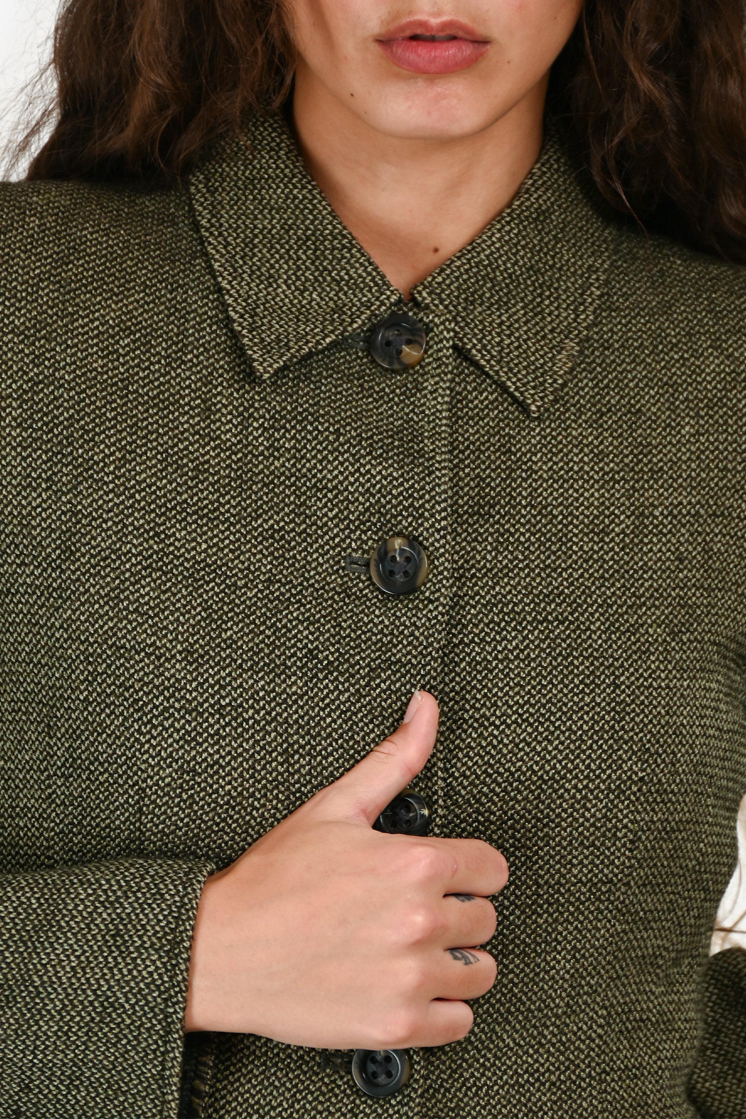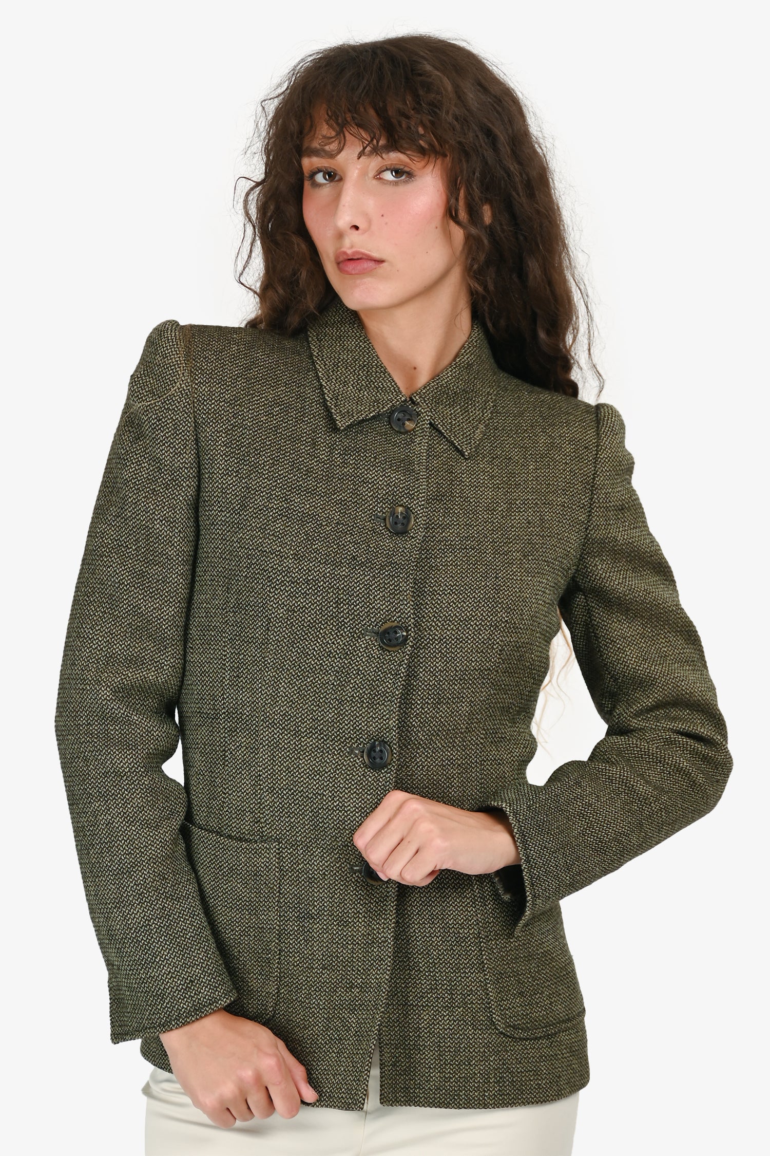 Valentino Green Tweed Wool Single Breasted Blazer Size 38