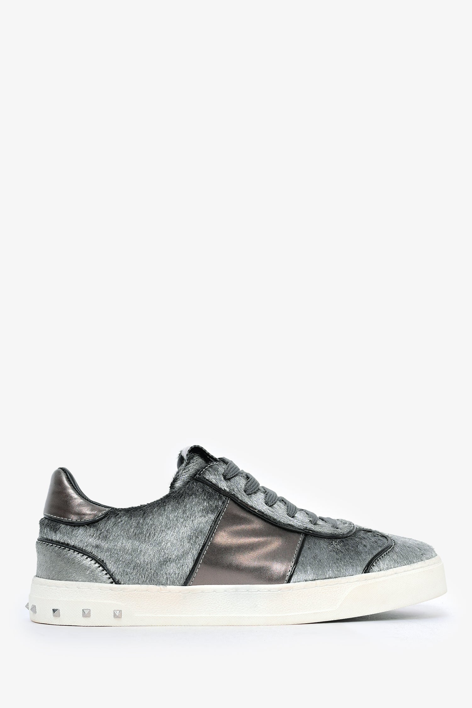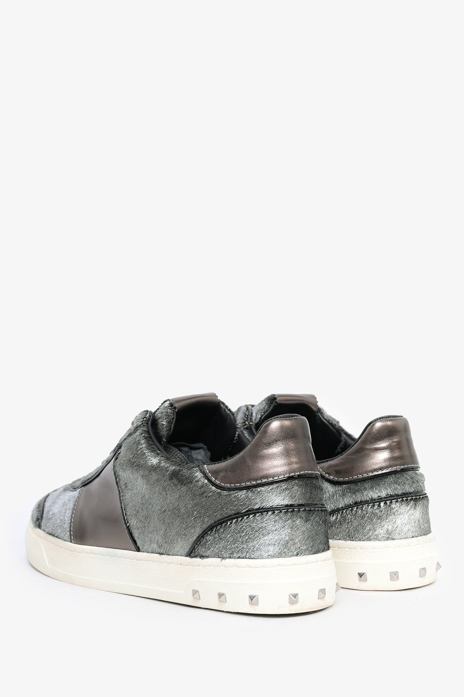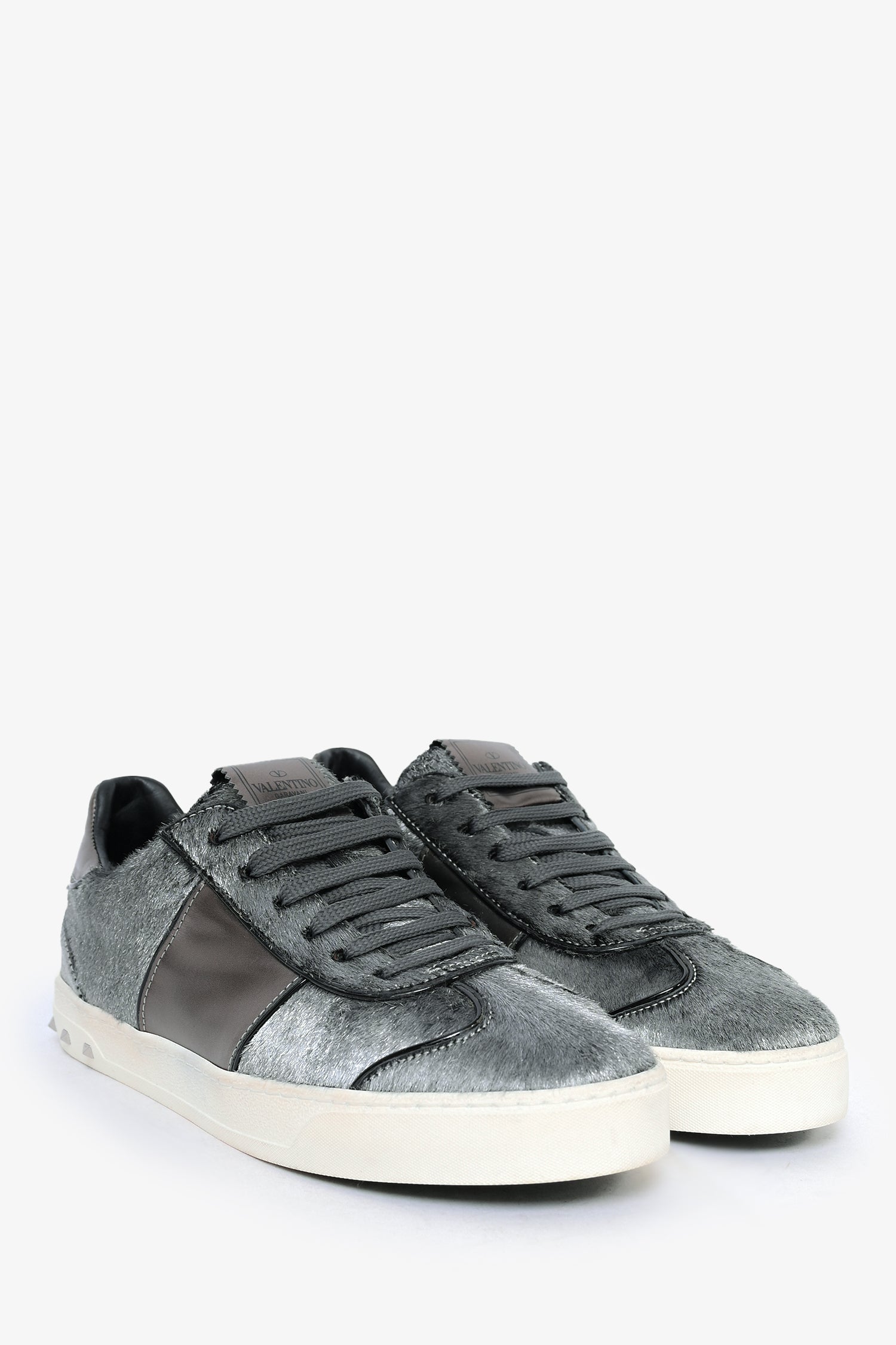 Refresh availabilityValentino Grey Ponyhair/Leather Rockstud Sneaker. Round toe. Lace-up closure.