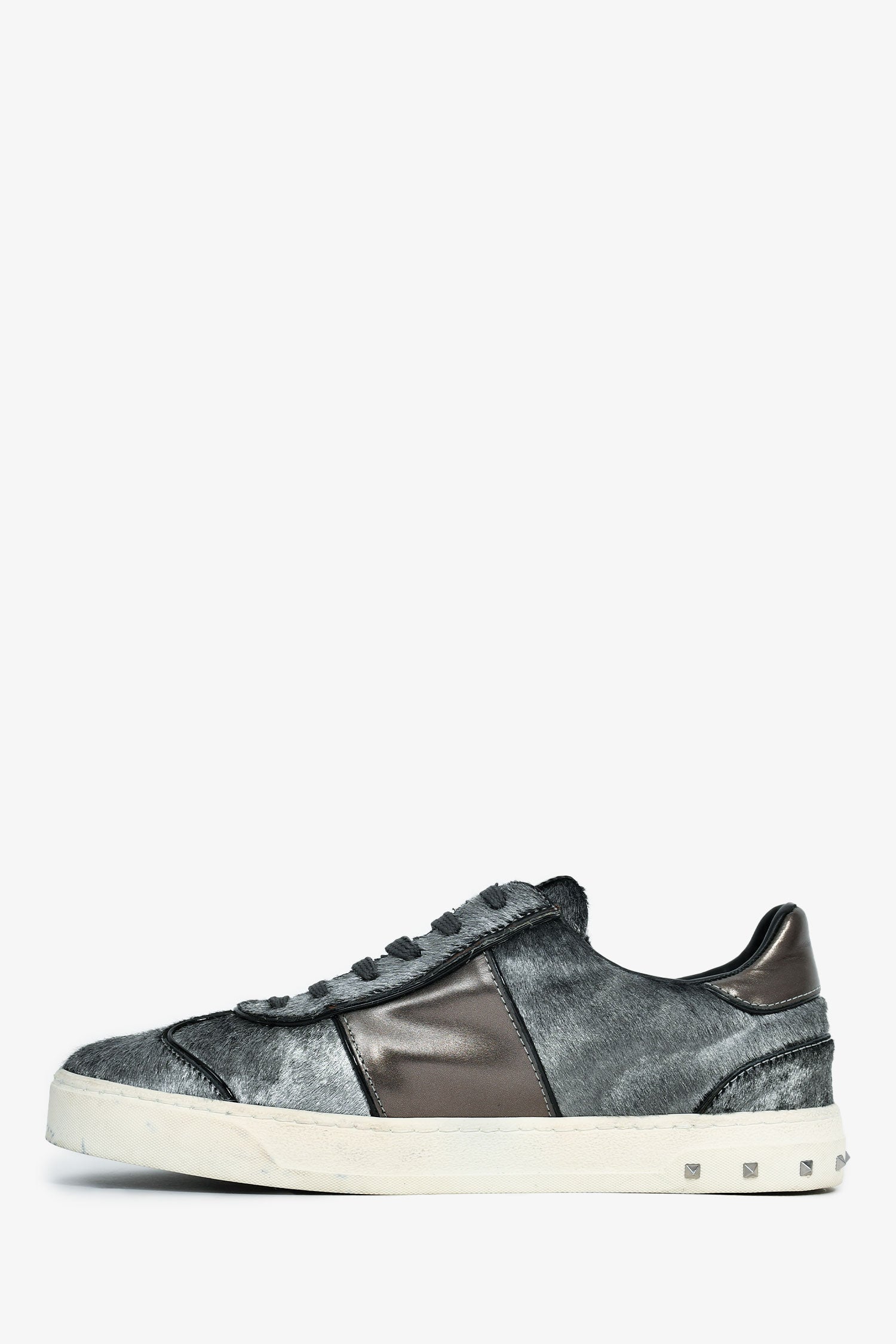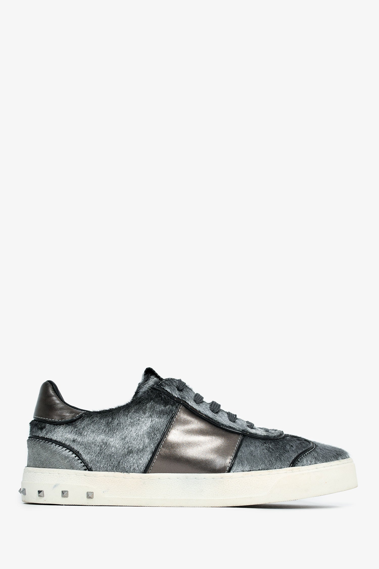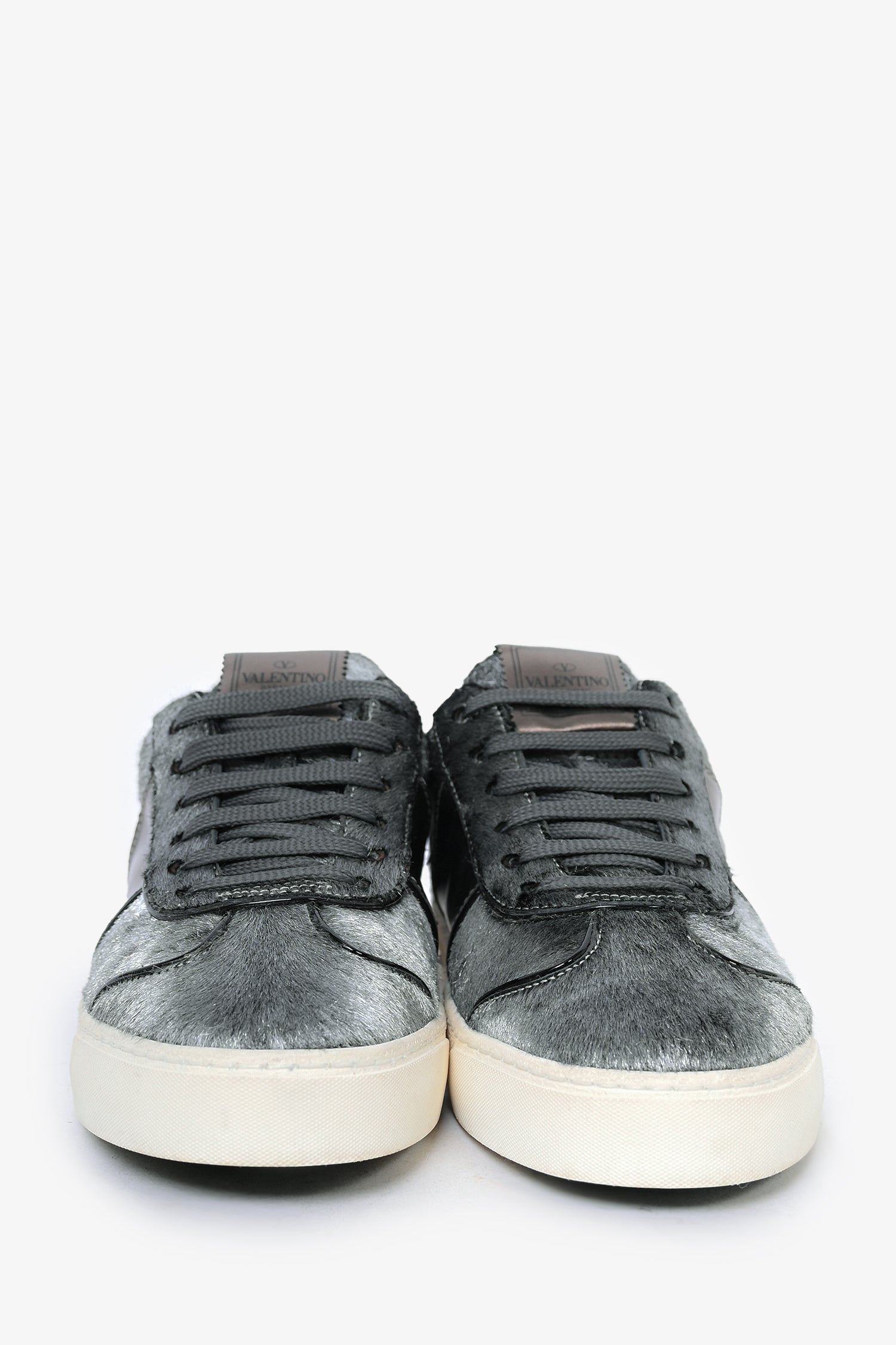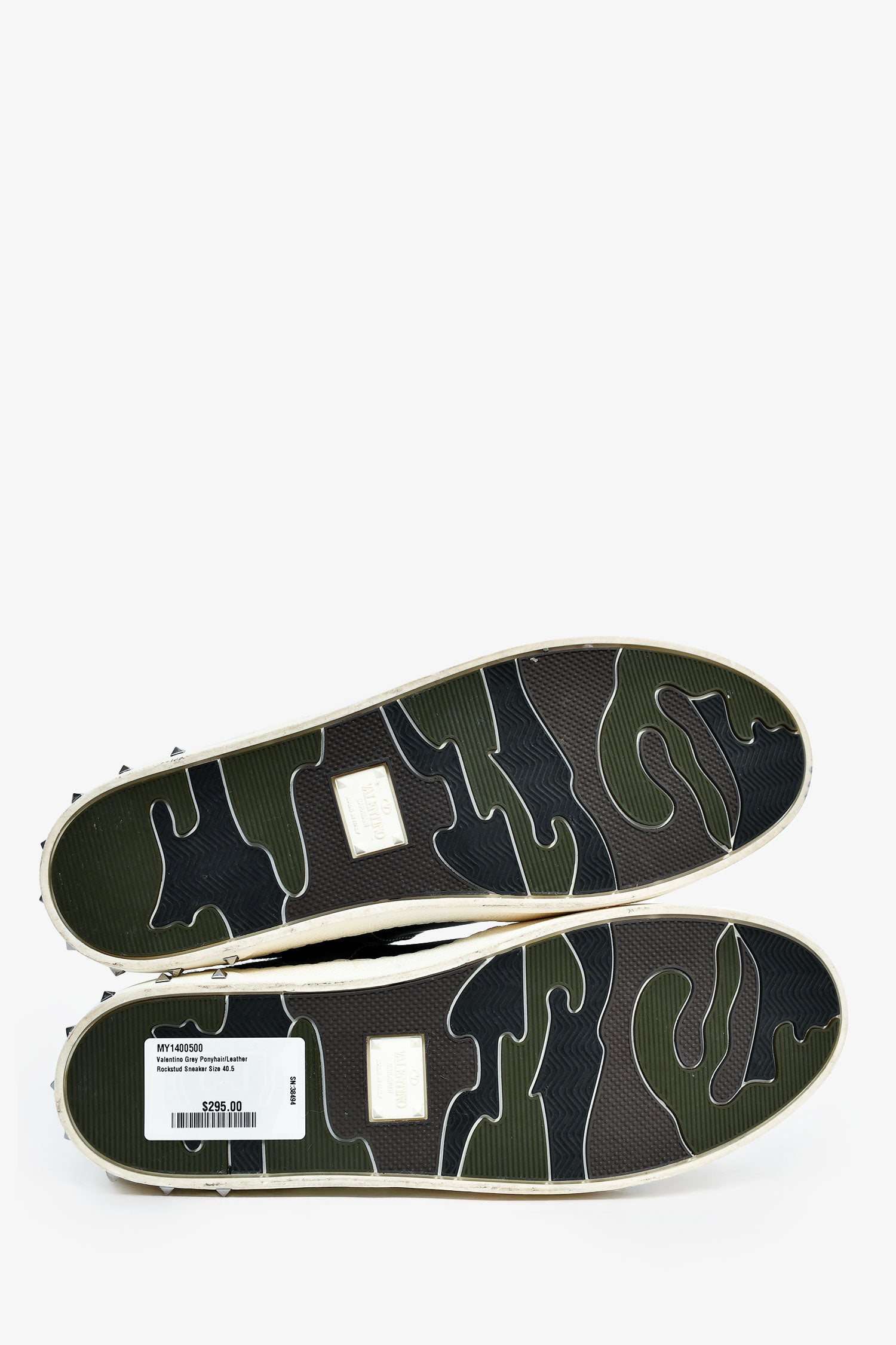 Refresh availabilityValentino Grey Ponyhair/Leather Rockstud Sneaker. Round toe. Lace-up closure.