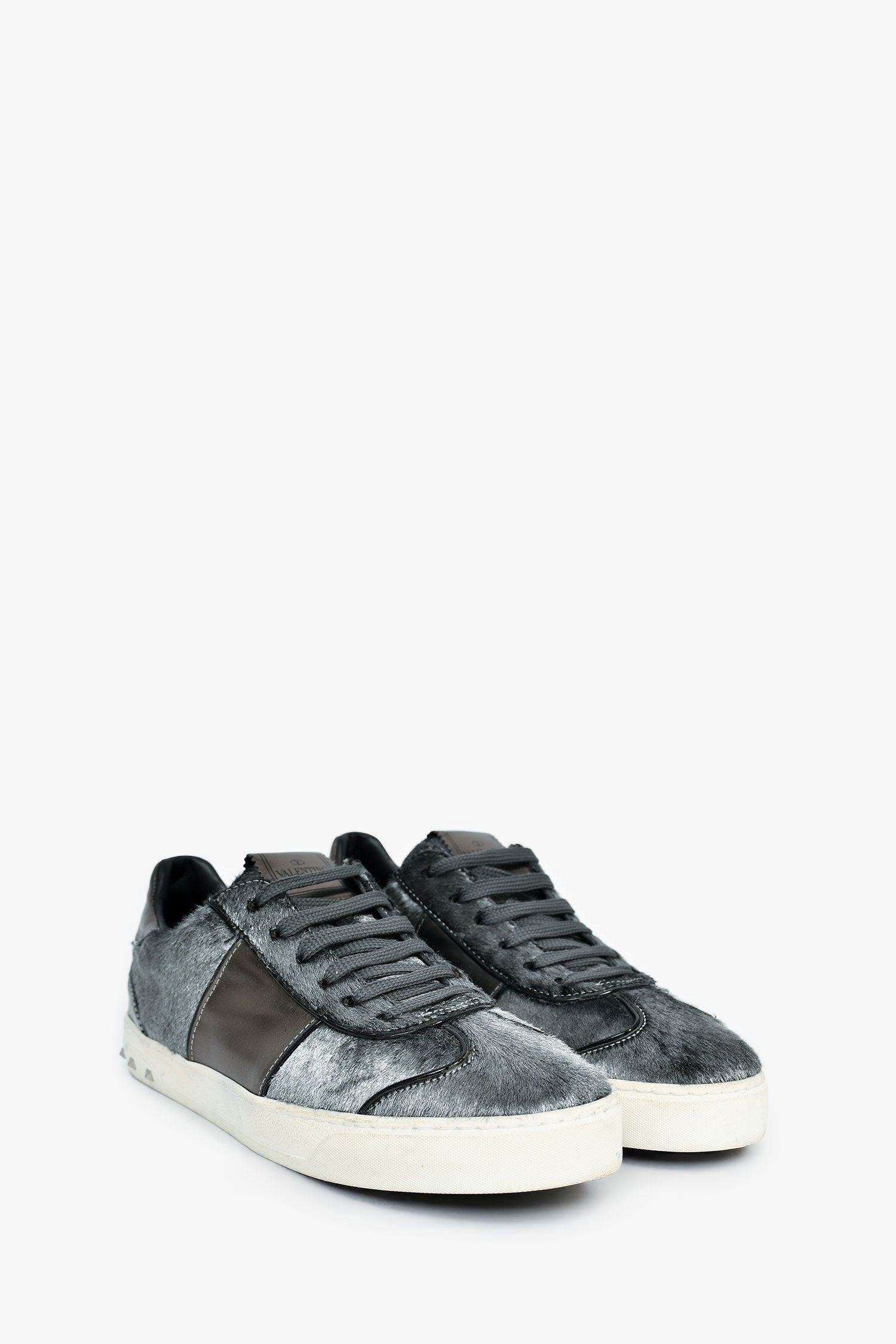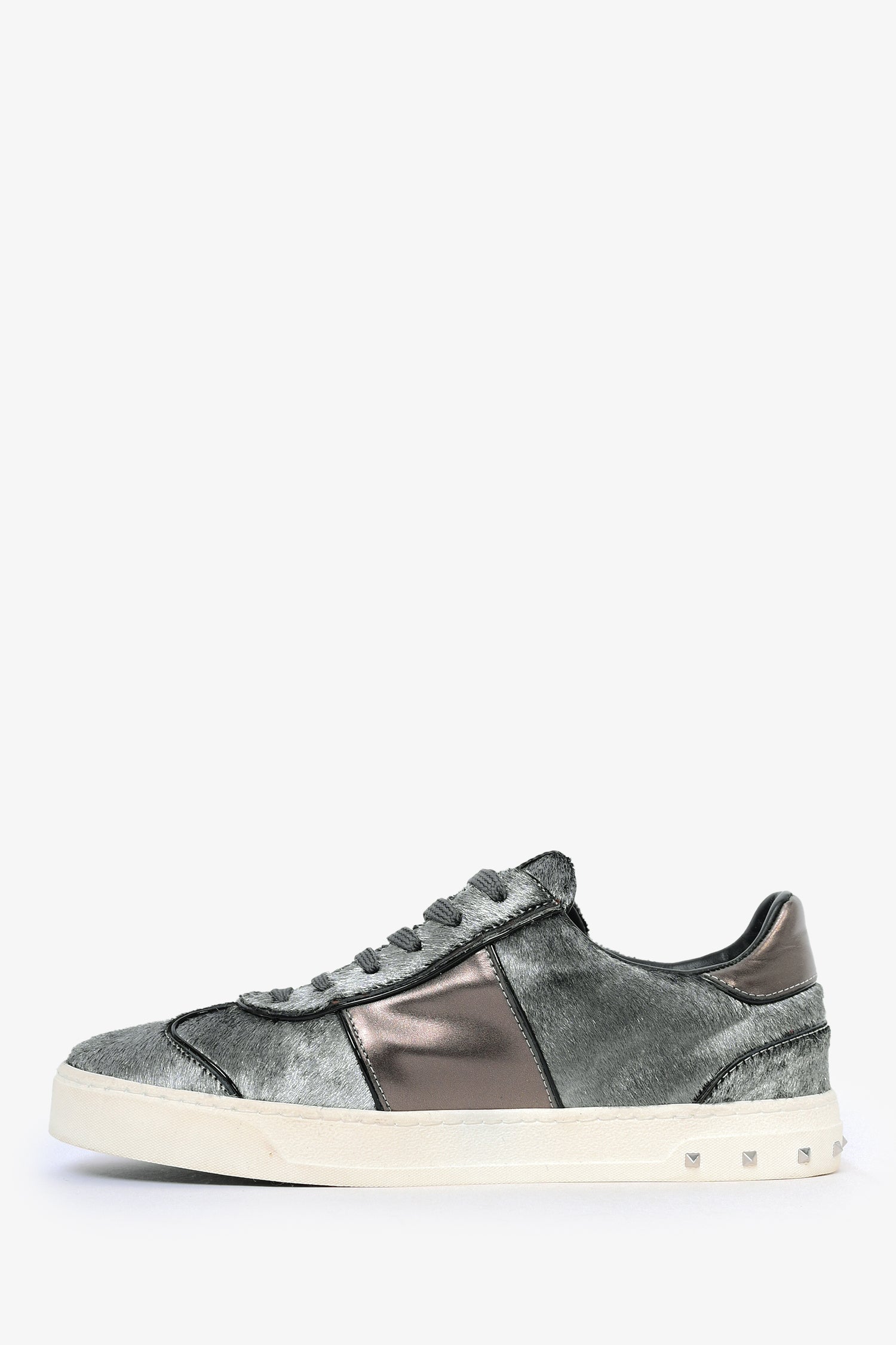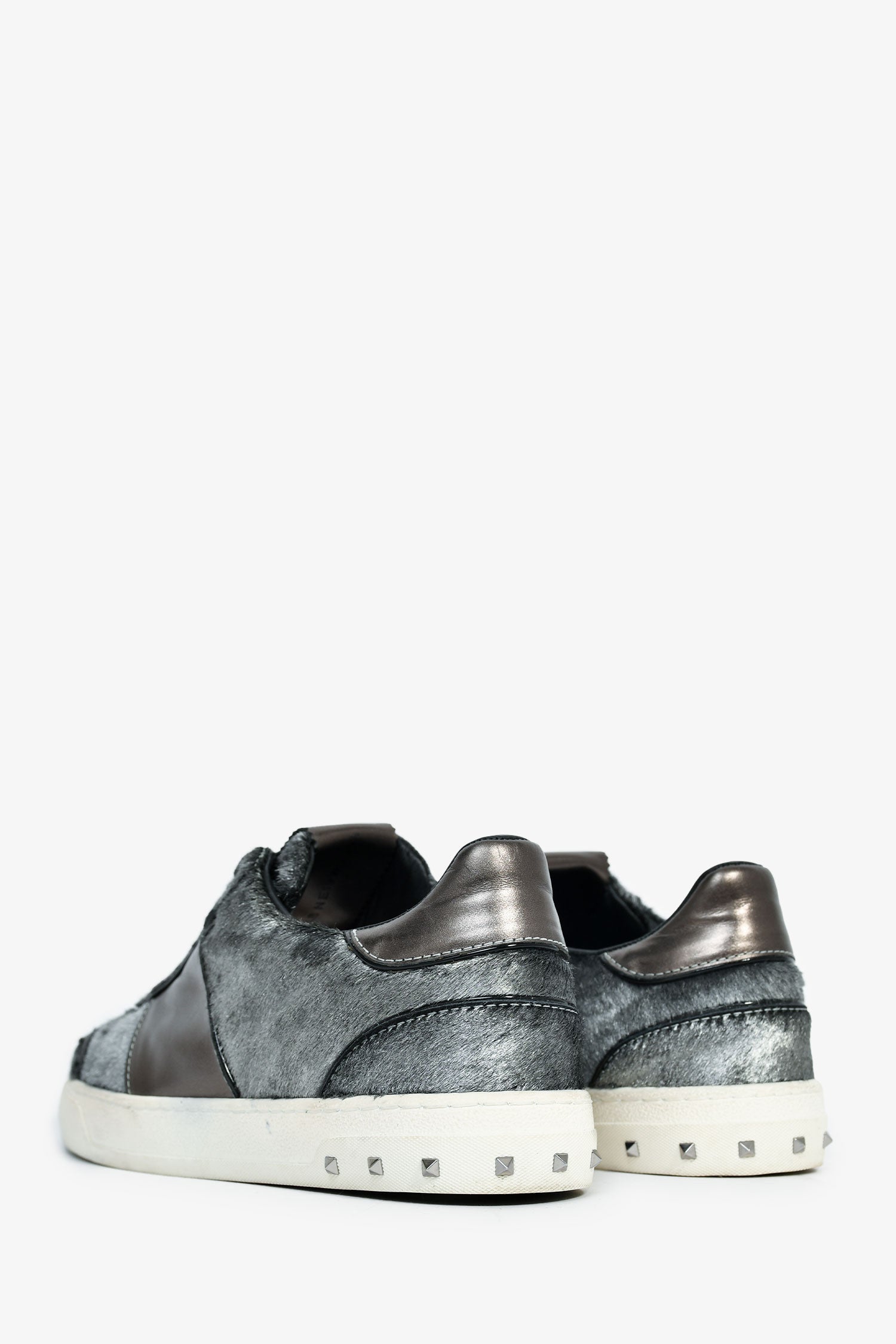 Valentino Grey Ponyhair/Leather Rockstud Sneaker Size 40.5