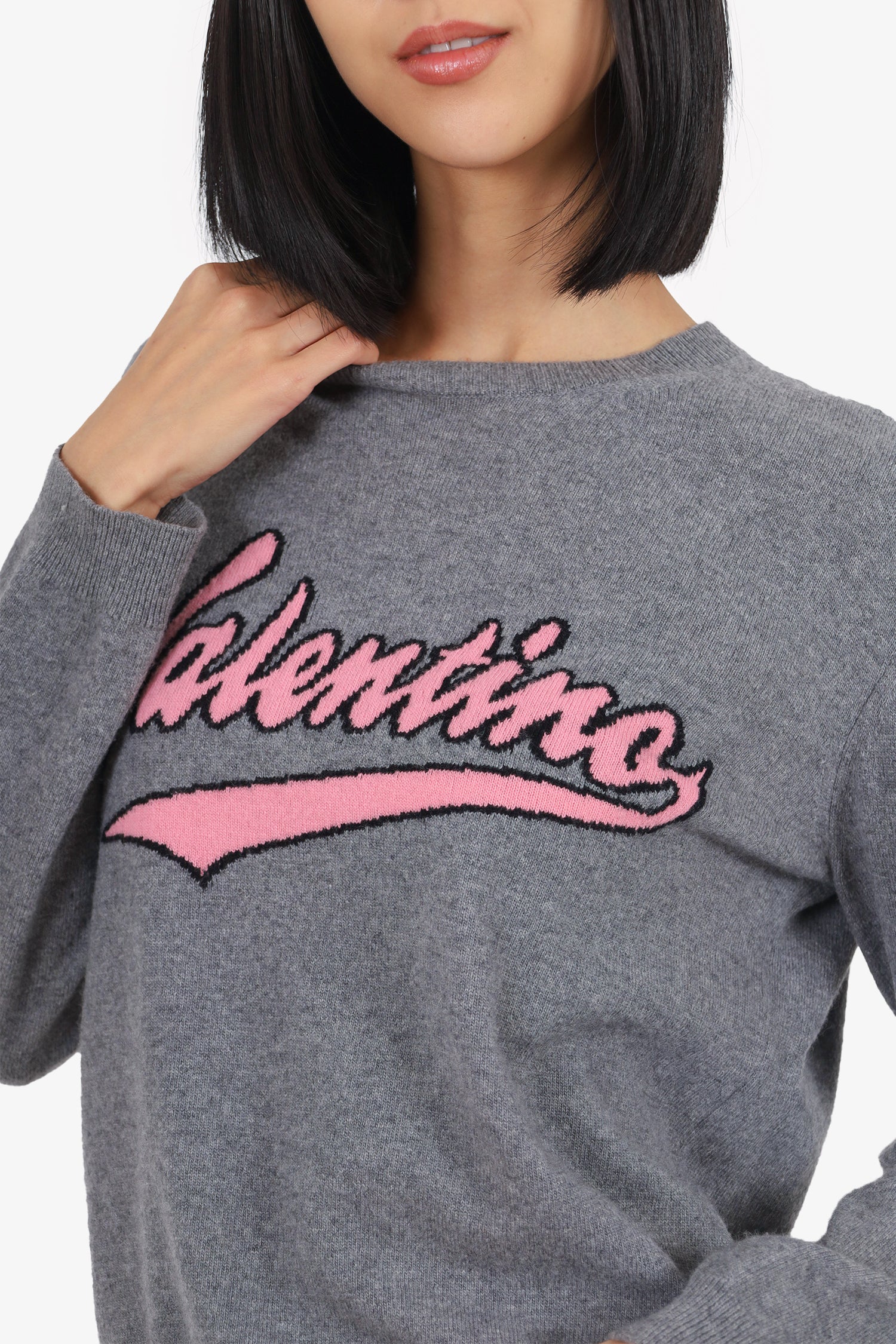 Refresh availabilityValentino Grey/Pink Logo Sweater. Pull-on. Round neckline. Ribbed neckline, sleeve cuffs and bottom hem. Tonal stitching.