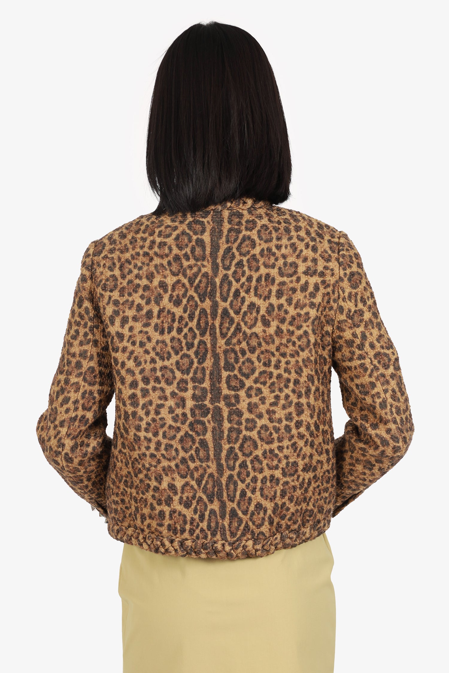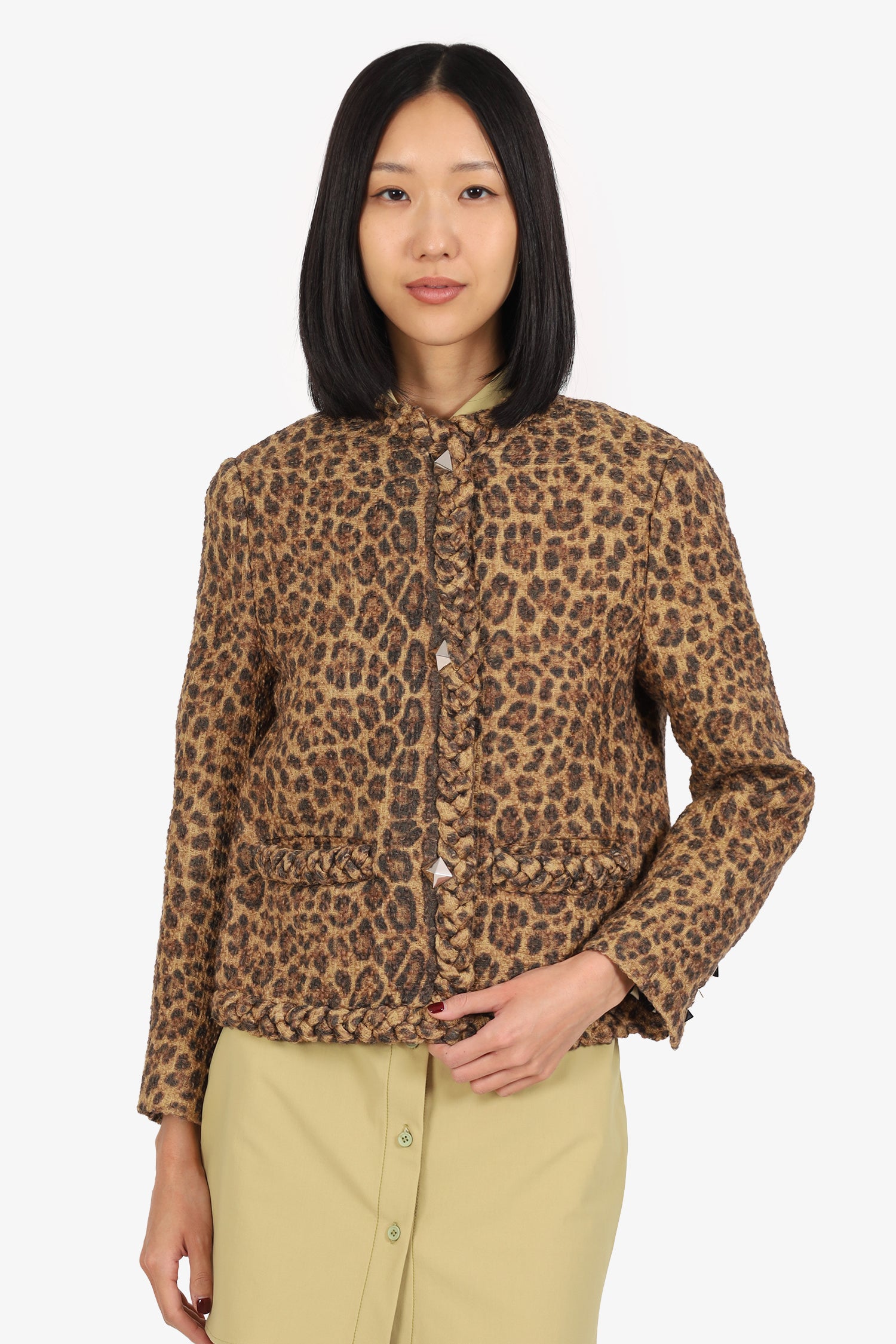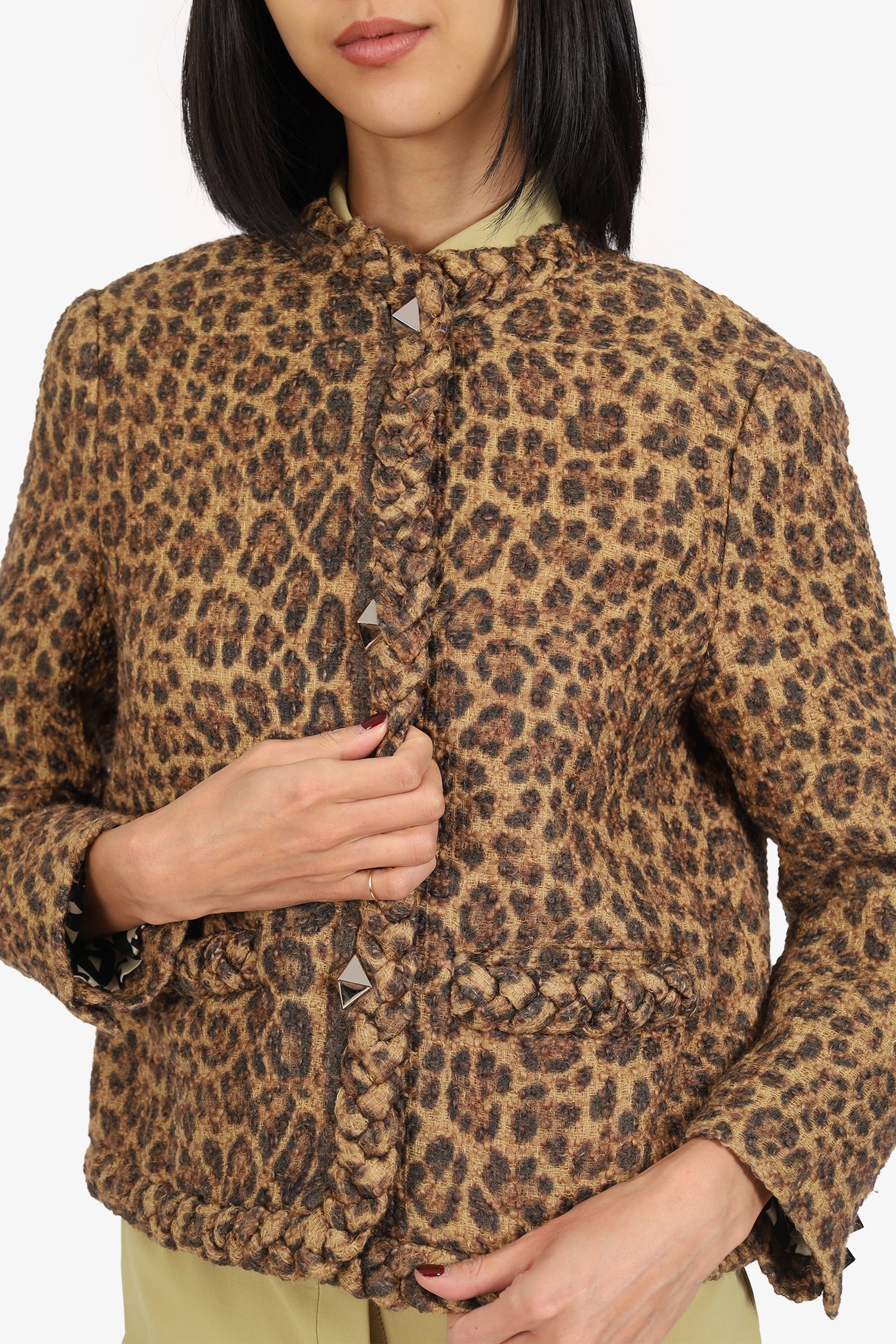Valentino Leopard Print Tweed Rockstud Jacket Size 38