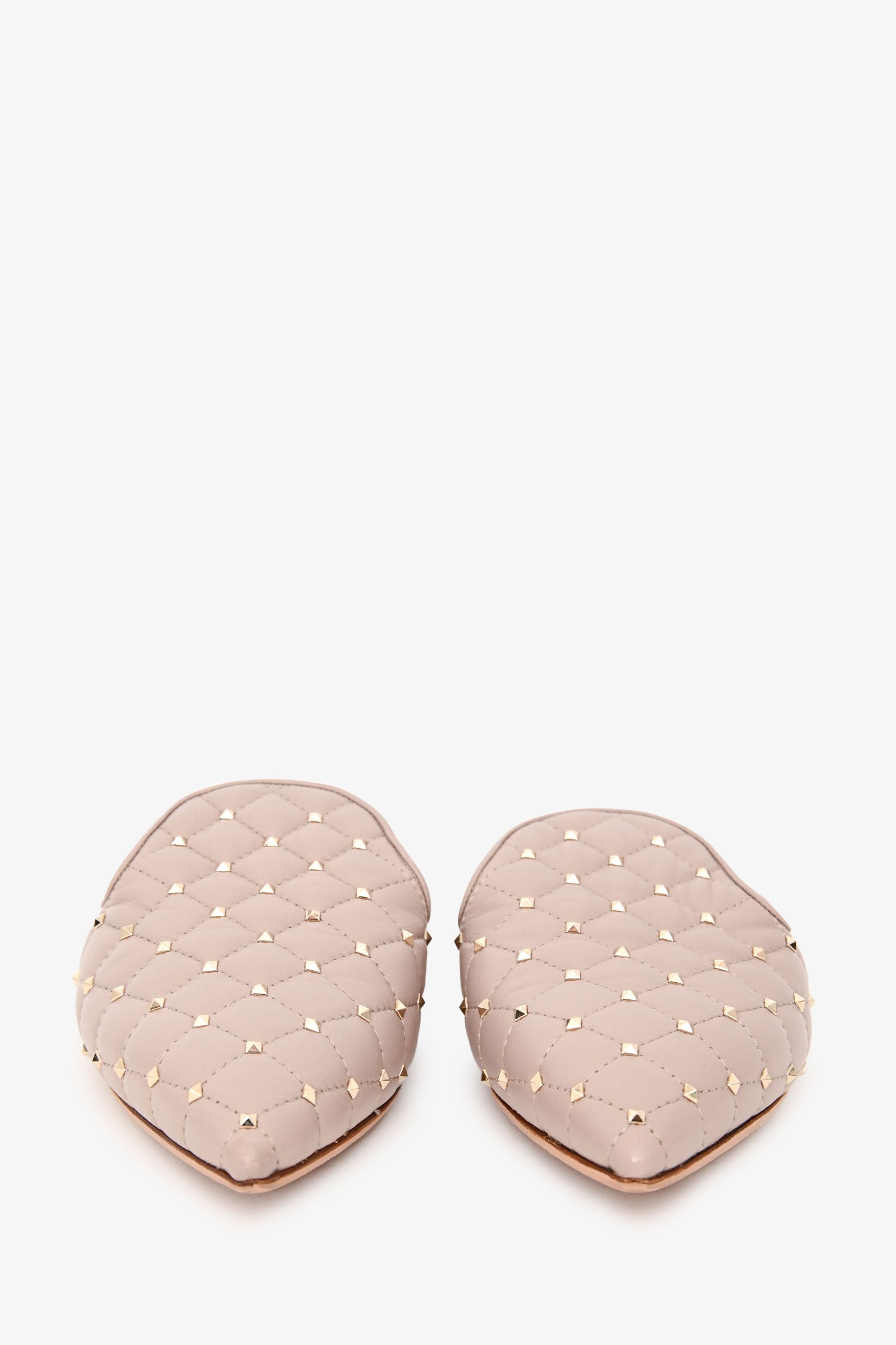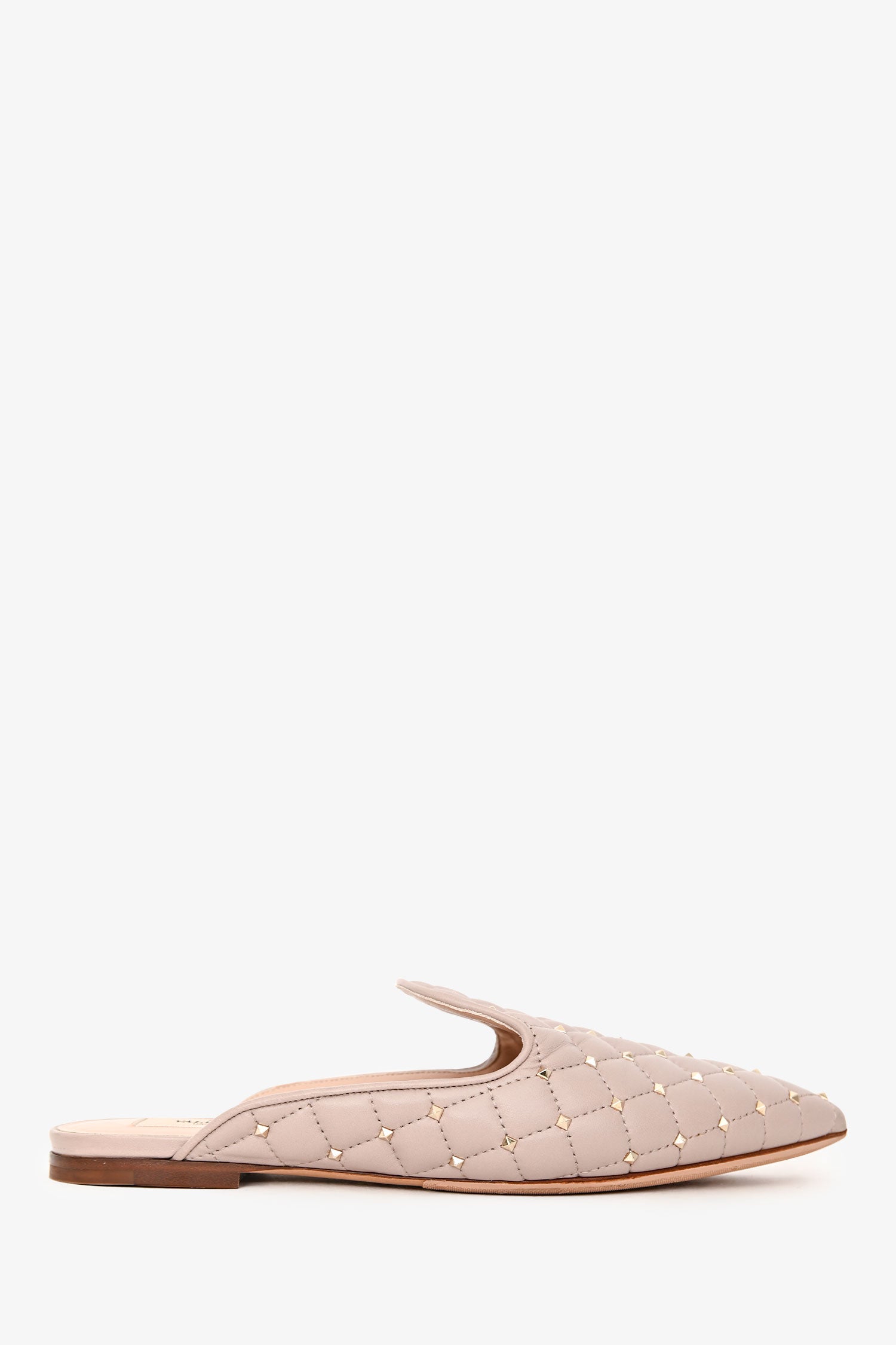 Refresh availabilityValentino Light Pink Leather Rockstud Spike Mule. Pointed toe. Gold-tone hardware. Tonal stitching.