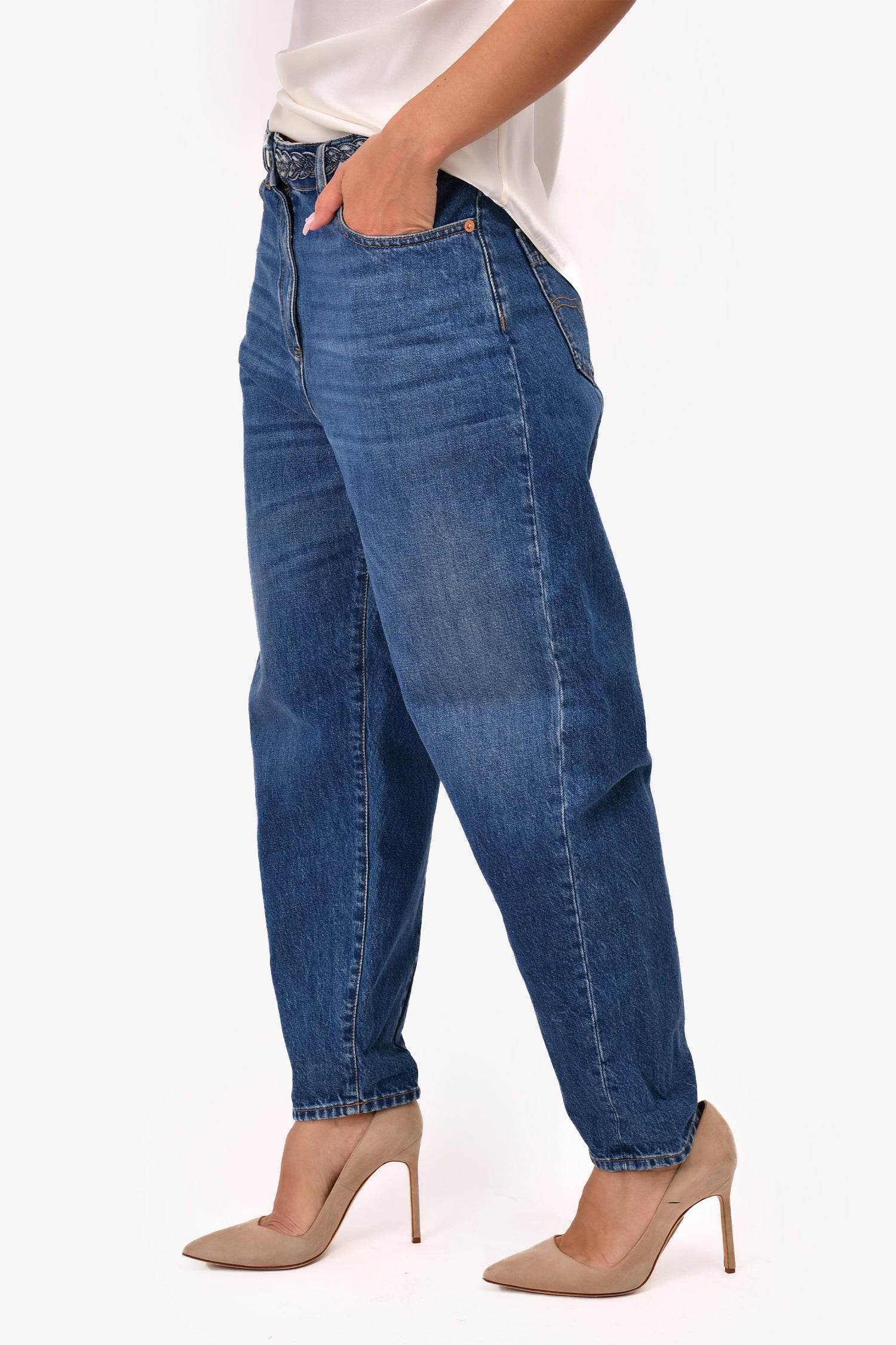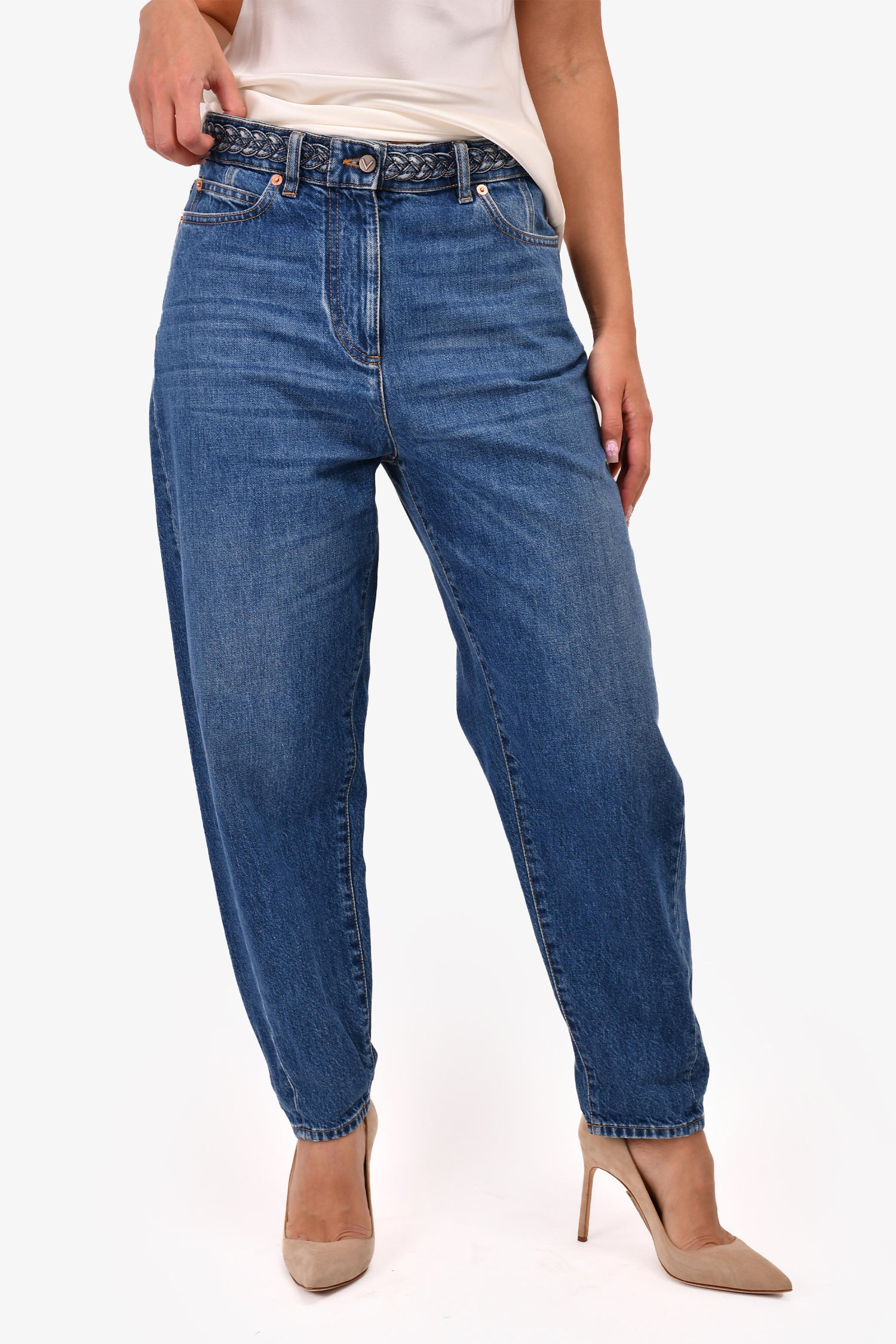 Valentino Medium Wash Braided Waistband Tapered Jeans Size 28