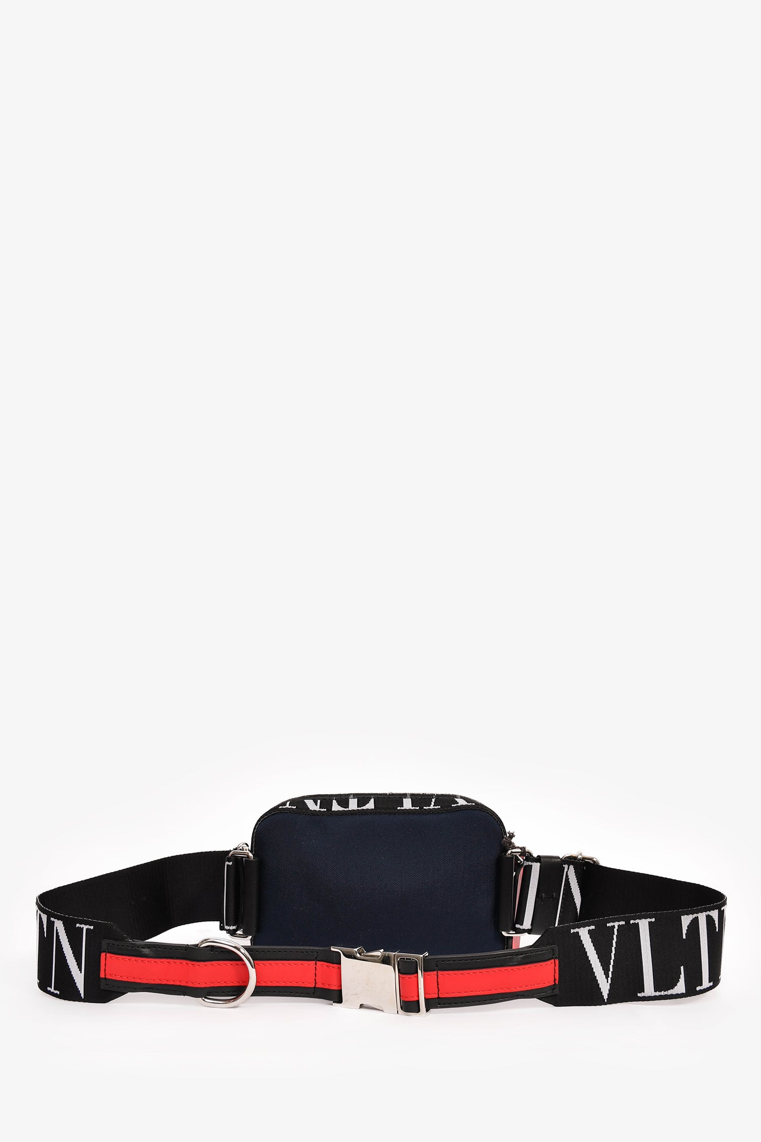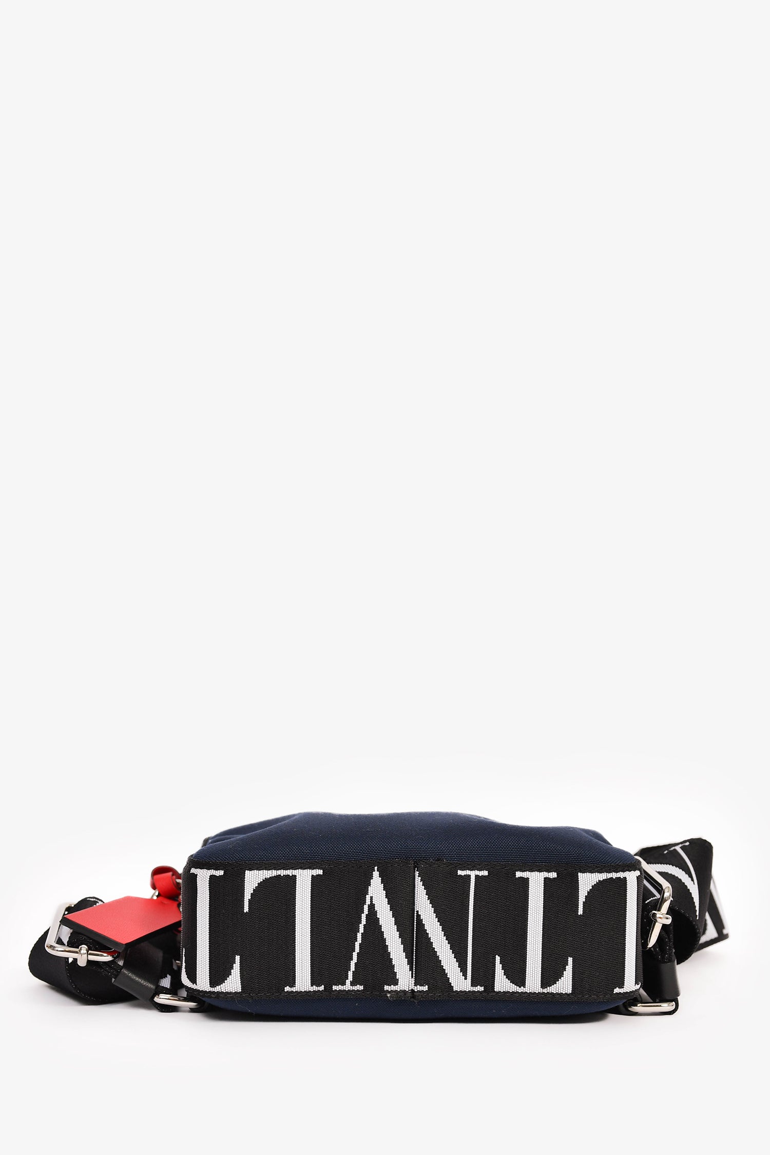 Valentino Navy Cloth Black Canvas Logo Strap Bum Bag