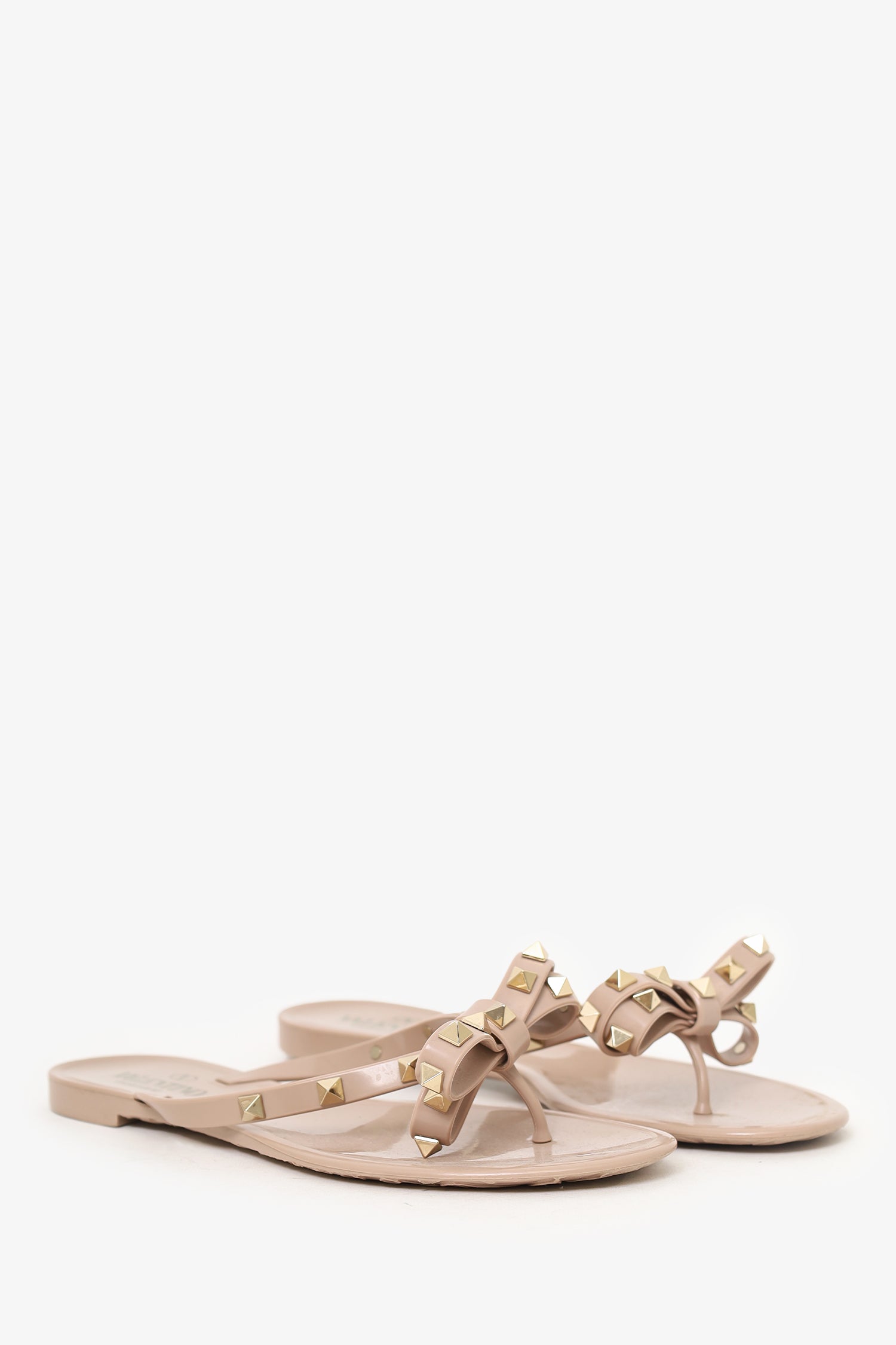 Refresh availabilityValentino Nude Bow Detail Rockstud Flip Flops. Slip-on. Pointed-round toe. Gold-tone hardware. Tonal stitching.