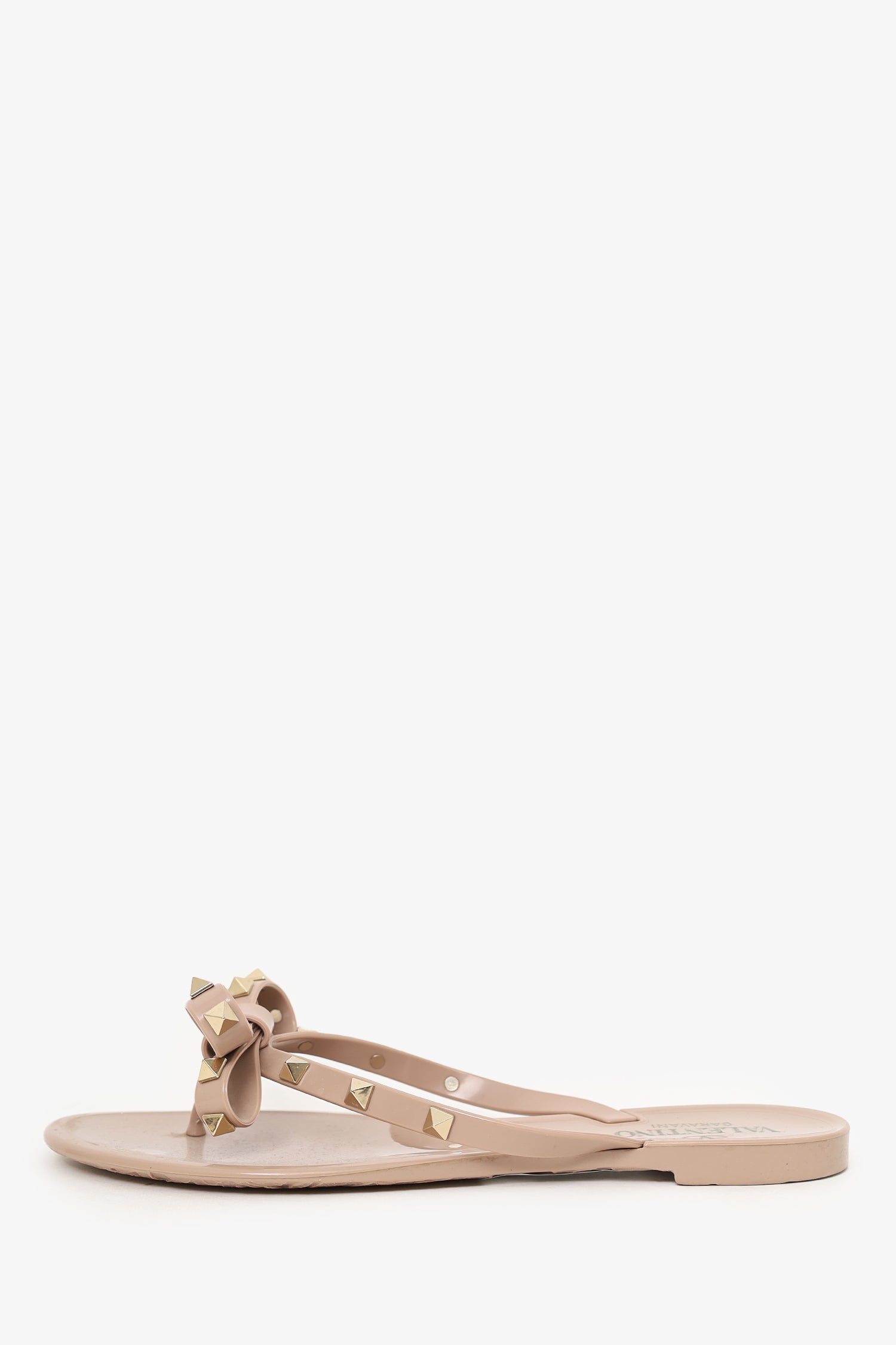 Valentino Nude Bow Detail Rockstud Flip Flops Size 38