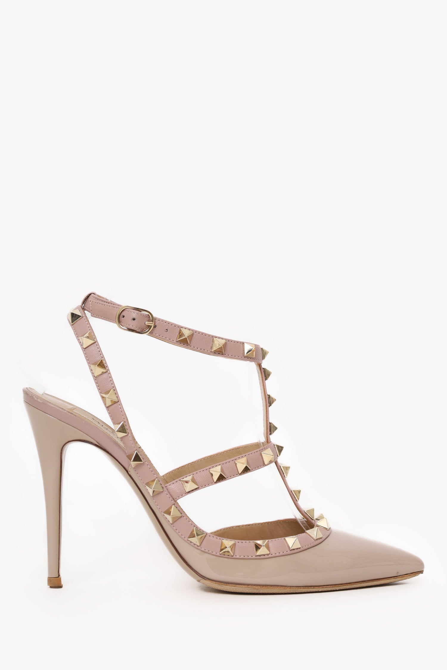 Refresh availabilityValentino Nude Patent Cage Rockstud Heels. Slip-on. Pointed toe. Ankle strap with adjustable buckle closure. Gold-tone hardware. Tonal stitching.