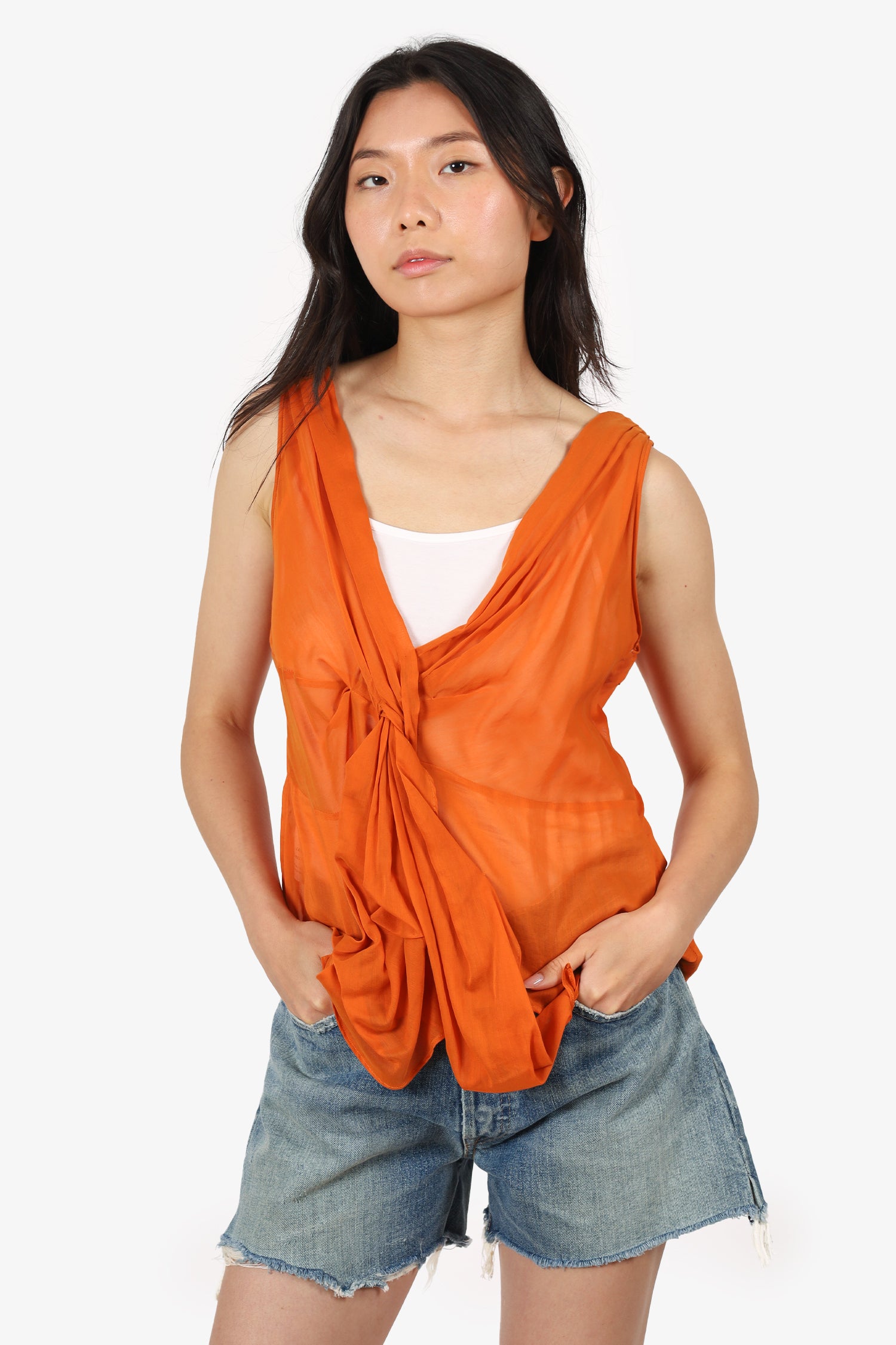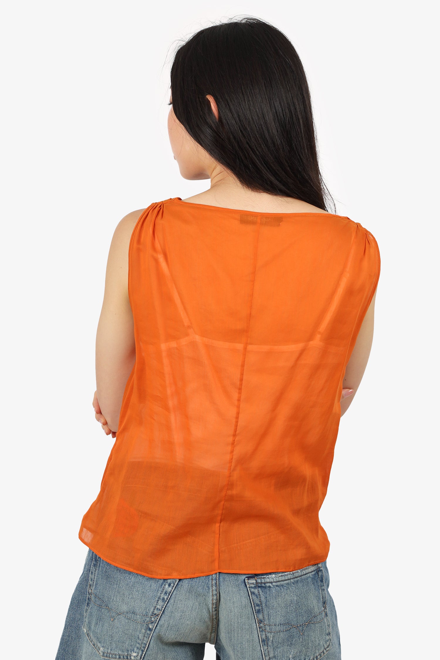 Valentino Orange Cotton/Silk Blend Sheer Top Size 46