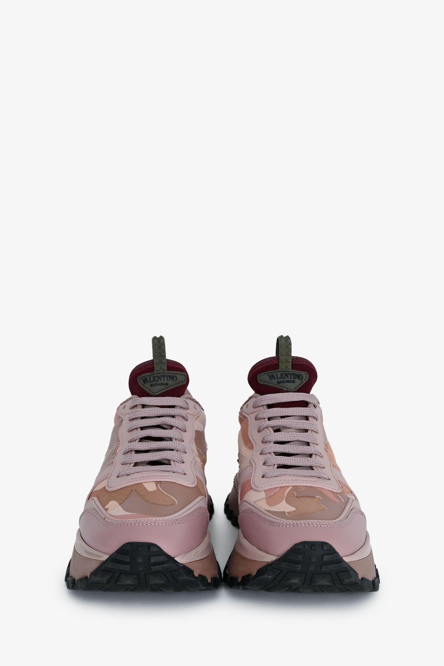 Refresh availabilityValentino Pink Leather Camouflage Rockstud Sneakers. Round toe. Lace-up closure.