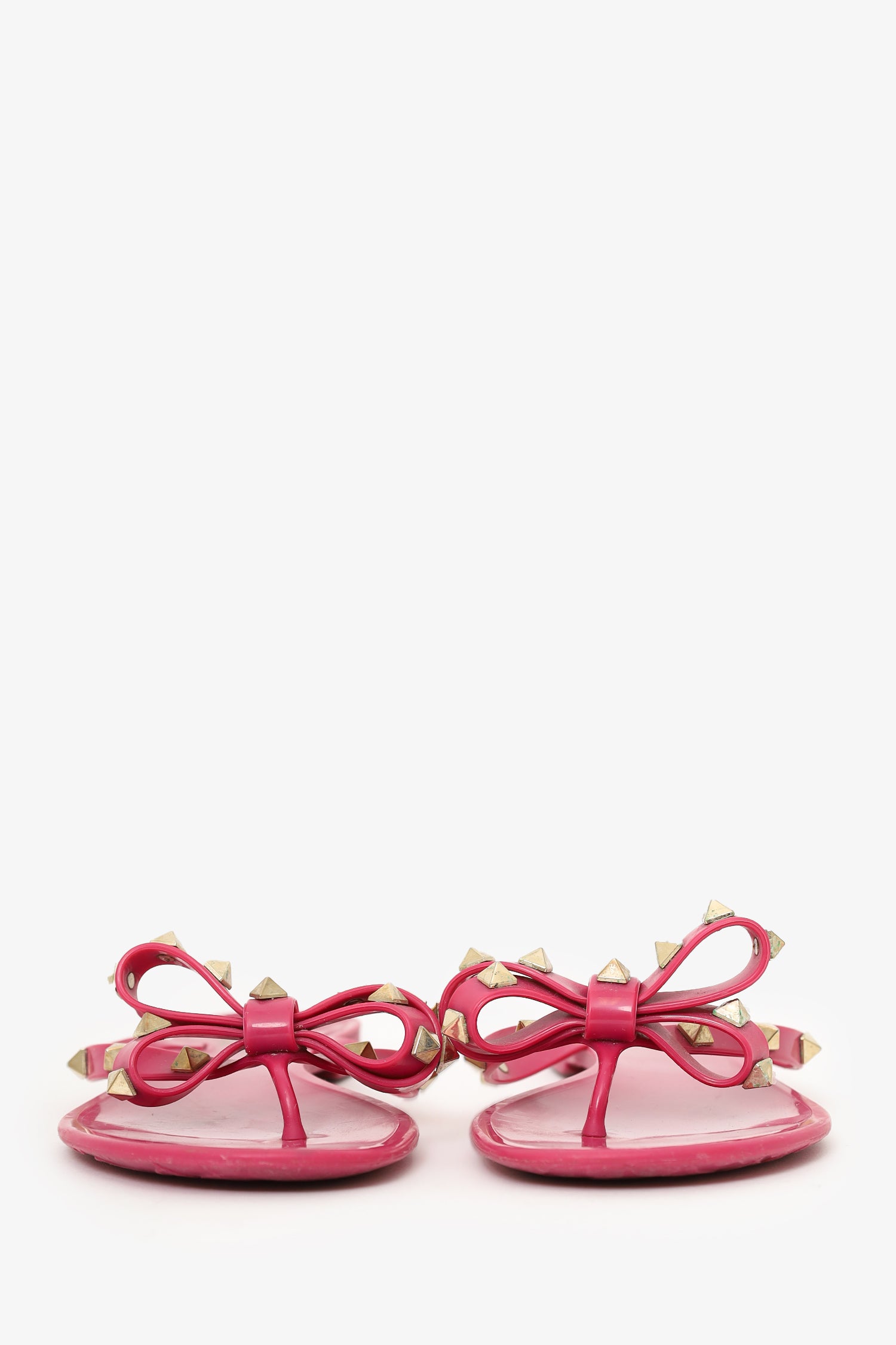 Valentino Pink Rubber Rockstud Bow Thong Sandals Size 37