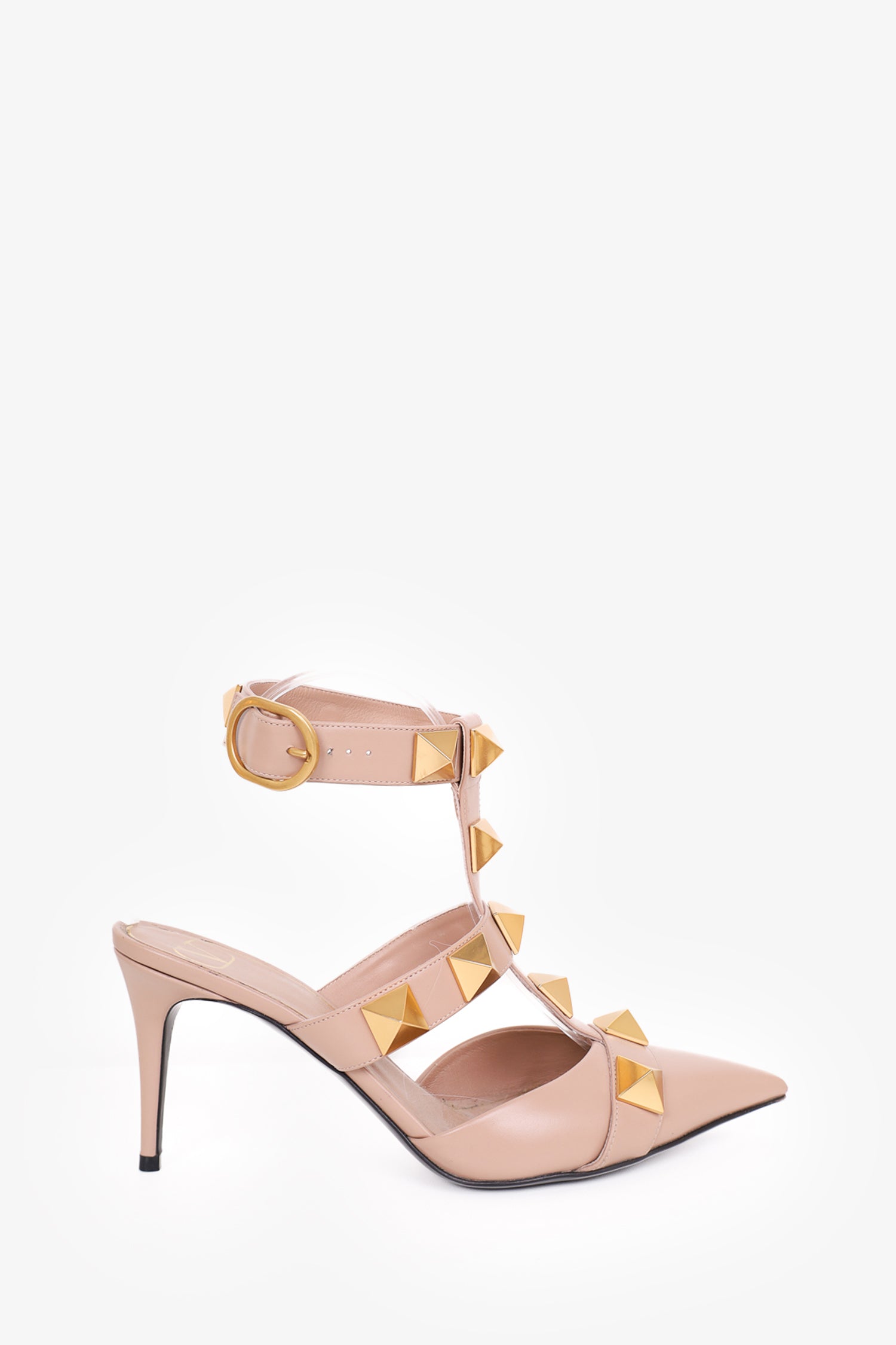 Refresh availabilityValentino Pink Calfskin Roman Stud Ankle Strap Pumps. Pointed toe. Ankle strap with buckle closure. Tonal stitching.