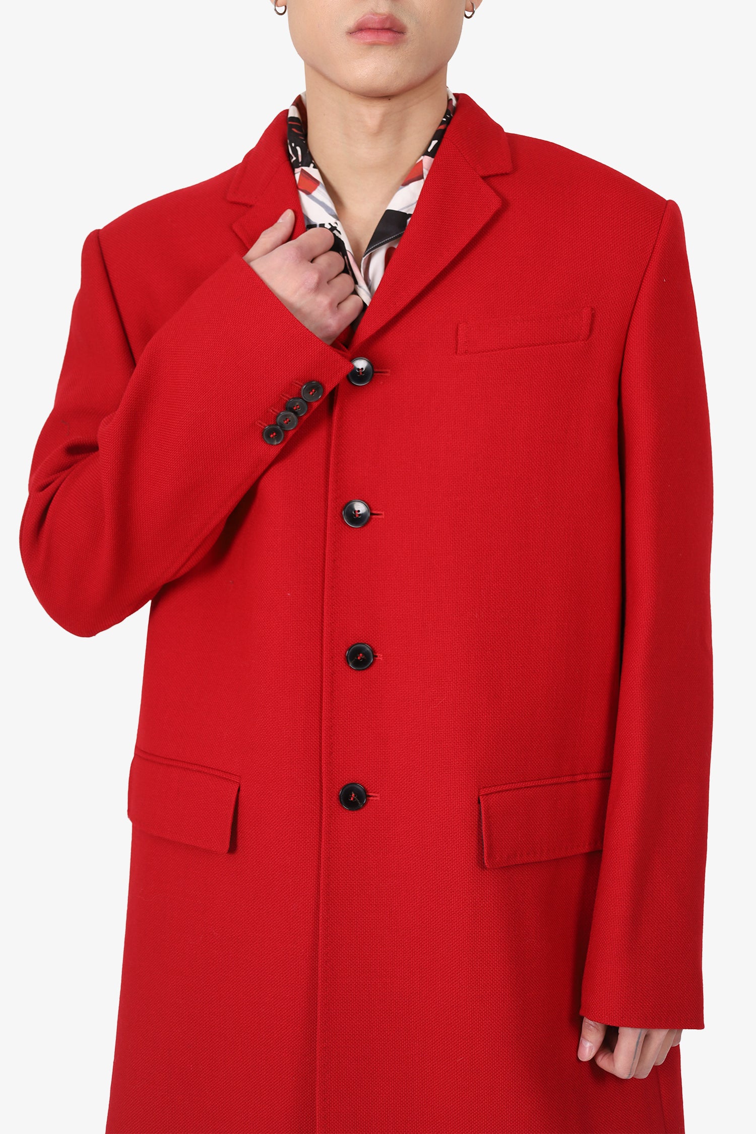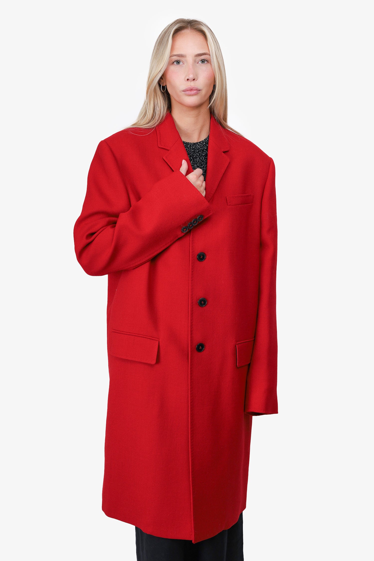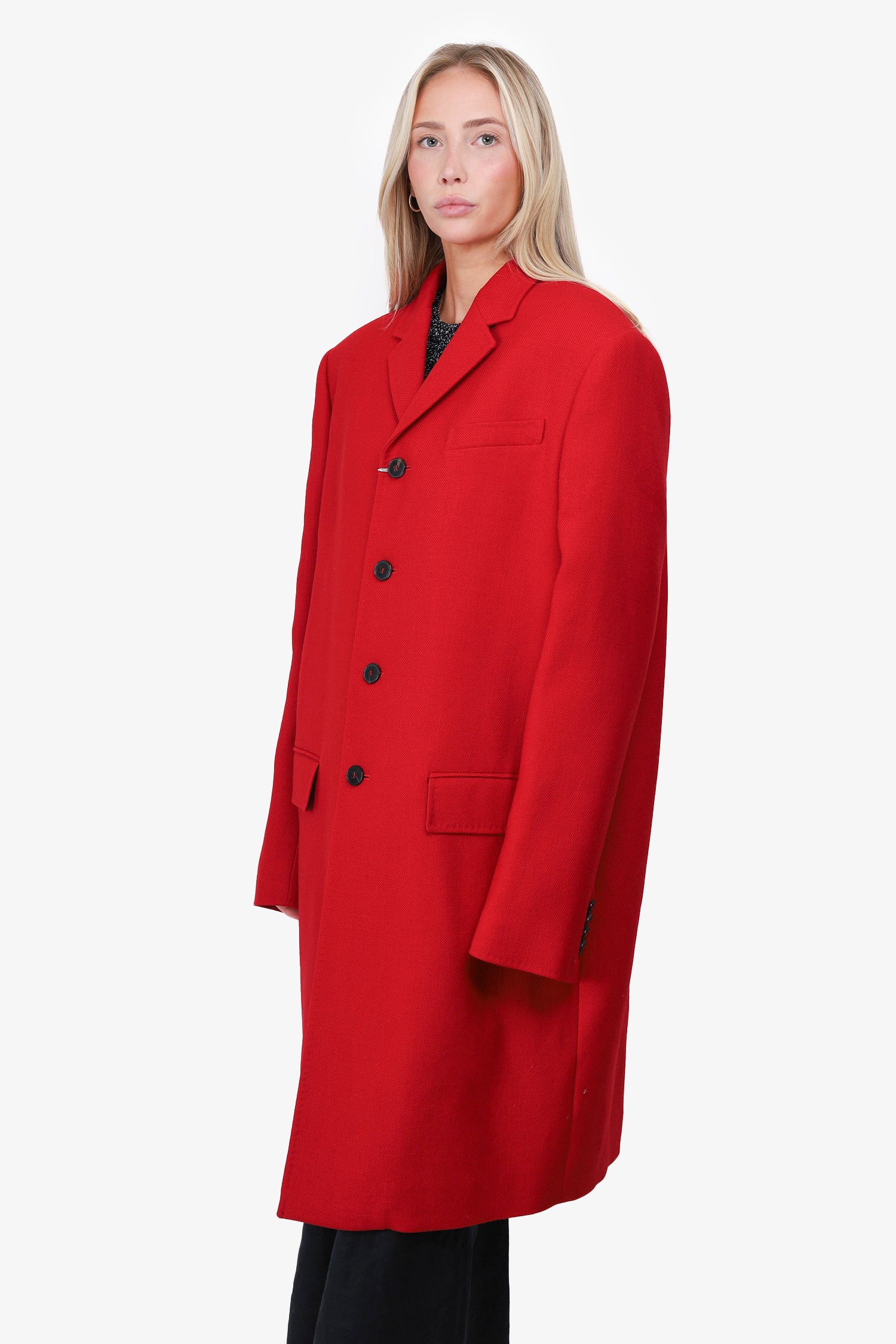 Refresh availabilityValentino Red Virgin Wool Single Breasted Coat. Front button closure. Front pockets with flap closure. Lined. Tonal stitching.