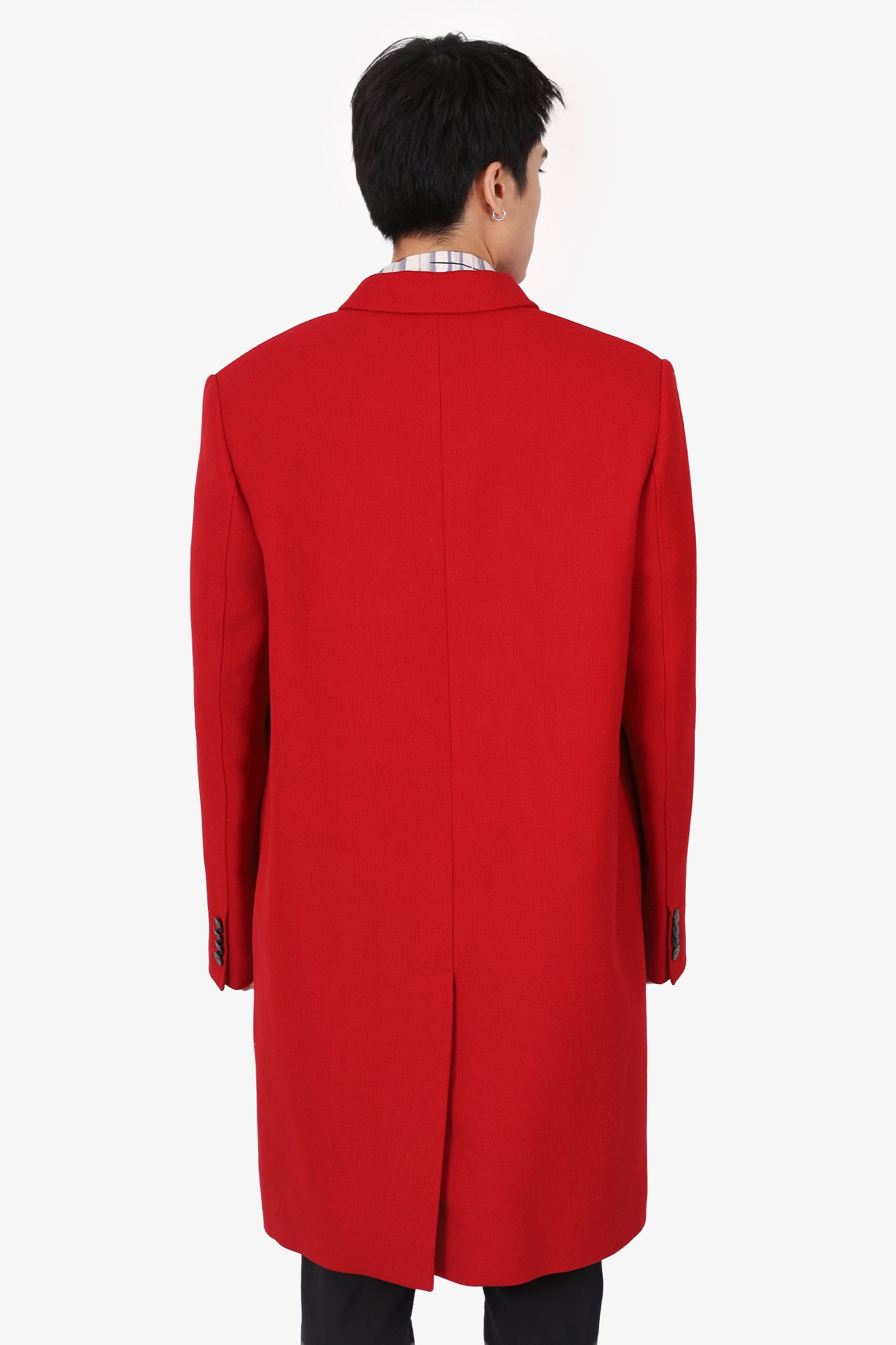 Valentino Red Virgin Wool Single Breasted Coat Size 54 Mens