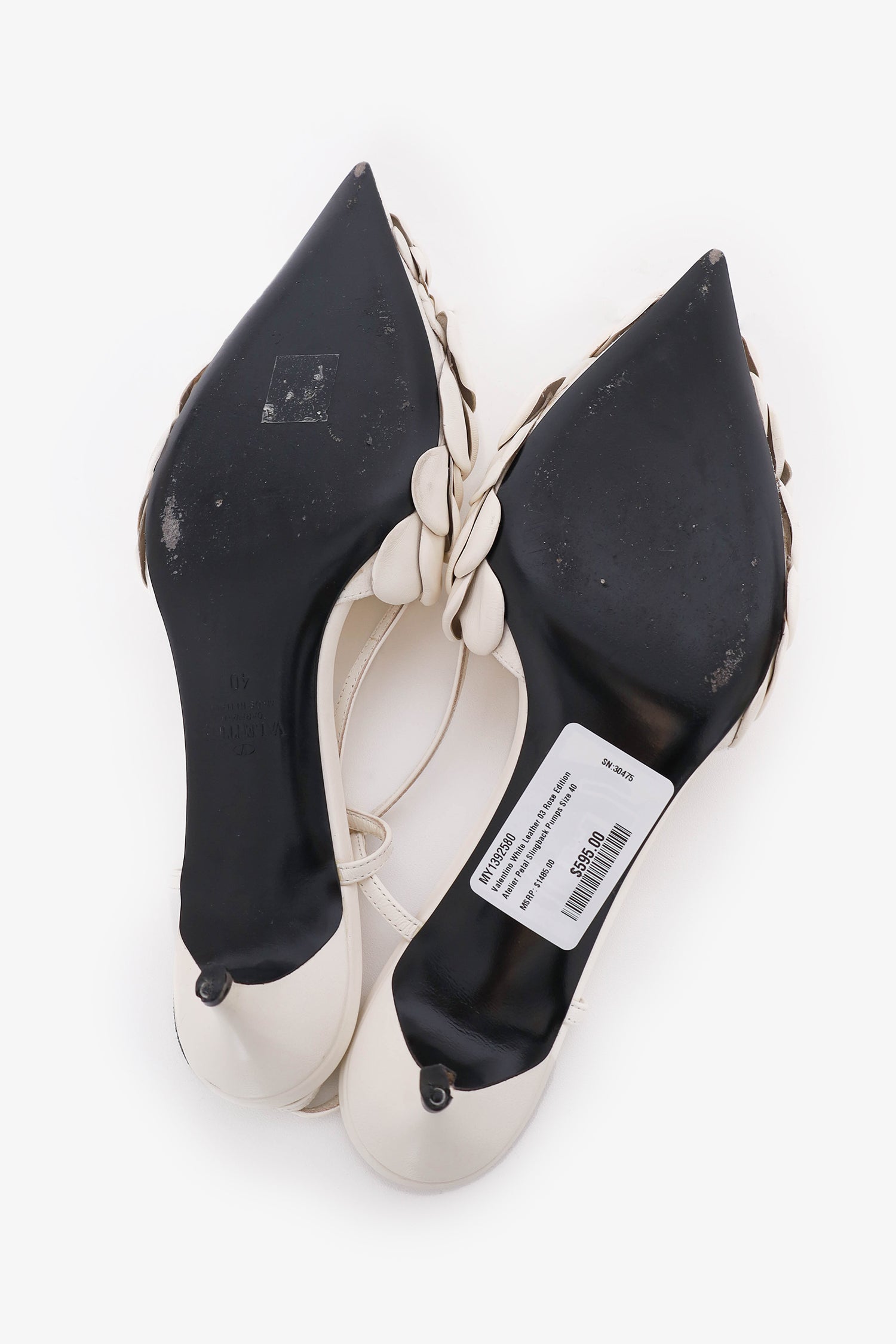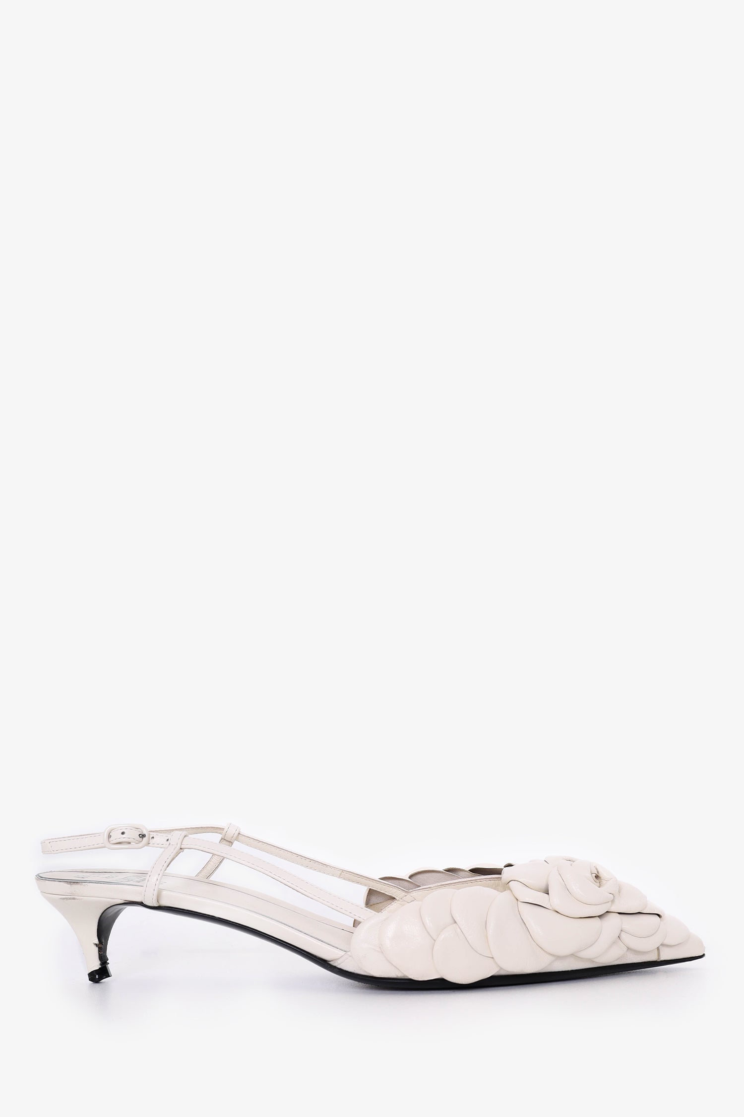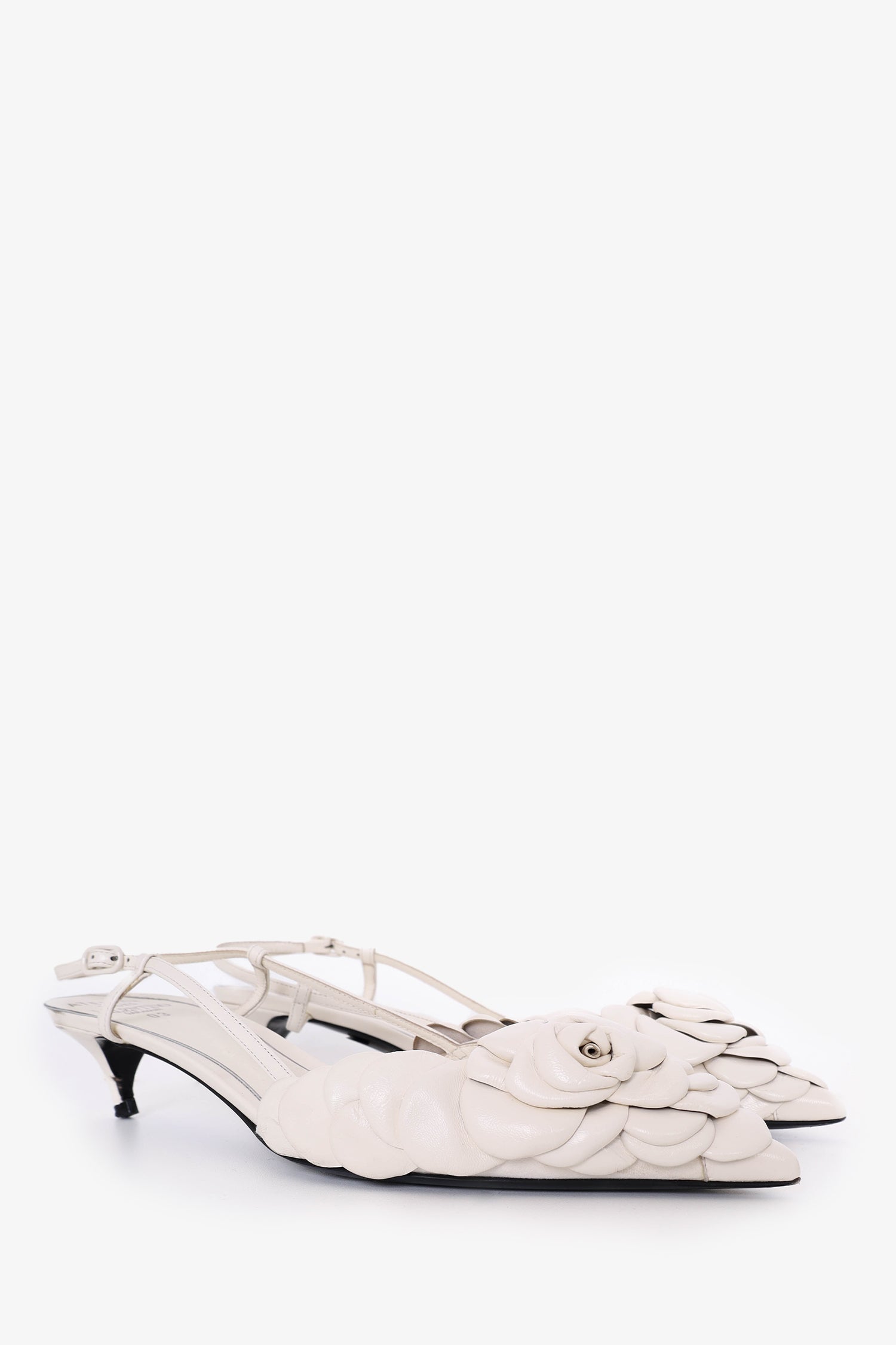 Refresh availabilityValentino White Leather 03 Rose Edition Atelier Petal Slingback Pumps. Ankle strap closure. Pointed toe. Tonal stitching.