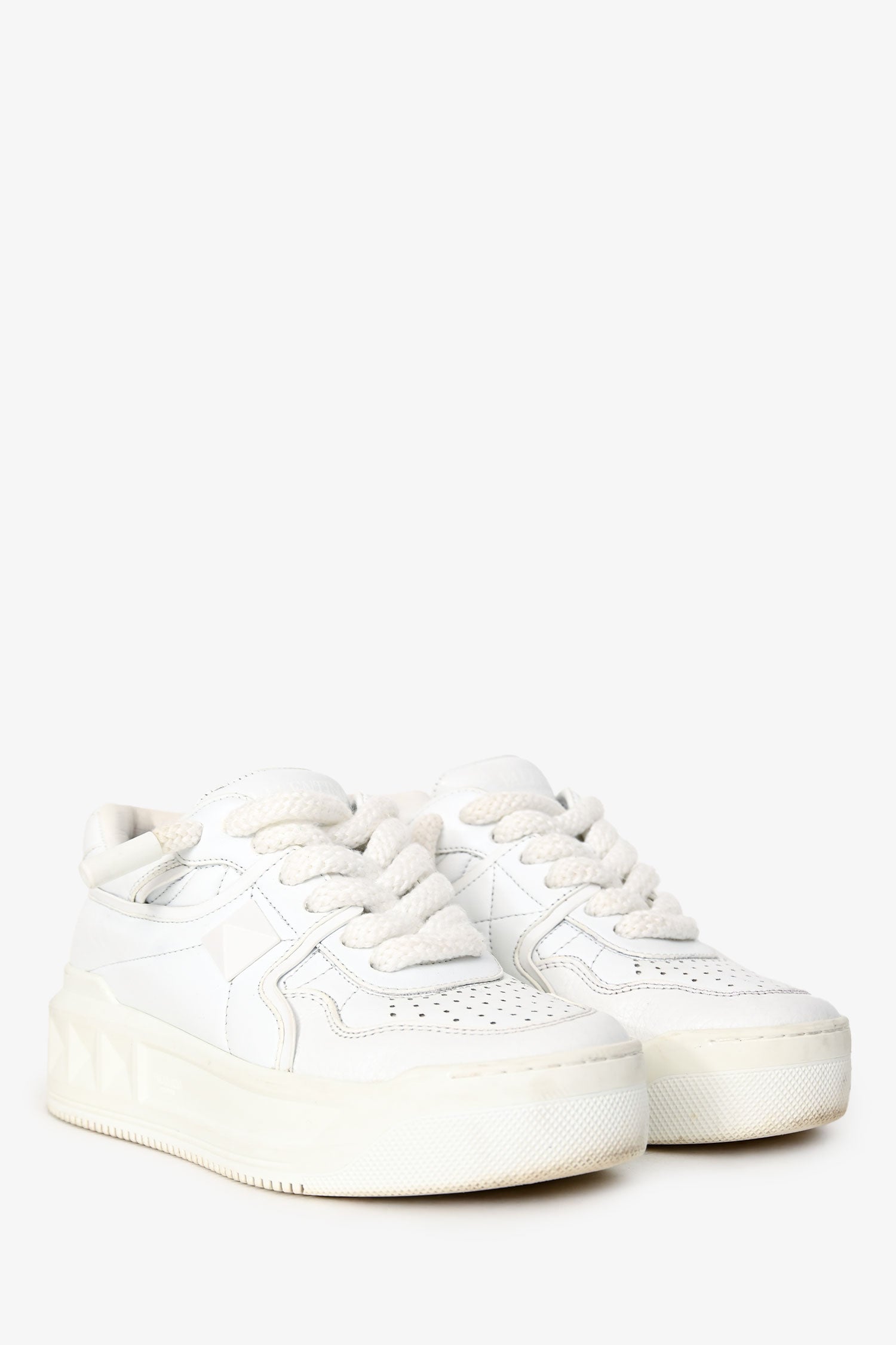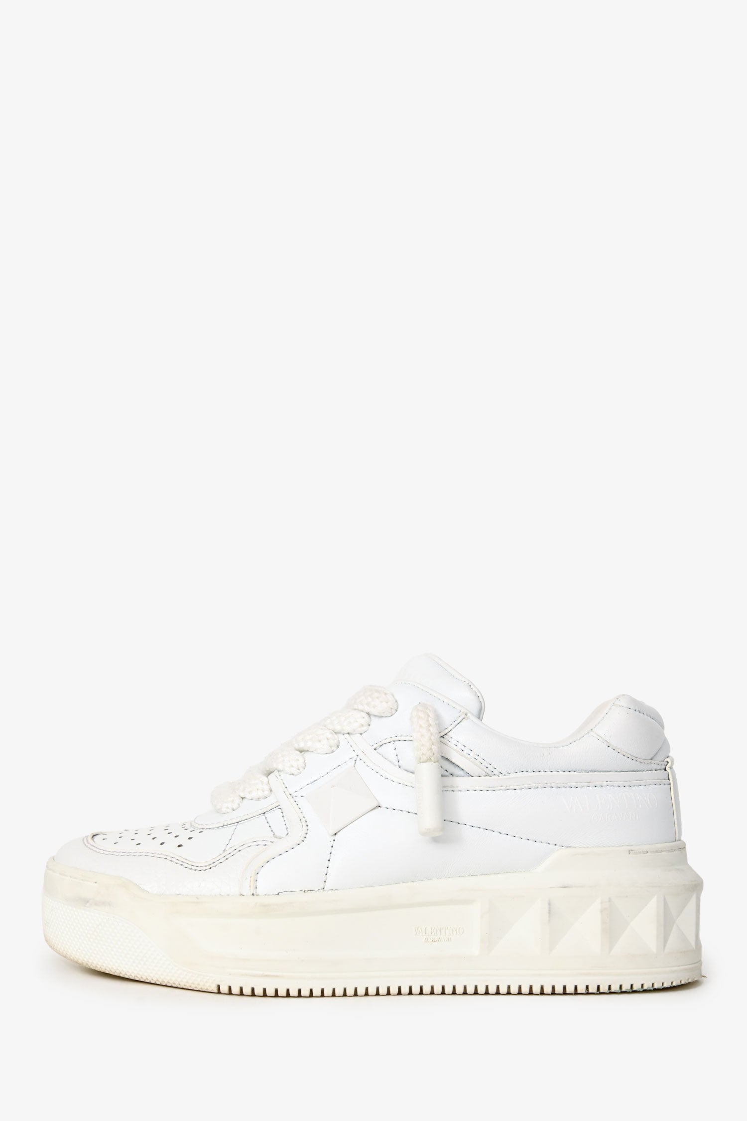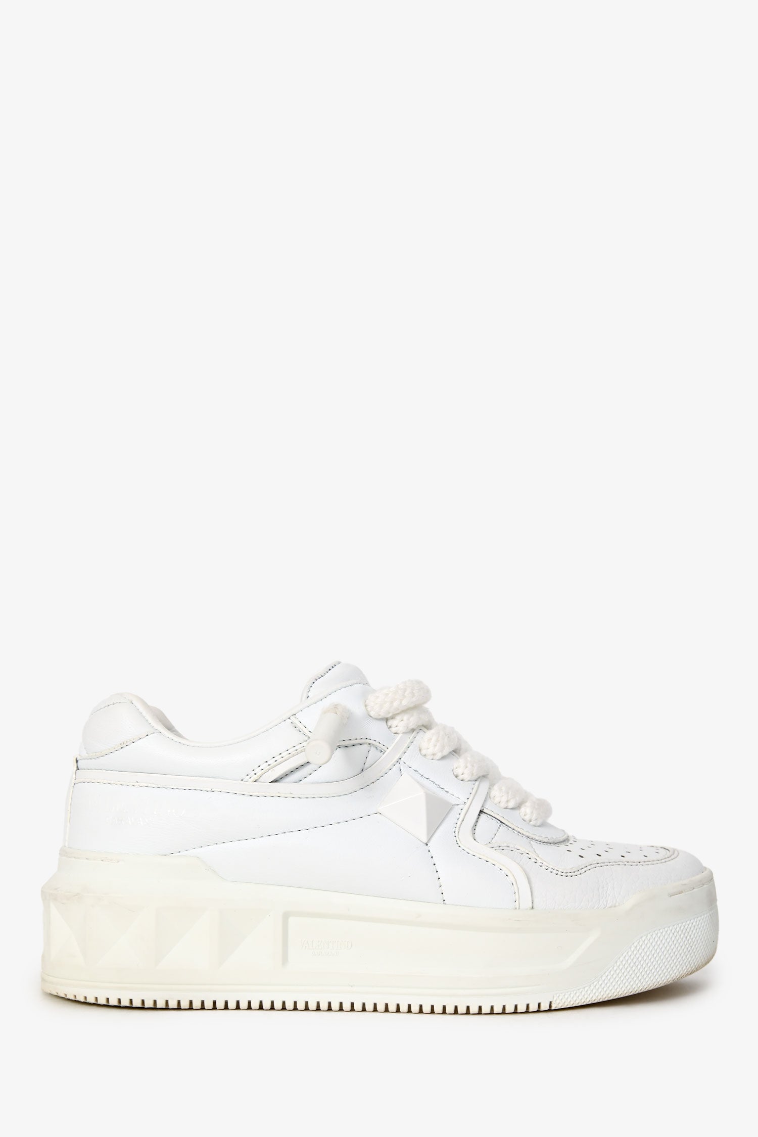 Refresh availabilityValentino White Leather One Stud X1 Low Top Sneakers. Lace-up closure in the front. Tonal hardware. Tonal stitching.