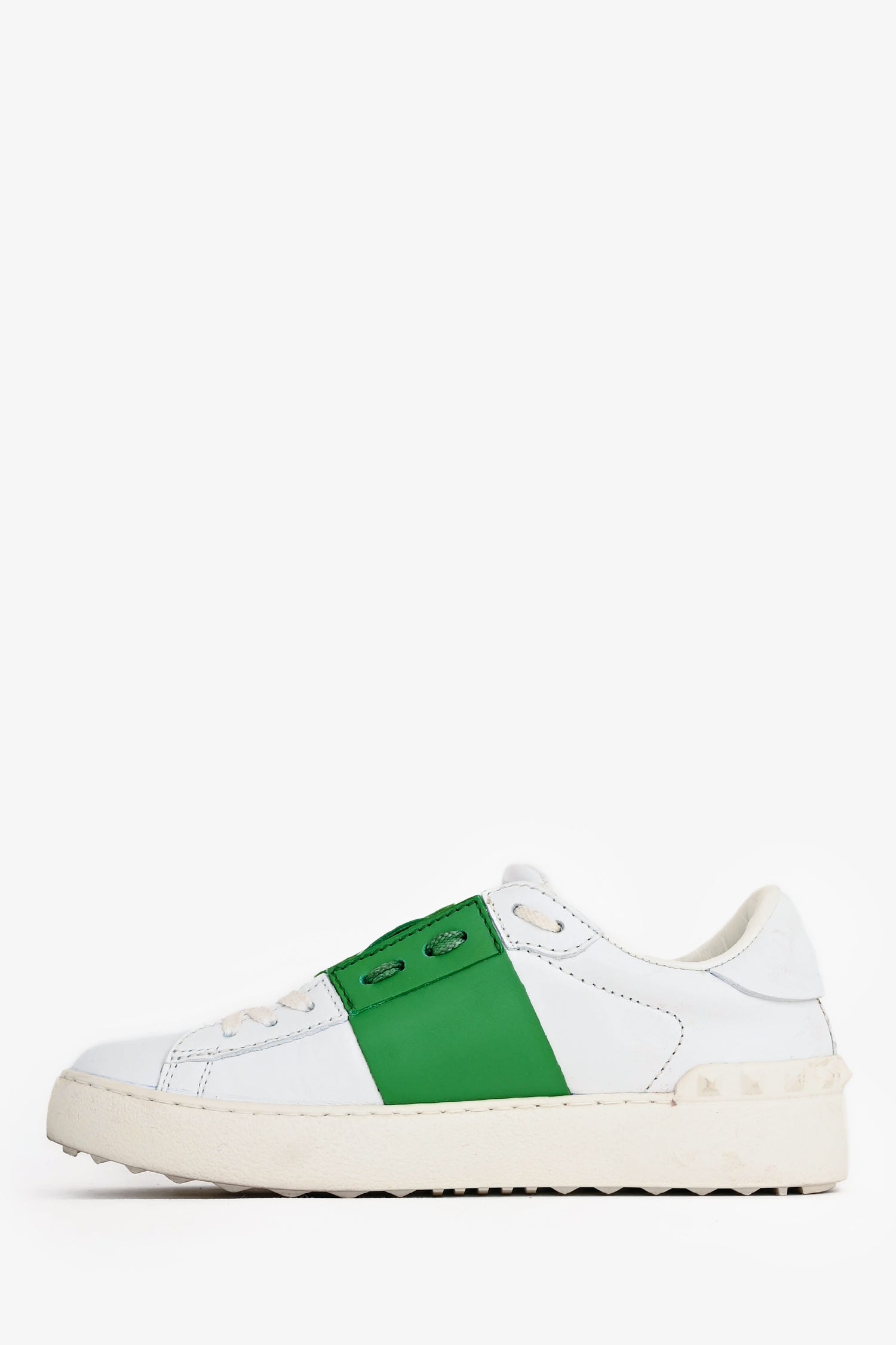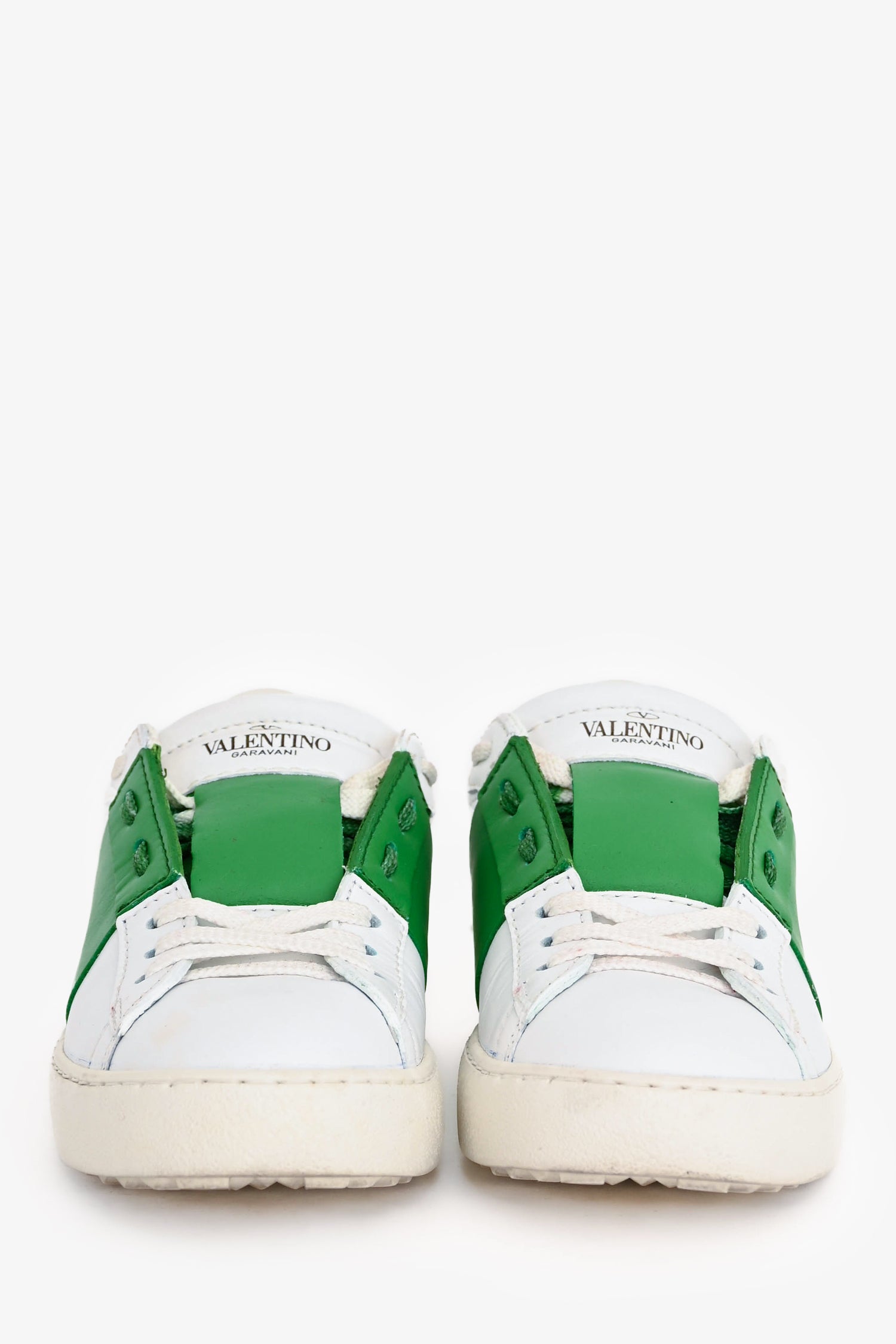 Valentino White/Green Leather Rockstud Sneakers Size 35
