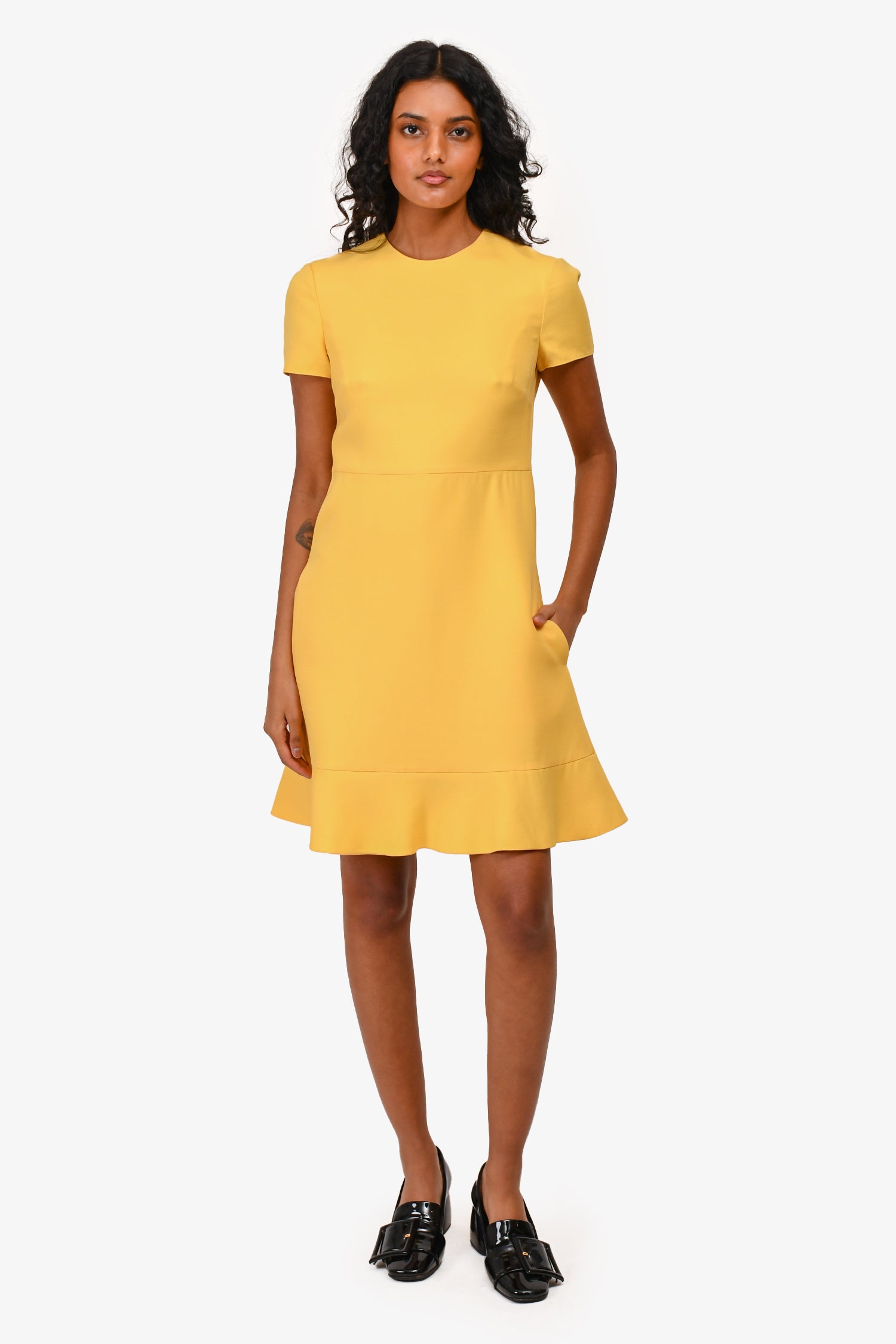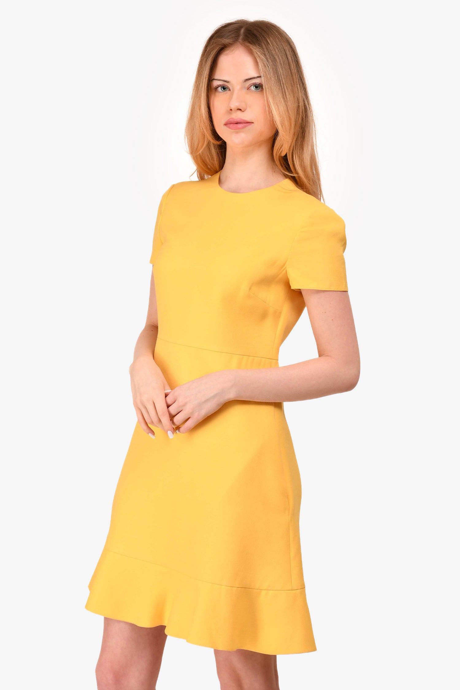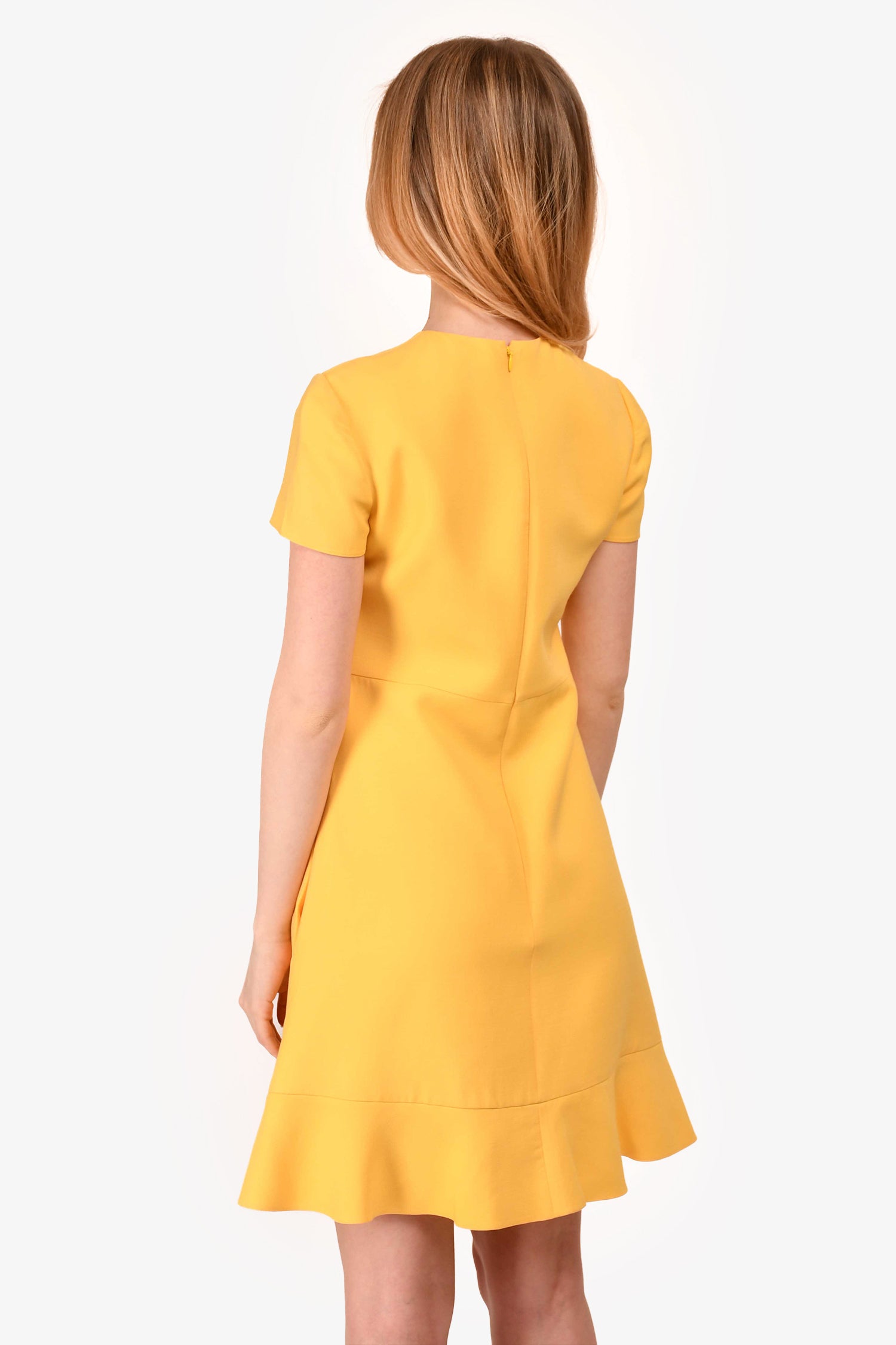 Refresh availabilityValentino Yellow Wool/Silk Mini Peplum Dress. Concealed back zipper. Tonal stitching.