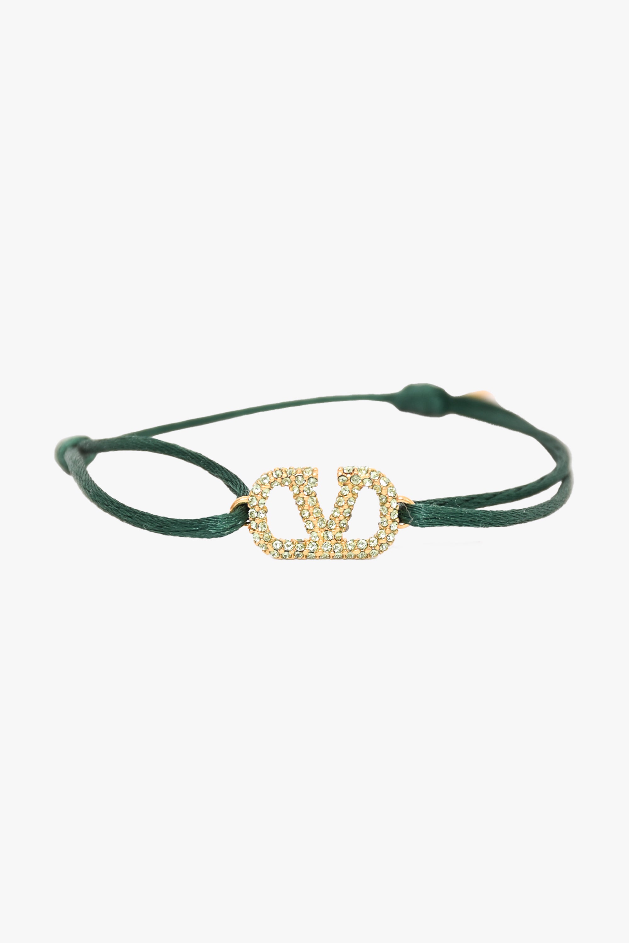 Refresh availabilityValentino Green Swarovski Fabric Bracelet. Gold-tone hardware. Adjustable string closure.