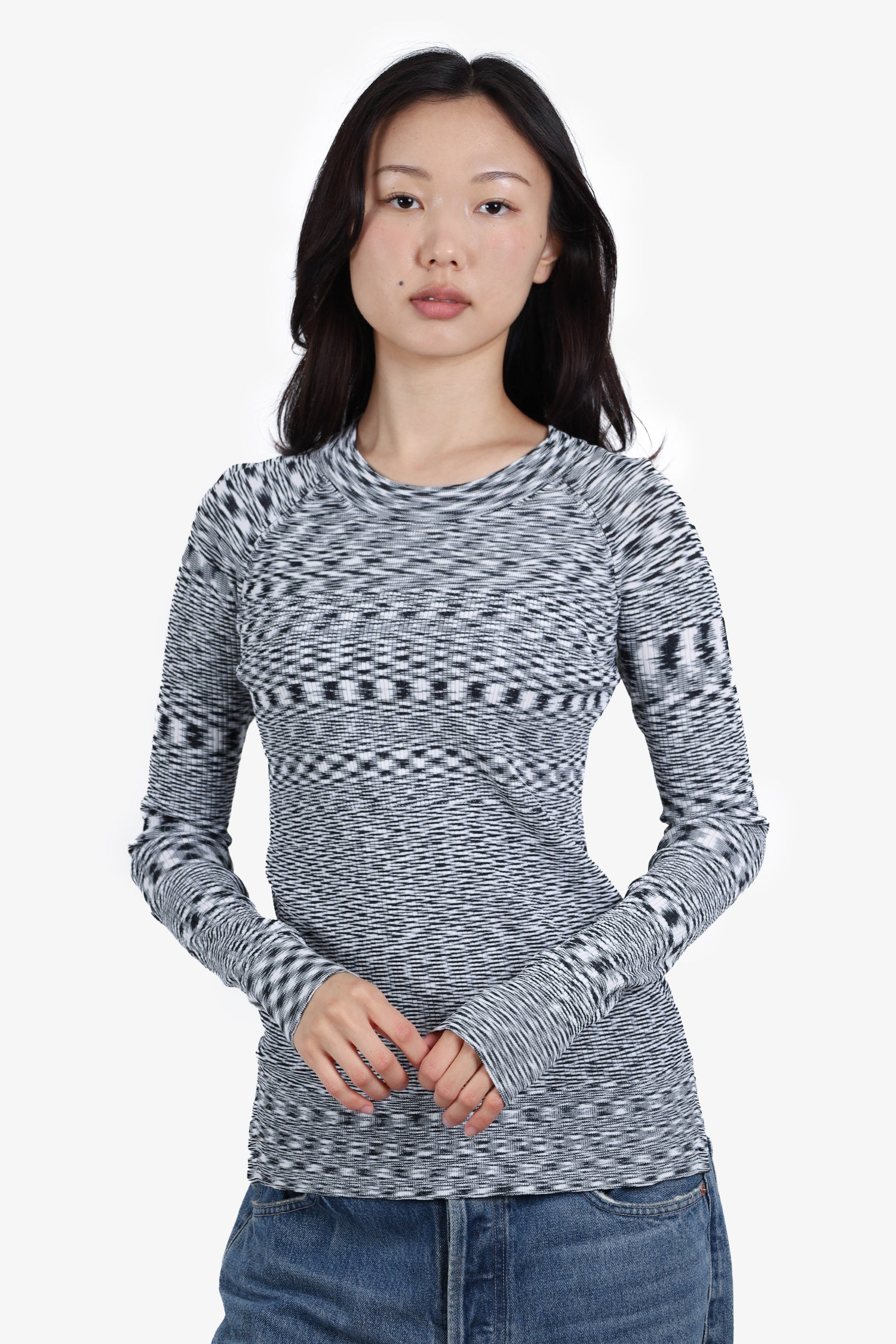 Refresh availabilityVeronica Beard Black/White Glitch Long-sleeve Top. Pull-on. Round neckline. Tonal stitching.