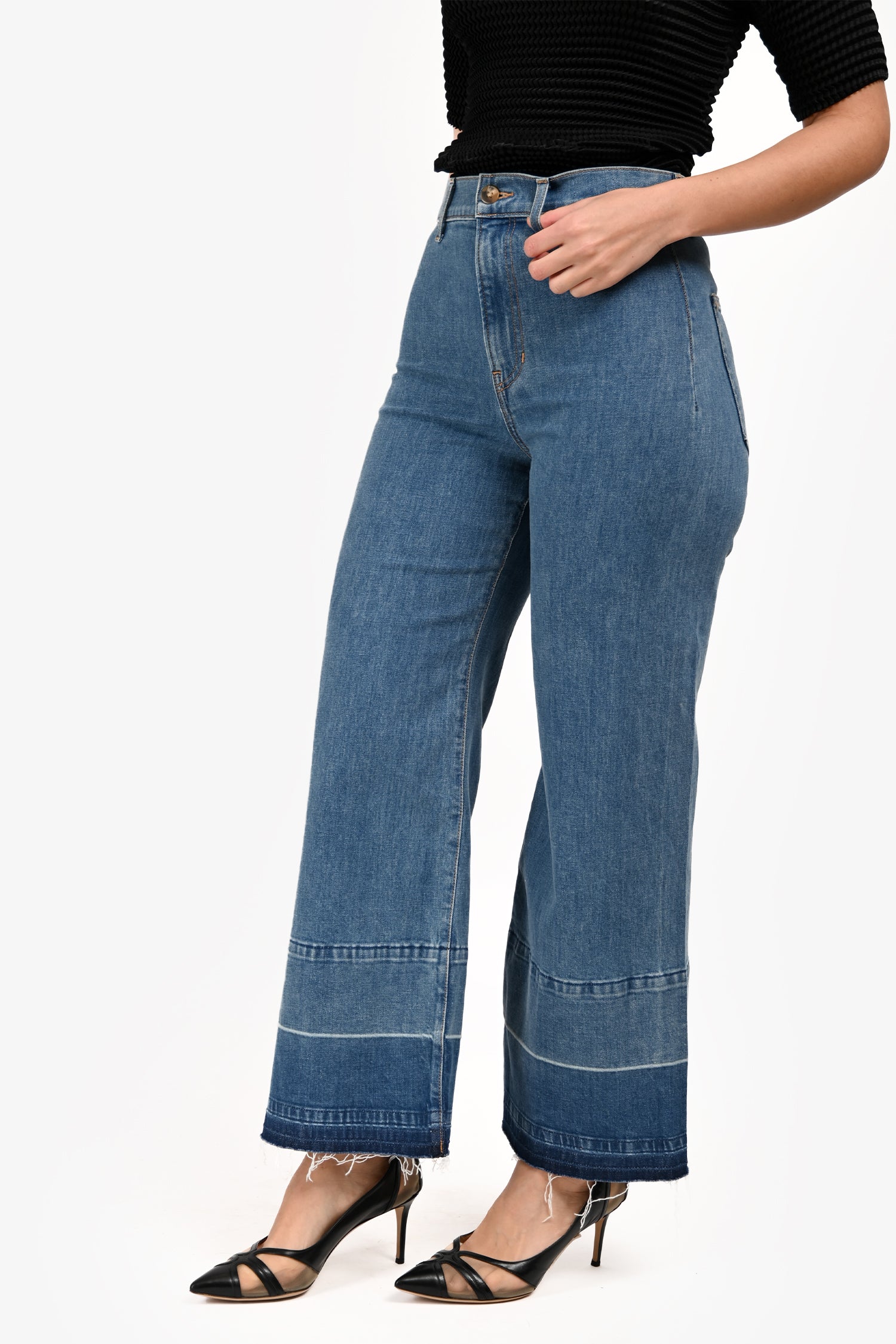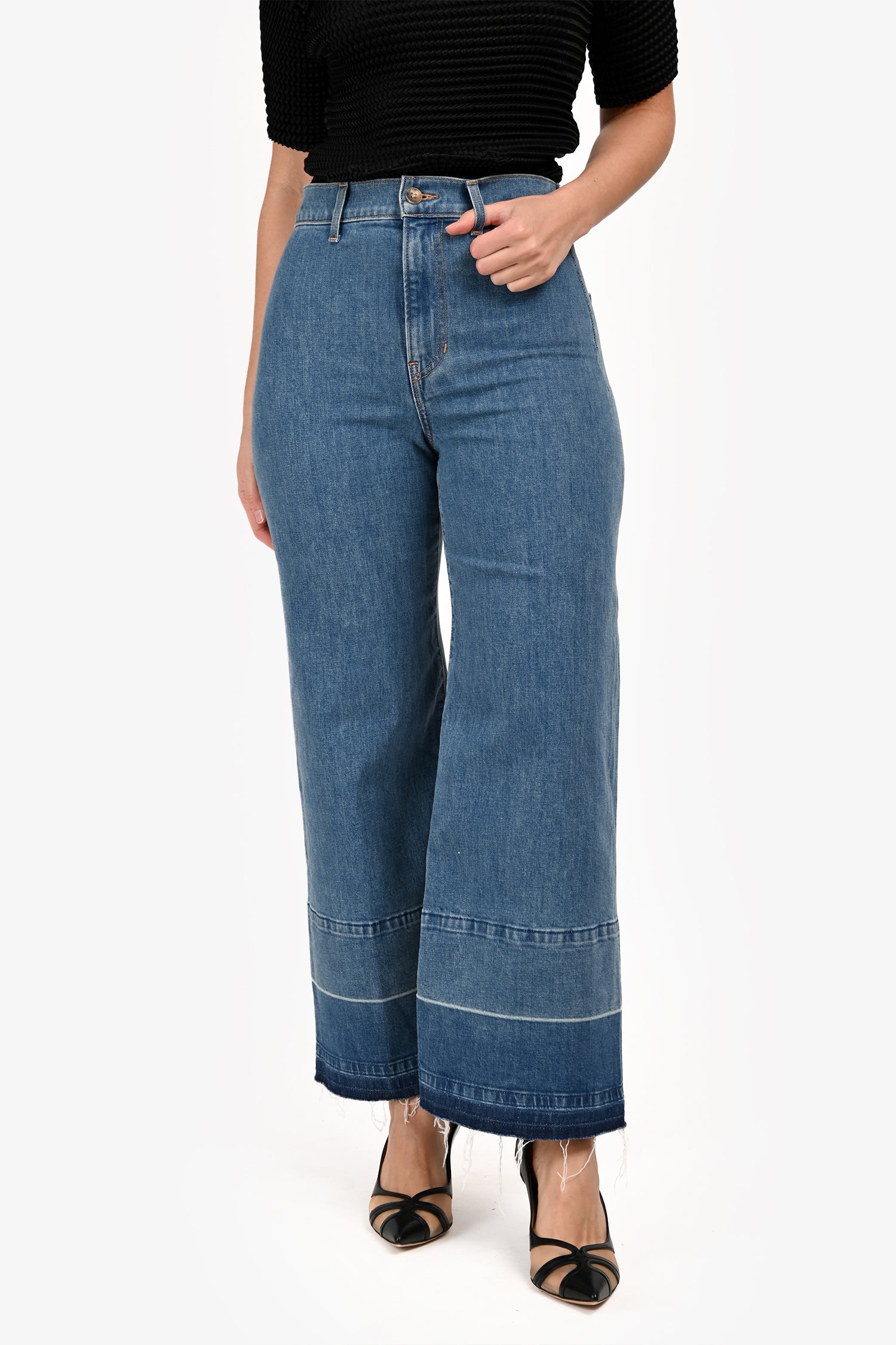 Veronica Beard Blue Denim Grant High Rise Wide Legged Cropped Jeans Size 26