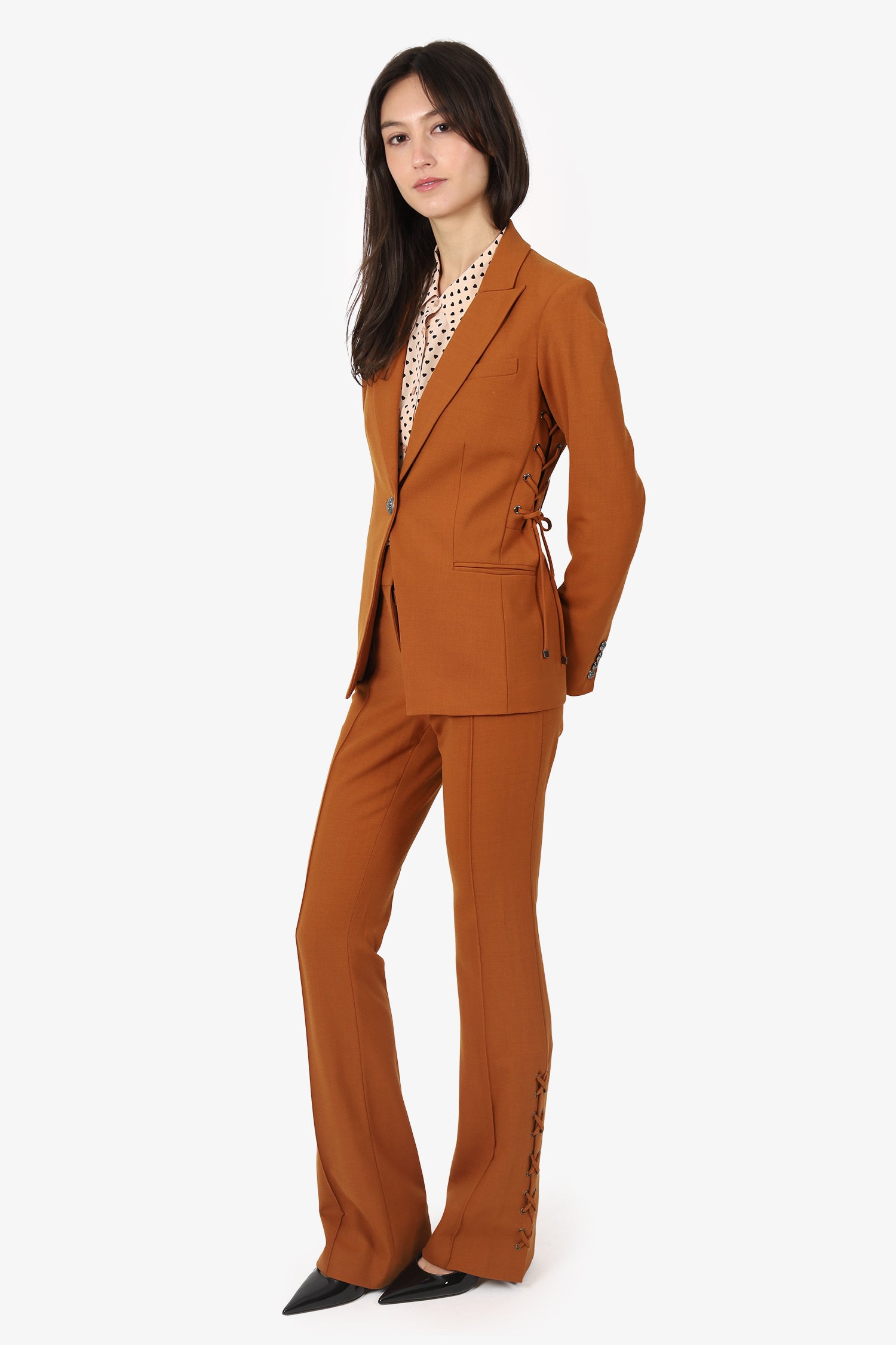 Veronica Beard Burnt Orange Wool Lace Up Detail Blazer + Pants Size 0