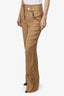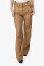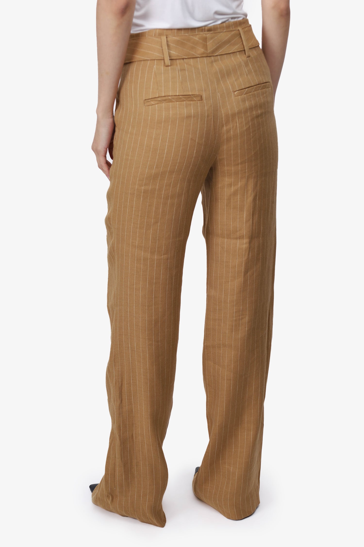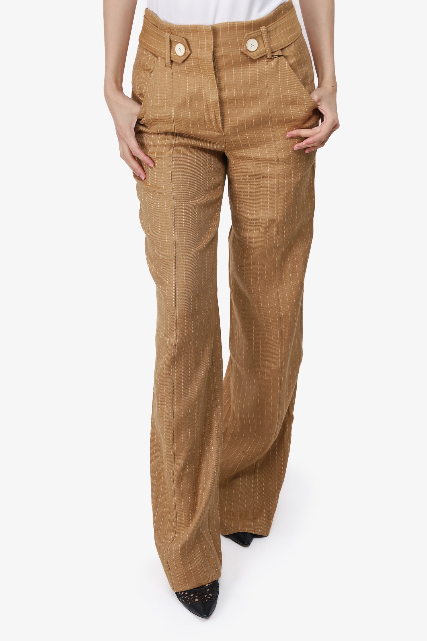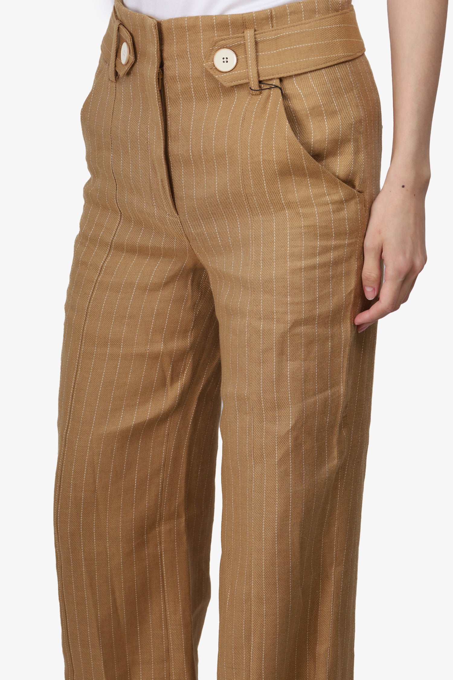 Refresh availabilityVeronica Beard Khaki Striped Wide Leg Trousers. Front hook and zip closure. Front and rear slip pockets. Built in waist belt detail. Contrast stitching.