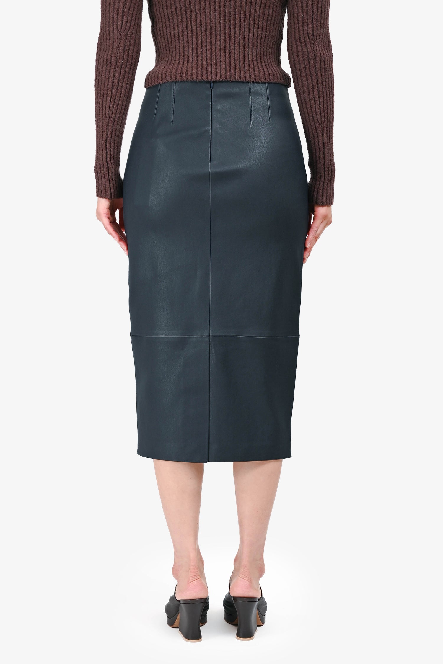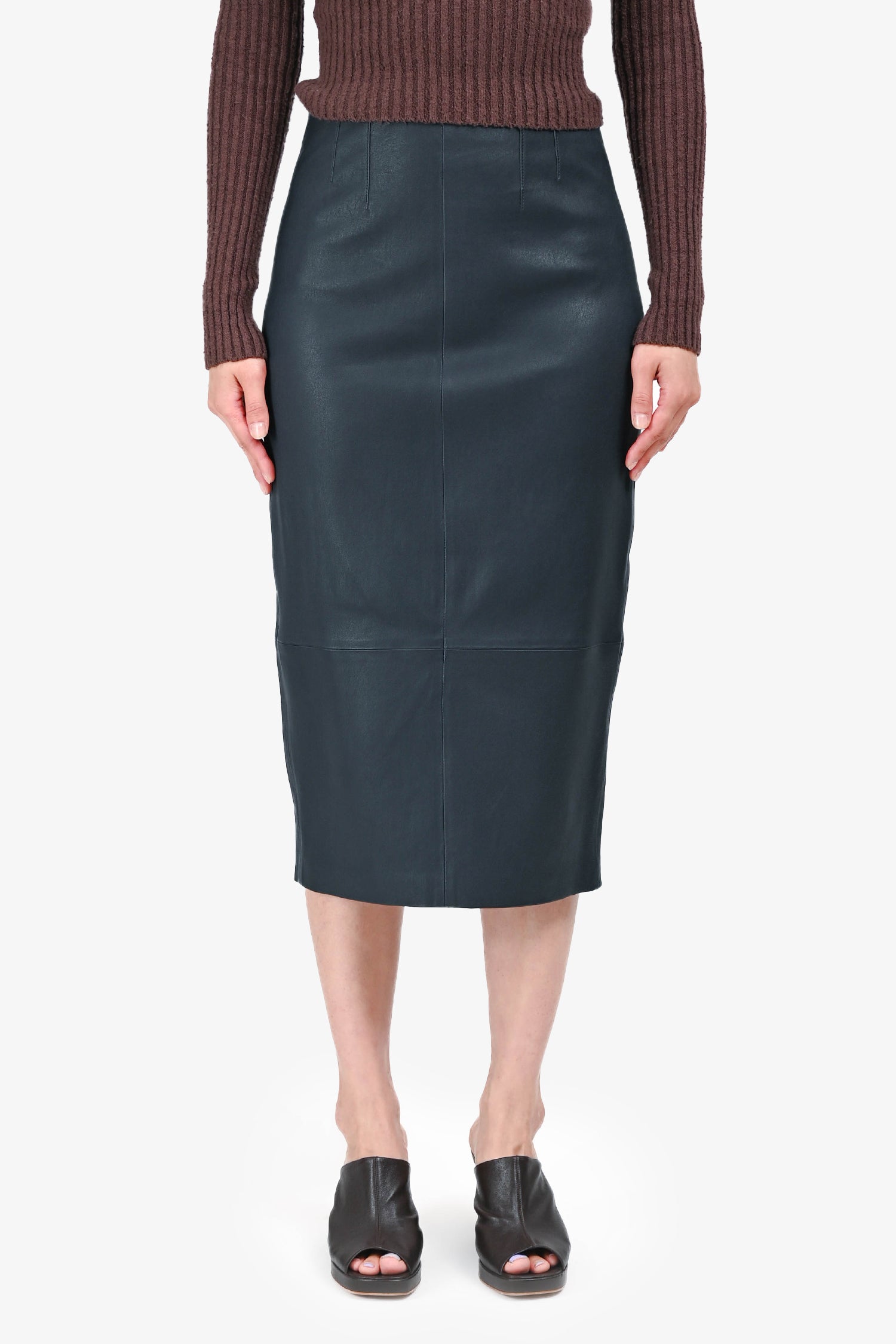 Refresh availabilityVeronica Beard Navy Leather Pencil Skirt. Rear zip and hook closure. Unlined.