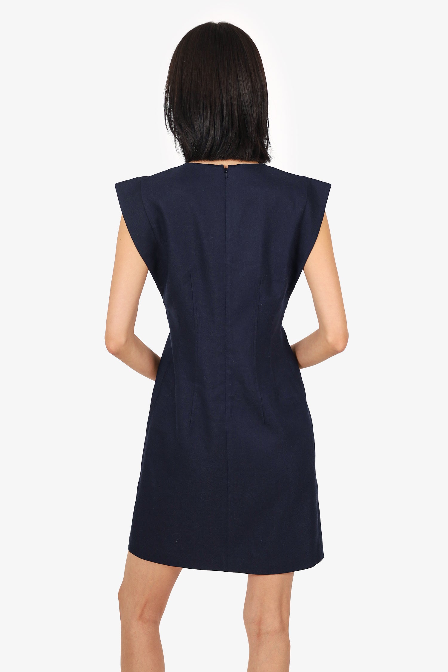 Refresh availabilityVeronica Beard Navy Sleeveless Mini Dress. Slip-on. Round-neckline. Rear zip with hook closure. Tonal stitching.