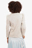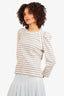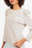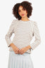 Veronica Beard White Delano Stripe Puff Shoulder Rib Top Size L