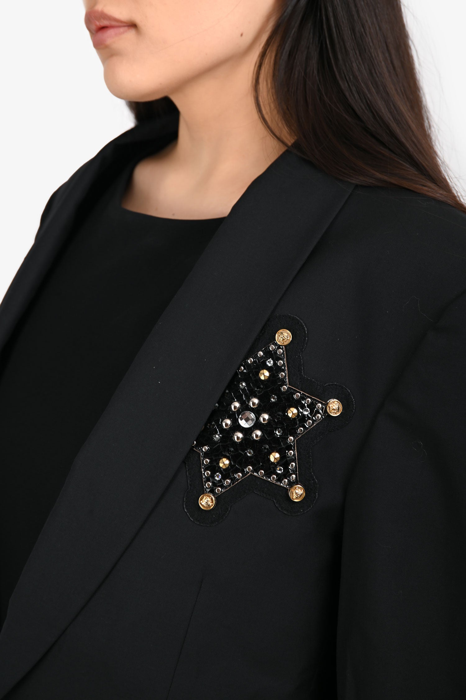 Versace Black Cowboy Star Embellished Single Breasted Blazer Size 48