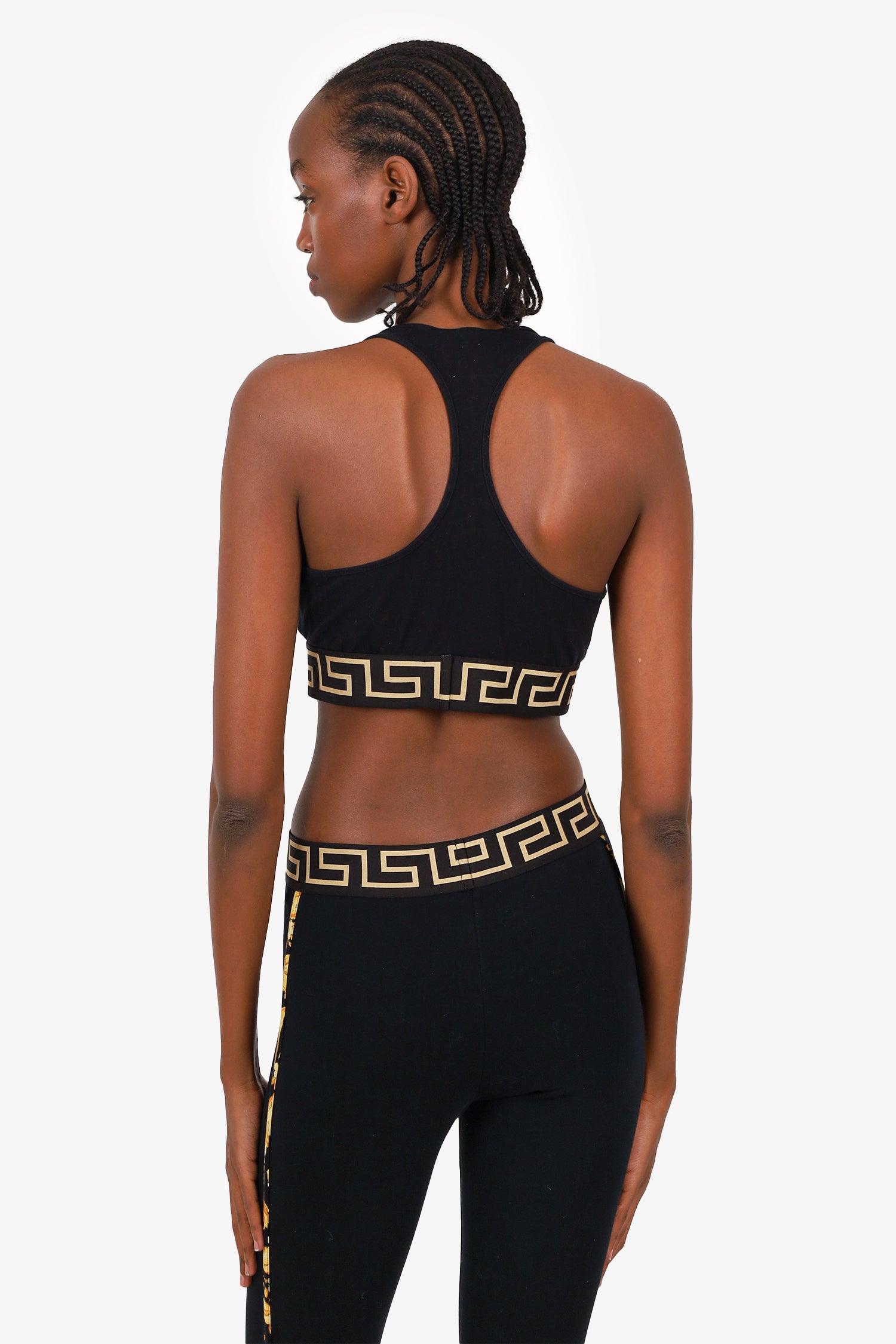 Refresh availabilityVersace Black/Gold Medusa Bralette. Pull-on. Round neckline. Elasticated band. Racerback. Tonal stitching.