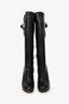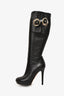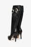 Versace Black Leather Floral Charm Embellished Knee High Boots Size 35.5