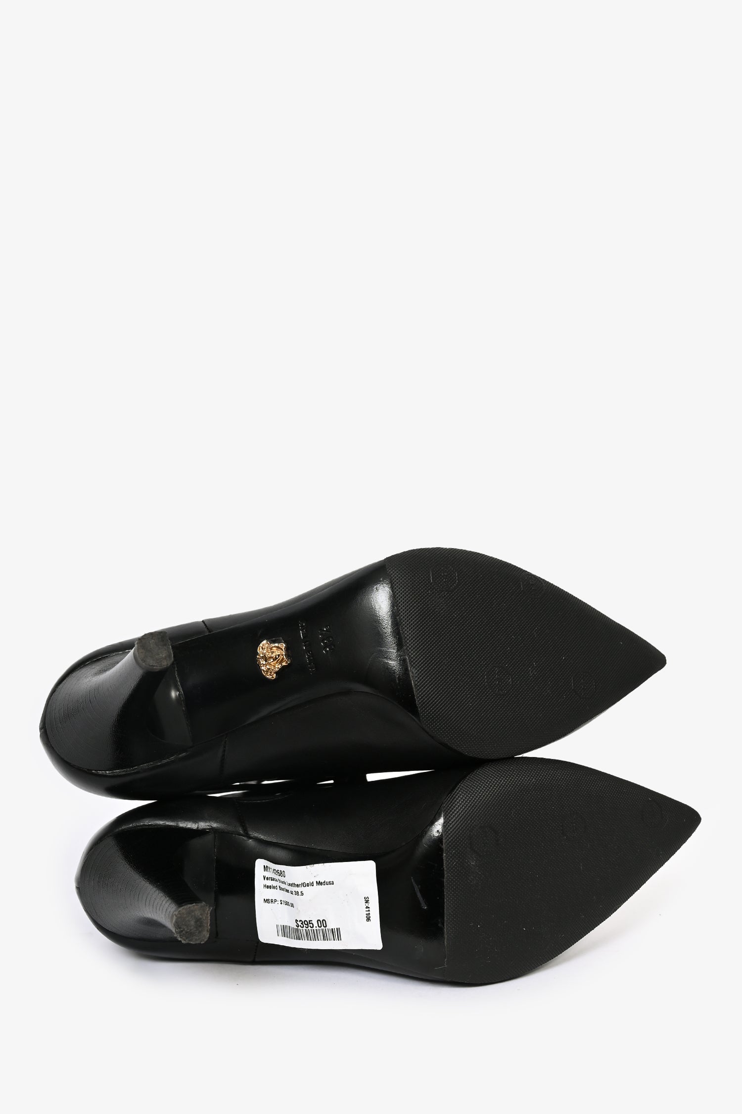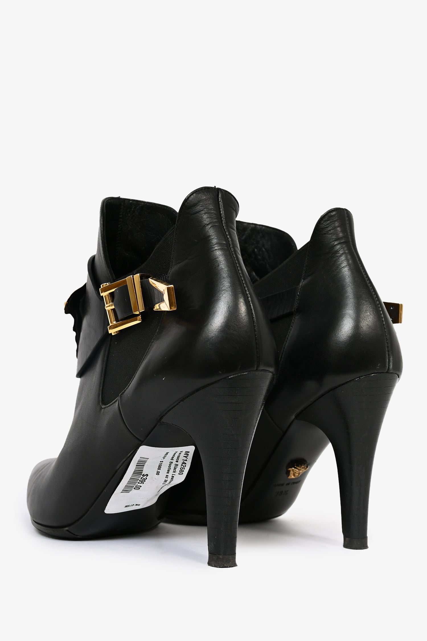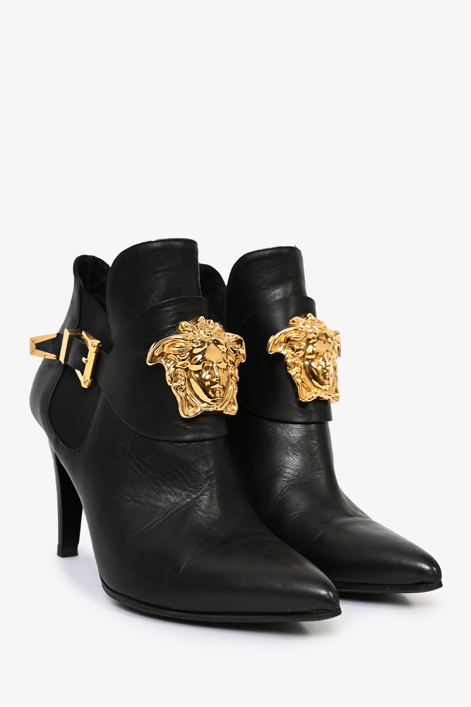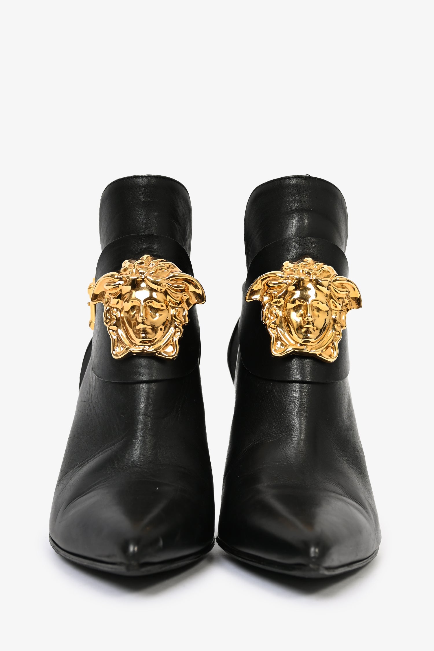 Versace Black Leather/Gold Medusa Heeled Booties Size 38.5