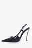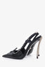 Versace Black Leather Pointed Lace Slingback Heels Size 35.5