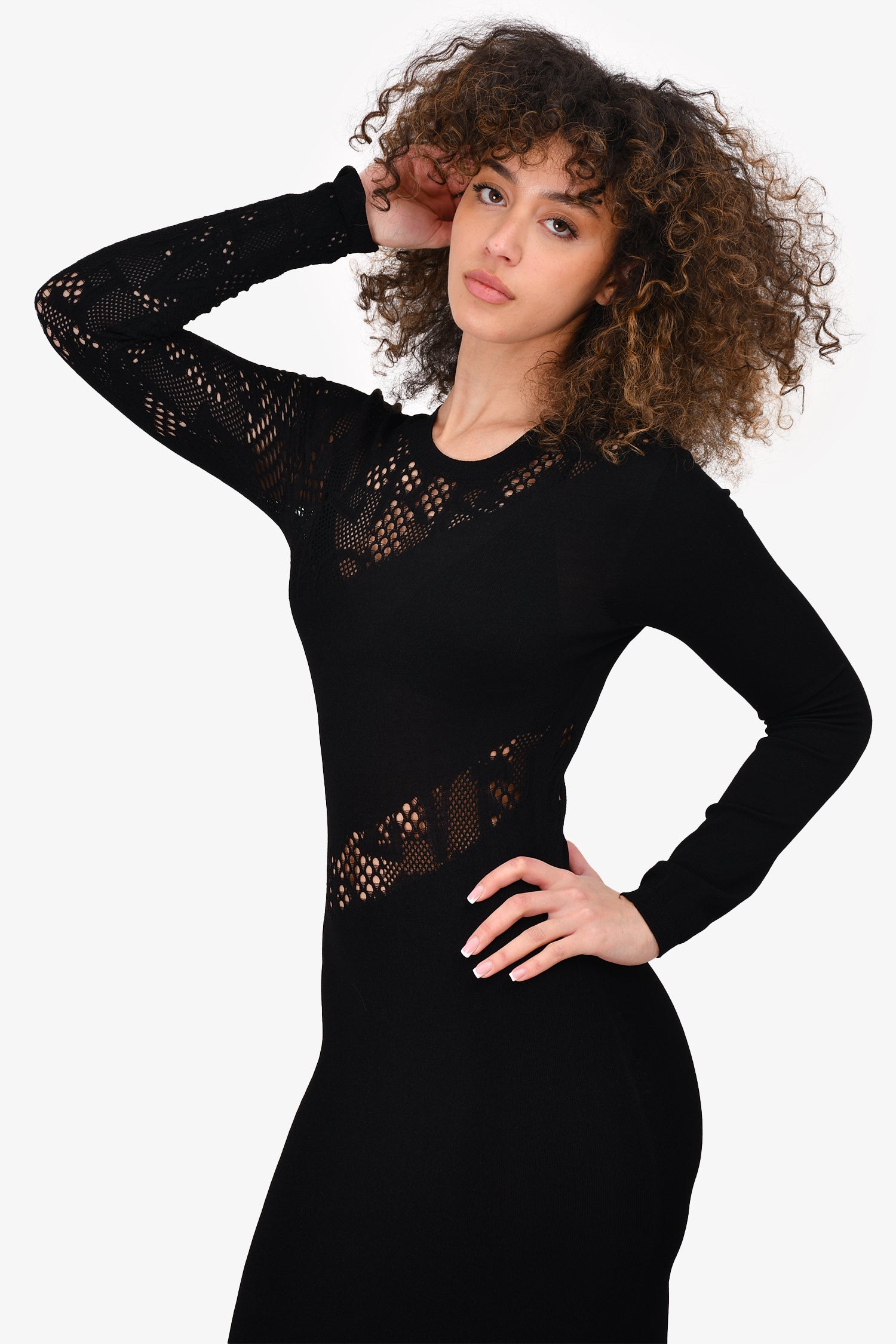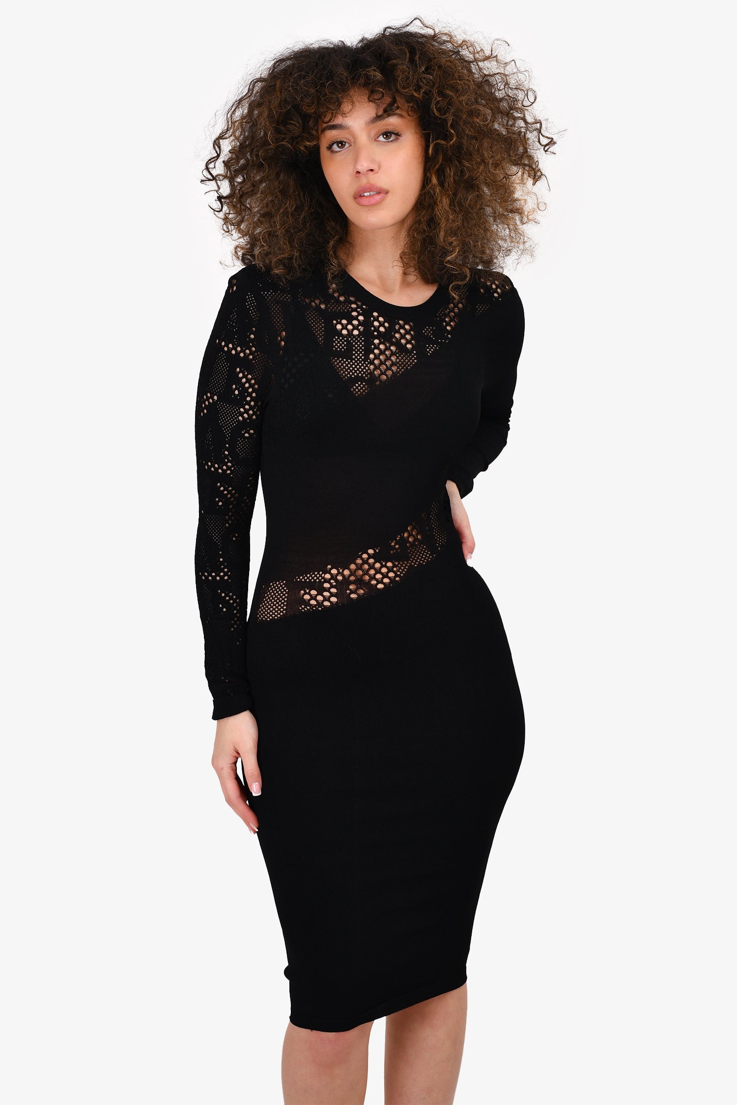 Refresh availabilityVersace Black Logo Detailed Bodycon Midi Dress. Round neck. Pull-on. Ribbed neck, cuffs and hem.
