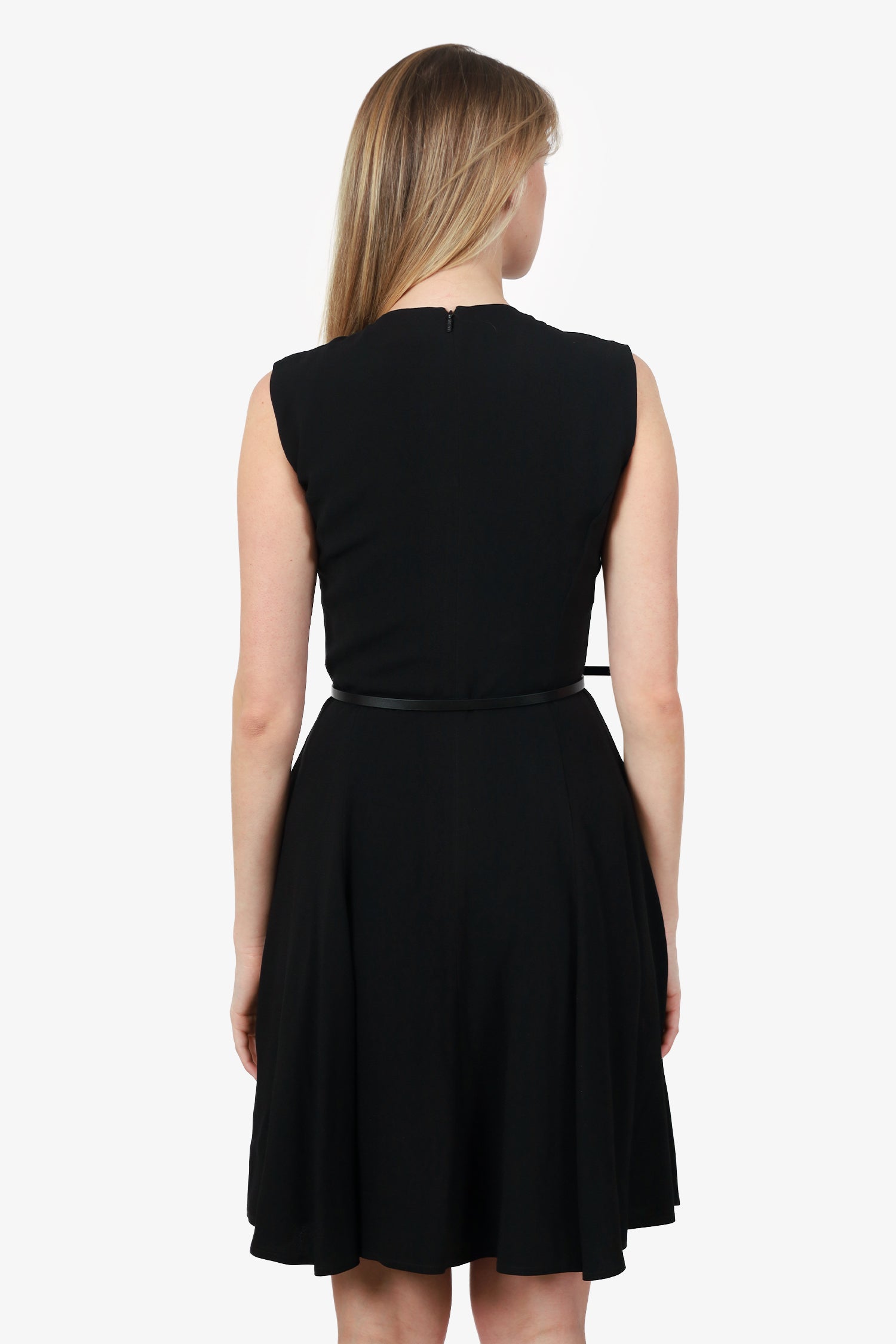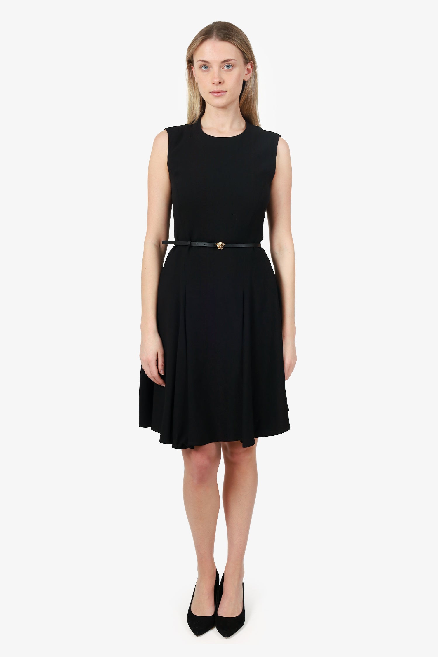 Refresh availabilityVersace Black Mini Dress With Belt. Round neckline. Rear zip with hook-up closure. Removable belt with adjustable pull-through buckle closure. Lined interior. Gold-tone hardware. Tonal stitching.