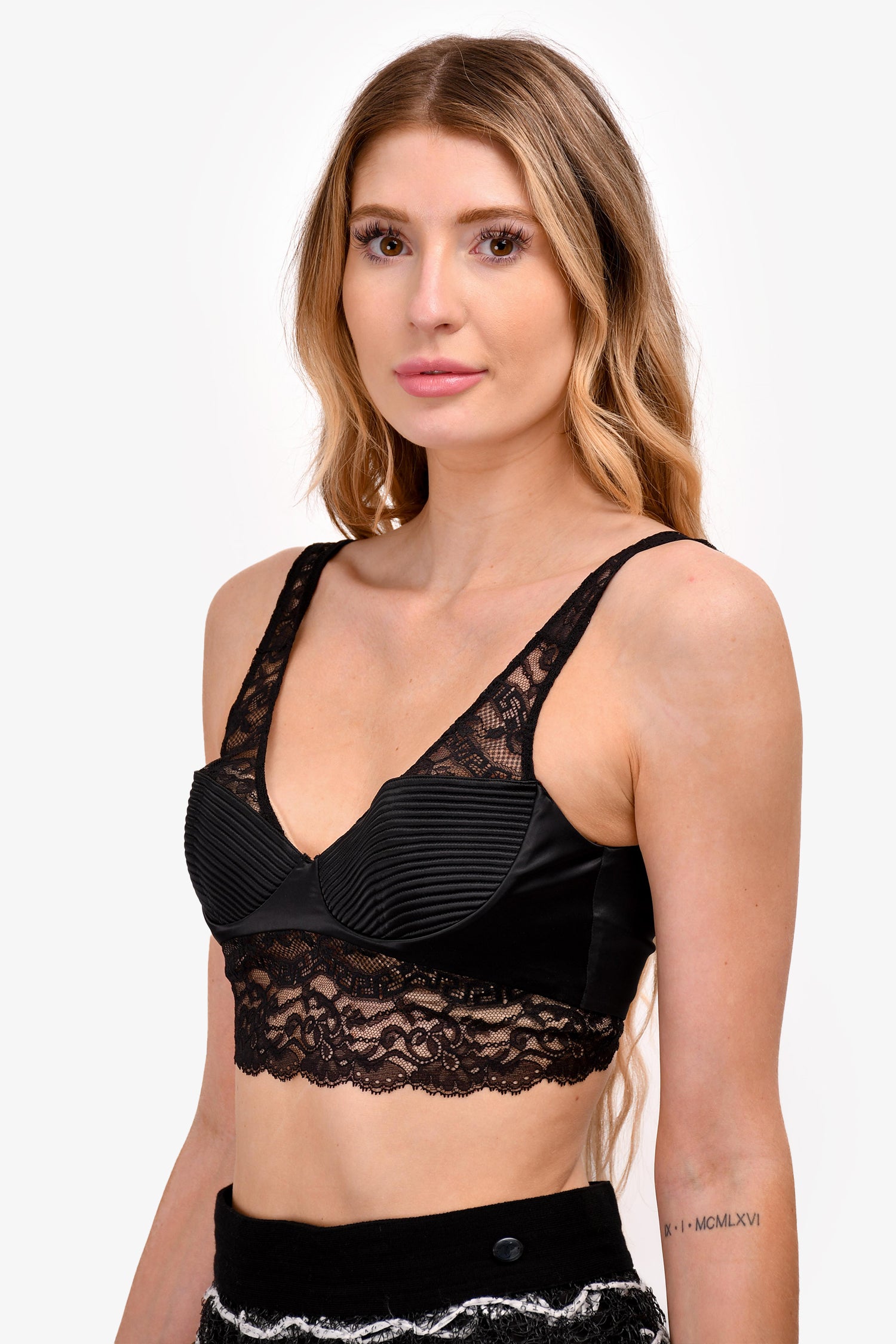 Versace Black Satin Greca-Detail Lace Trim Bra Top Size 3B